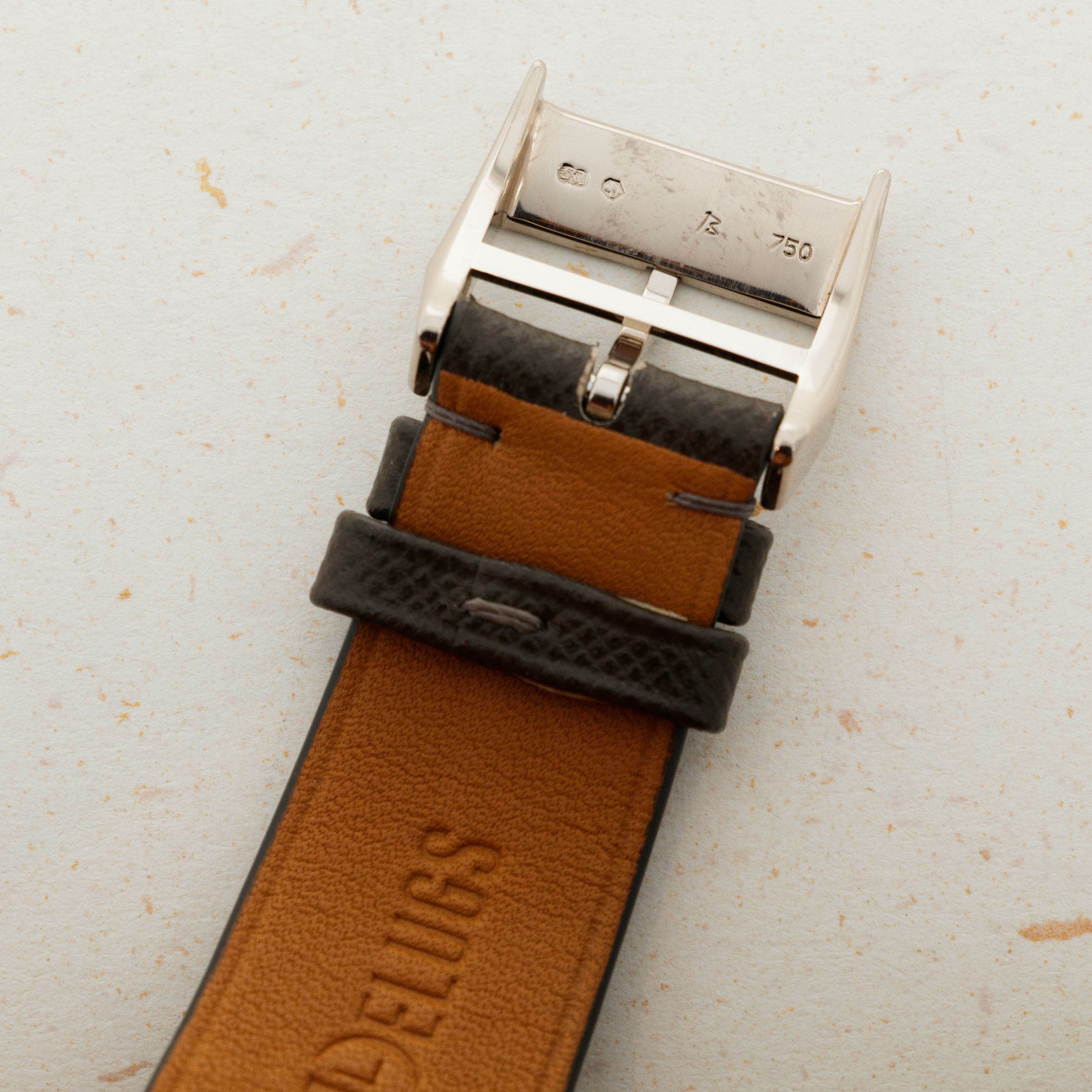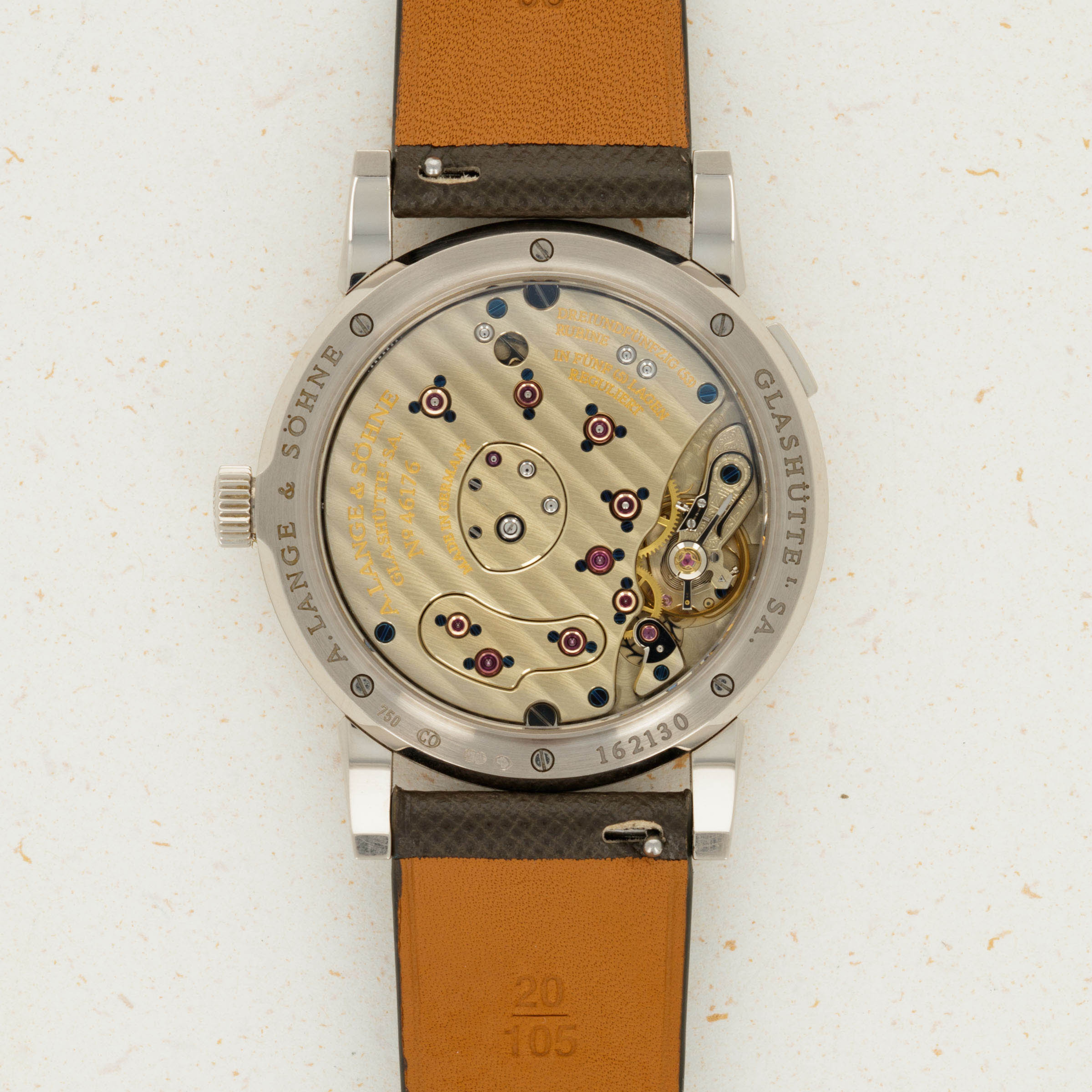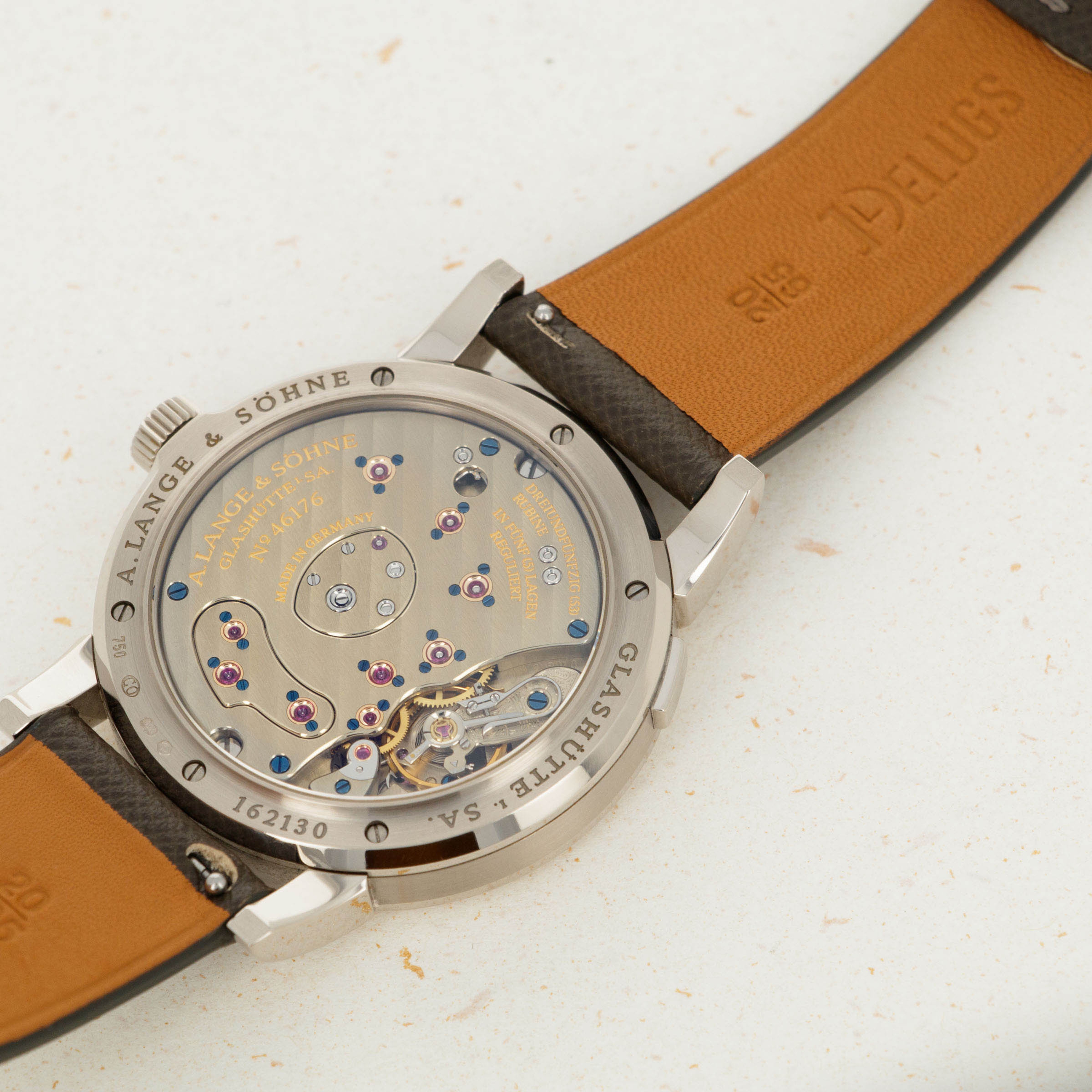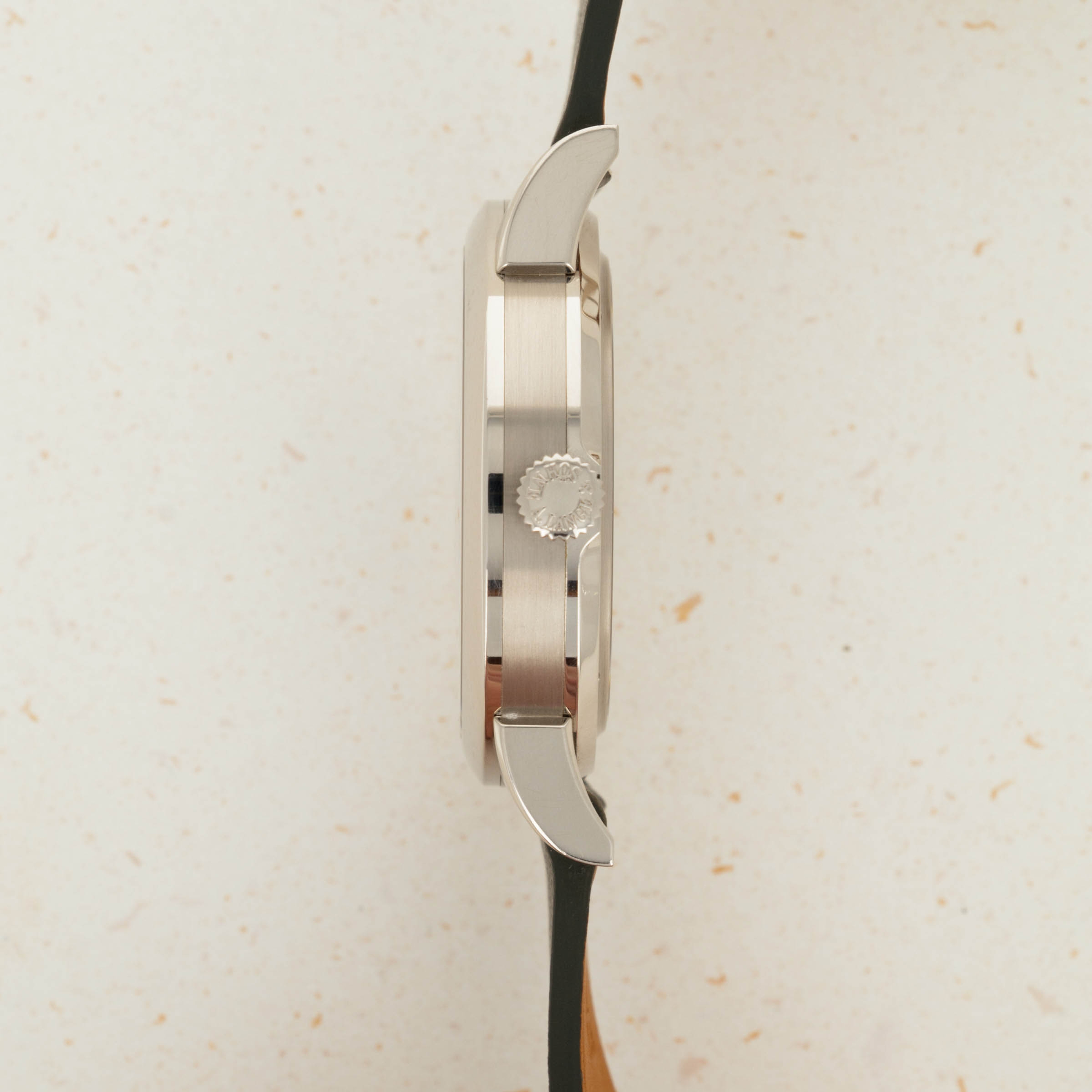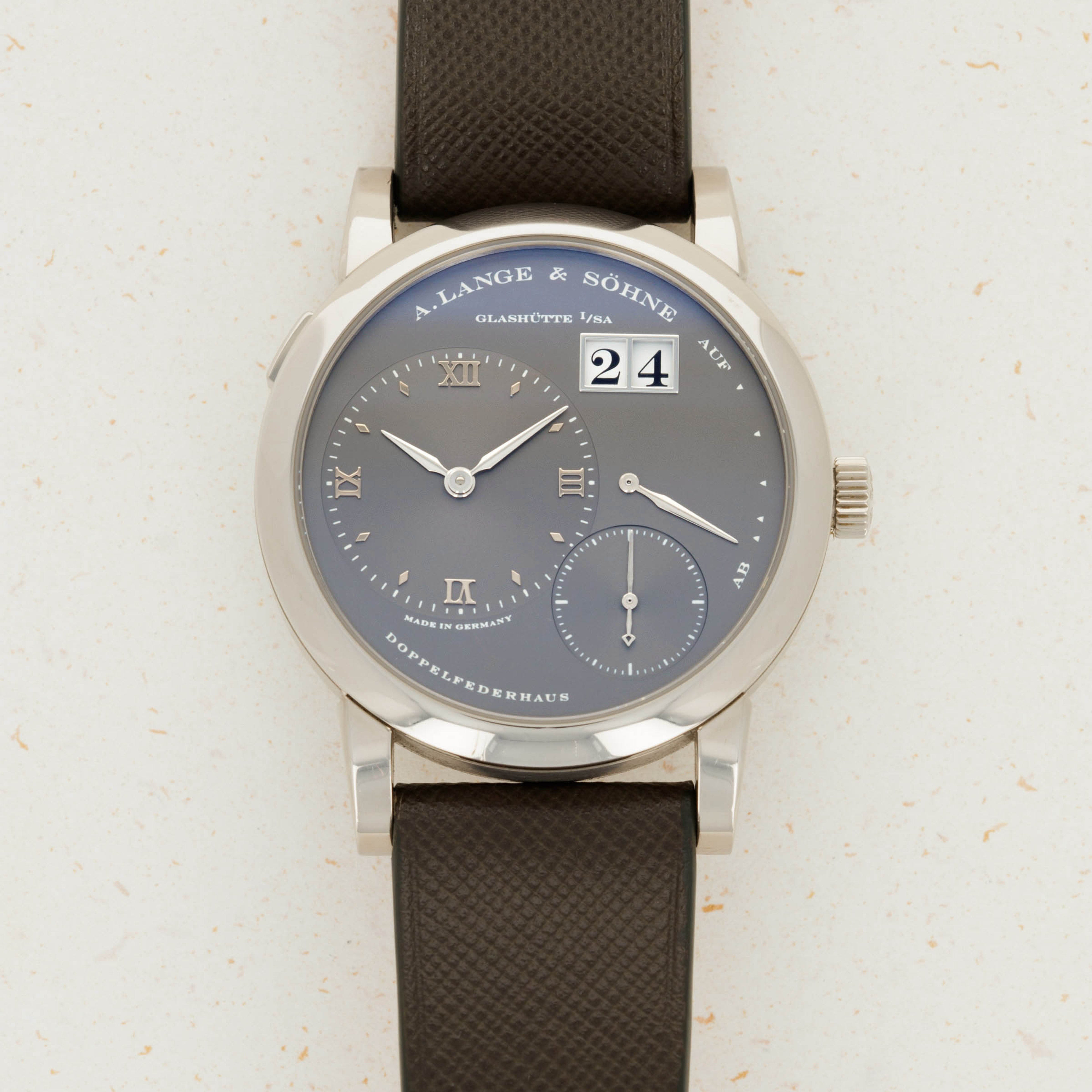 Released in 1994 as one of A. Lange & Söhne’s original watches after their relaunch, the Lange 1 is widely considered one of the most recognizable watches Lange has ever created. With its off-center outsize date indication - inspired by the Five-Minute Clock in the Semper Opera House, asymmetrically positioned hour and minute sub-dial, seconds sub-dial at 5 o’clock, and a power-reserve indicator at 3 o’clock, the Lange 1 has become a staple within the brand’s portfolio of iconic timepieces. Combining its heritage-inspired design, the Lange 1 ref. 101.030 retains the Lange 1’s classic aesthetic through the use of a monochromatic color scheme, achieved by its use of a stunning grey dial. Presented in a perfectly wearable 38.5mm white gold case, the ref. 101.030 remains refined and balanced nicely on the wrist – a nice change of pace from its larger sibling variants, and the generally larger watches that have flooded the market in recent years. Combining this wearability with its understated design, the ref. 101.030 is unreservedly ‘Lange’ in its execution. With its immaculately finished manual-wind cal. L901 on display behind its exhibition caseback, it carries its impeccable craftsmanship through its entire construction right through to its movement, a testament to Lange’s dedication to their timepieces.