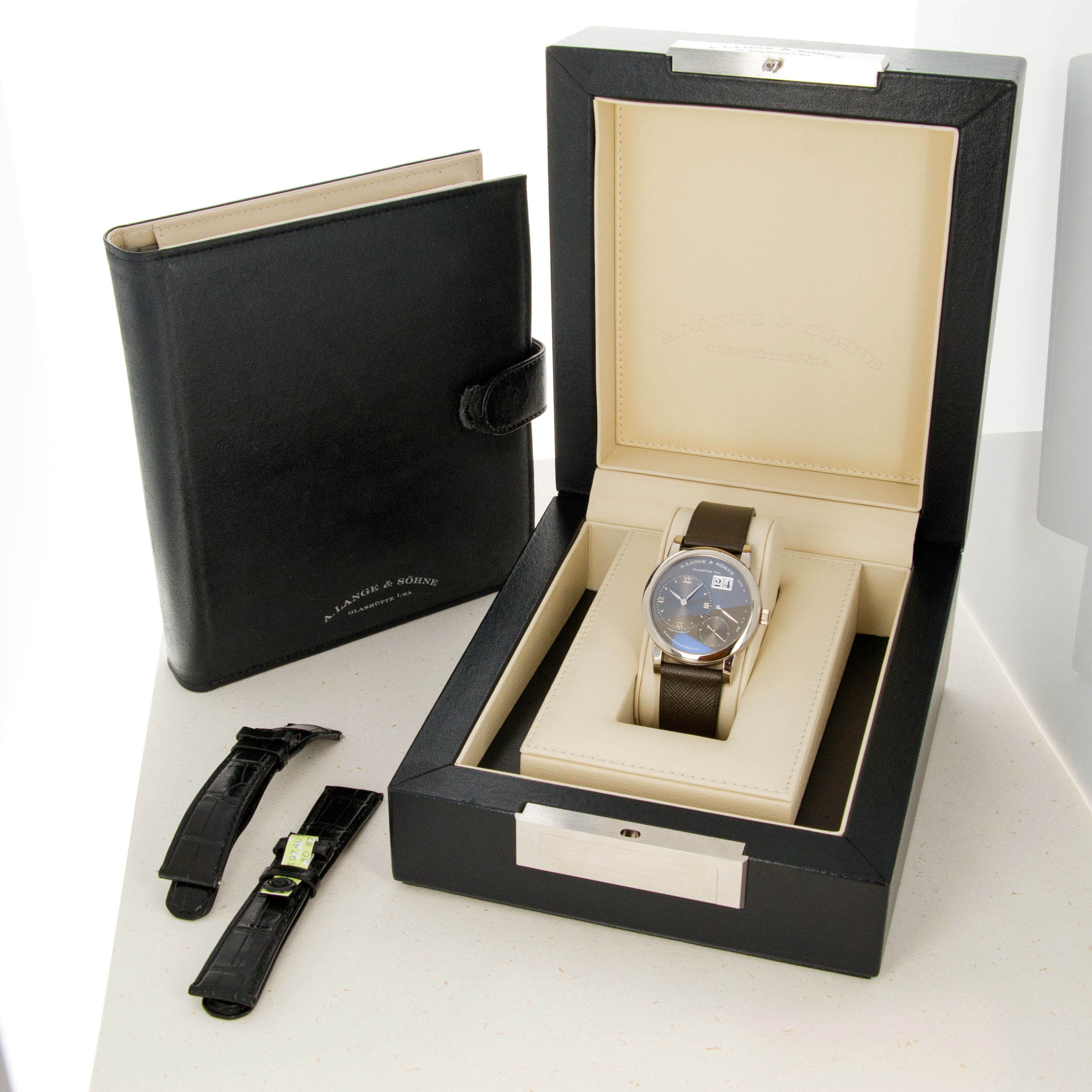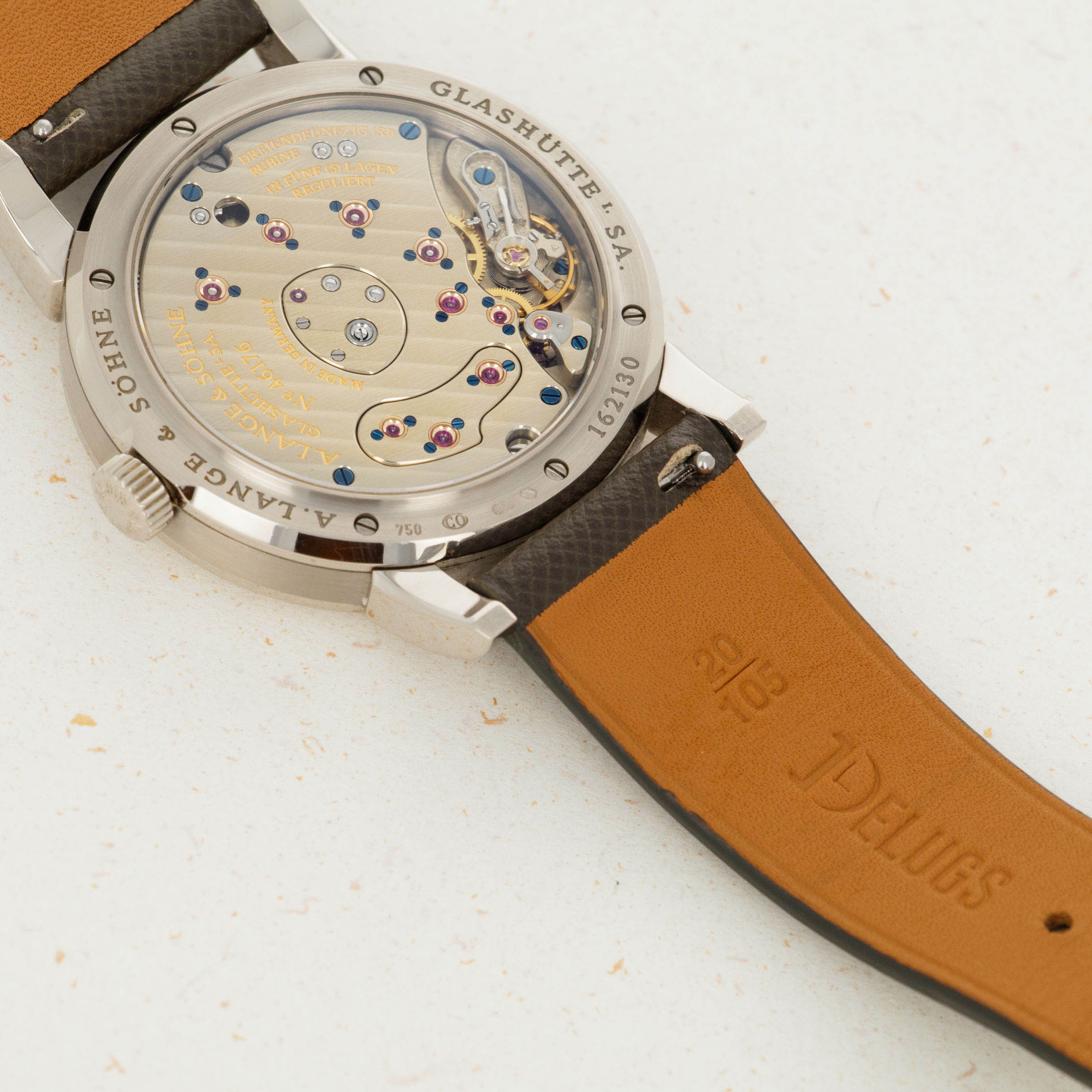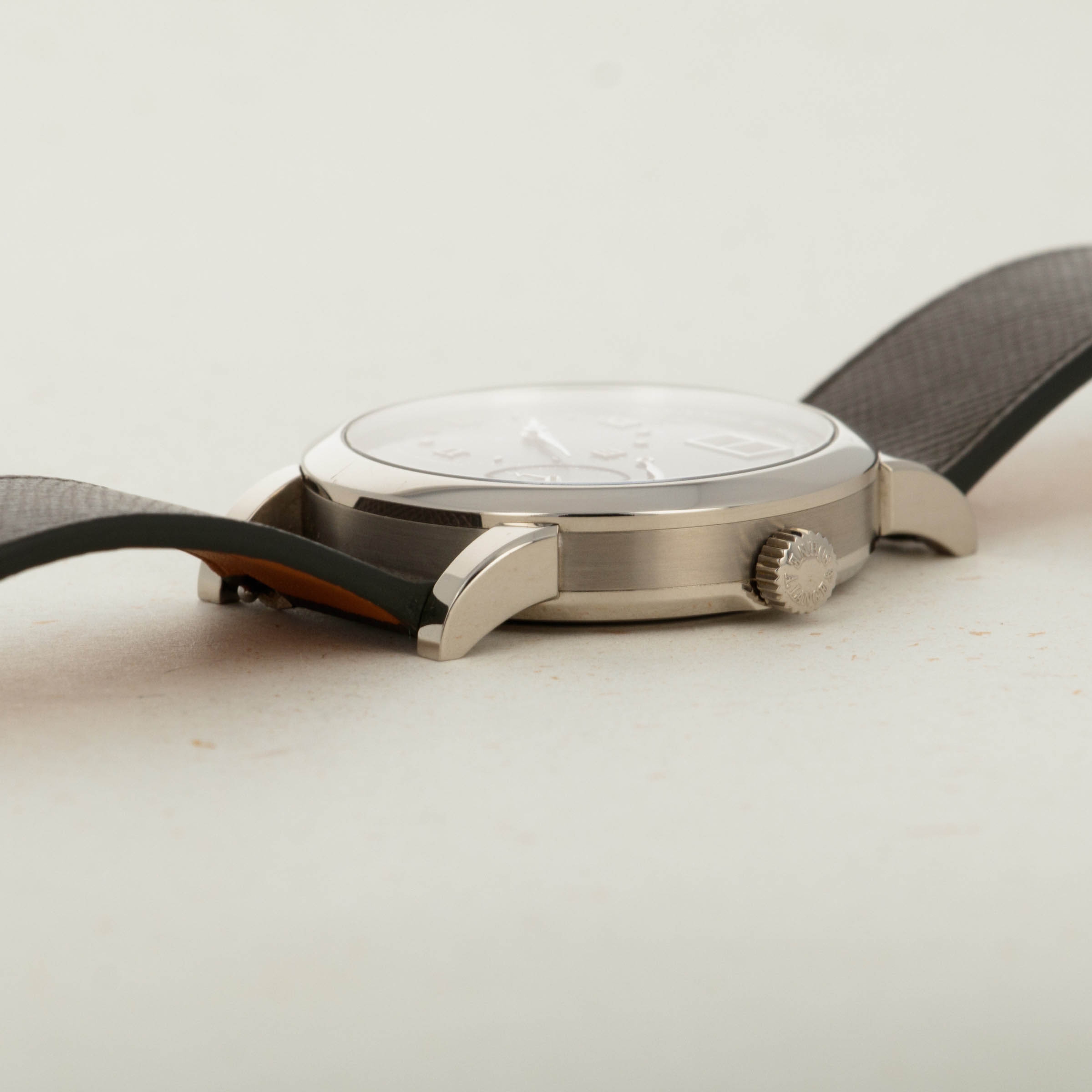 Watch is in excellent condition. Watch shows light signs of careful use, no major dings or scratches. Minor surface wear evident. The watch comes with a new unworn Lange Strap as well as the original worn one and a calfskin strap currently fitted.