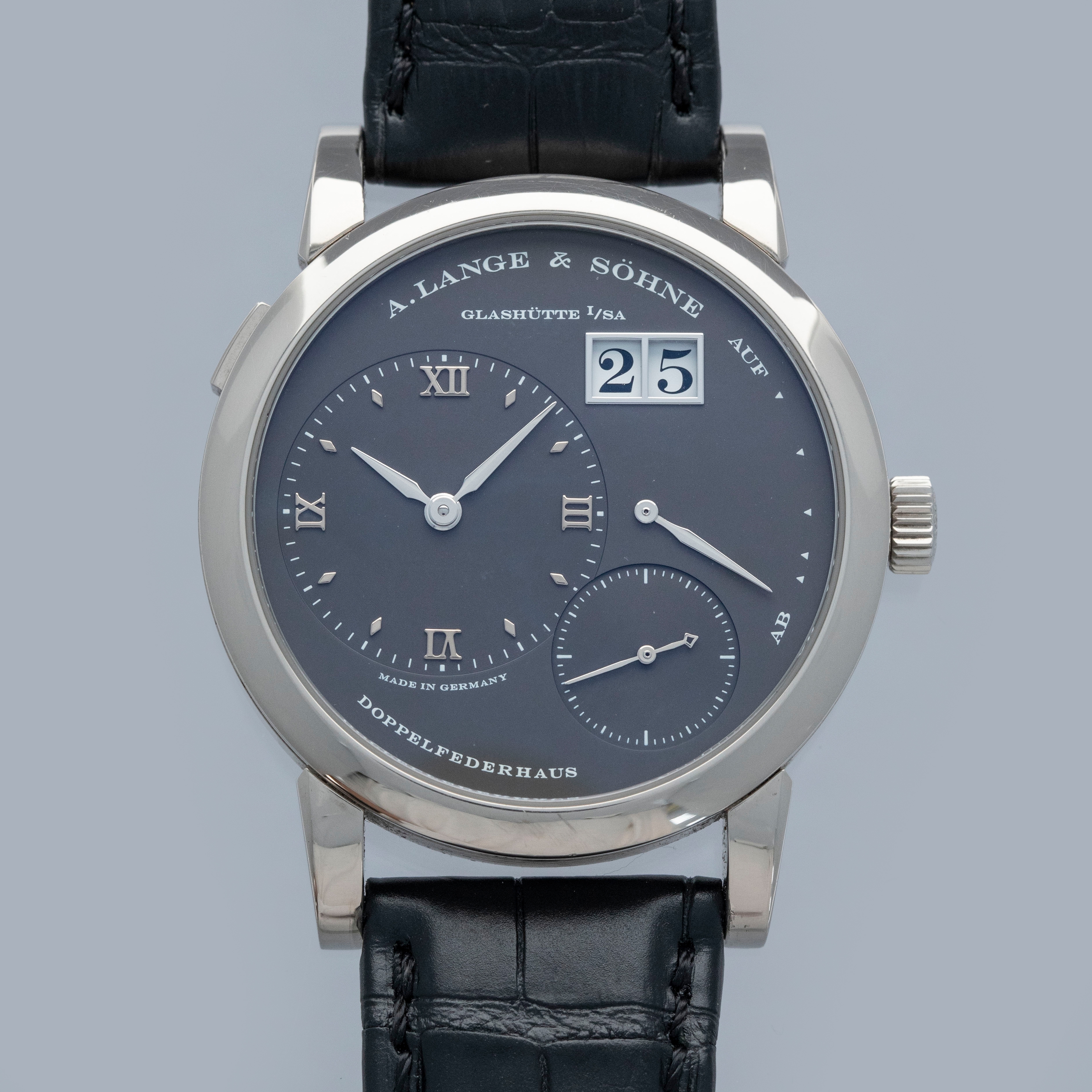 Released in 1994 as one of A. Lange & Söhne’s original watches after their relaunch, the Lange 1 is widely considered one of the most recognizable watches Lange has ever created. With its off-center outsize date indication - inspired by the Five-Minute Clock in the Semper Opera House, asymmetrically positioned hour and minute sub-dial, seconds sub-dial at 5 o’clock, and a power-reserve indicator at 3 o’clock, the Lange 1 has become a staple within the brand’s portfolio of iconic timepieces. Combining its heritage-inspired design, the Lange 1 ref. 101.030 retains the Lange 1’s classic aesthetic through the use of a monochromatic color scheme, achieved by its use of a stunning grey dial. Presented in a perfectly wearable 38.5mm white gold case, the ref. 101.030 remains refined and balanced nicely on the wrist – a nice change of pace from its larger sibling variants, and the generally larger watches that have flooded the market in recent years. Combining this wearability with its understated design, the ref. 101.030 is unreservedly ‘Lange’ in its execution. With its immaculately finished manual-wind cal. L901 on display behind its exhibition caseback, it carries its impeccable craftsmanship through its entire construction right through to its movement, a testament to Lange’s dedication to their timepieces.