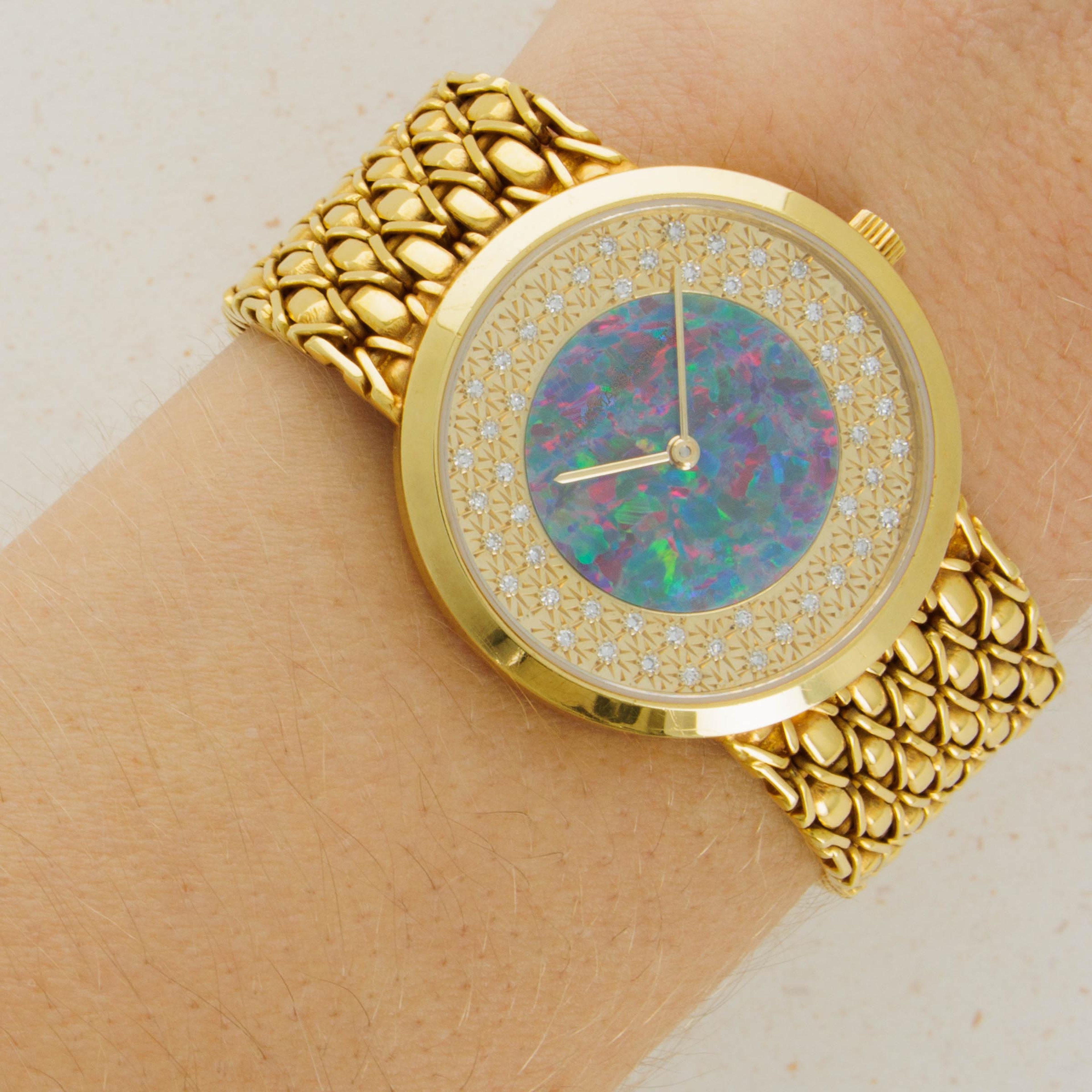 Contrasting its perfectly normal round case, this example's intricate bracelet and colorful diamond-set and opal dial combine to create a construction that is unlike anything else on the market.