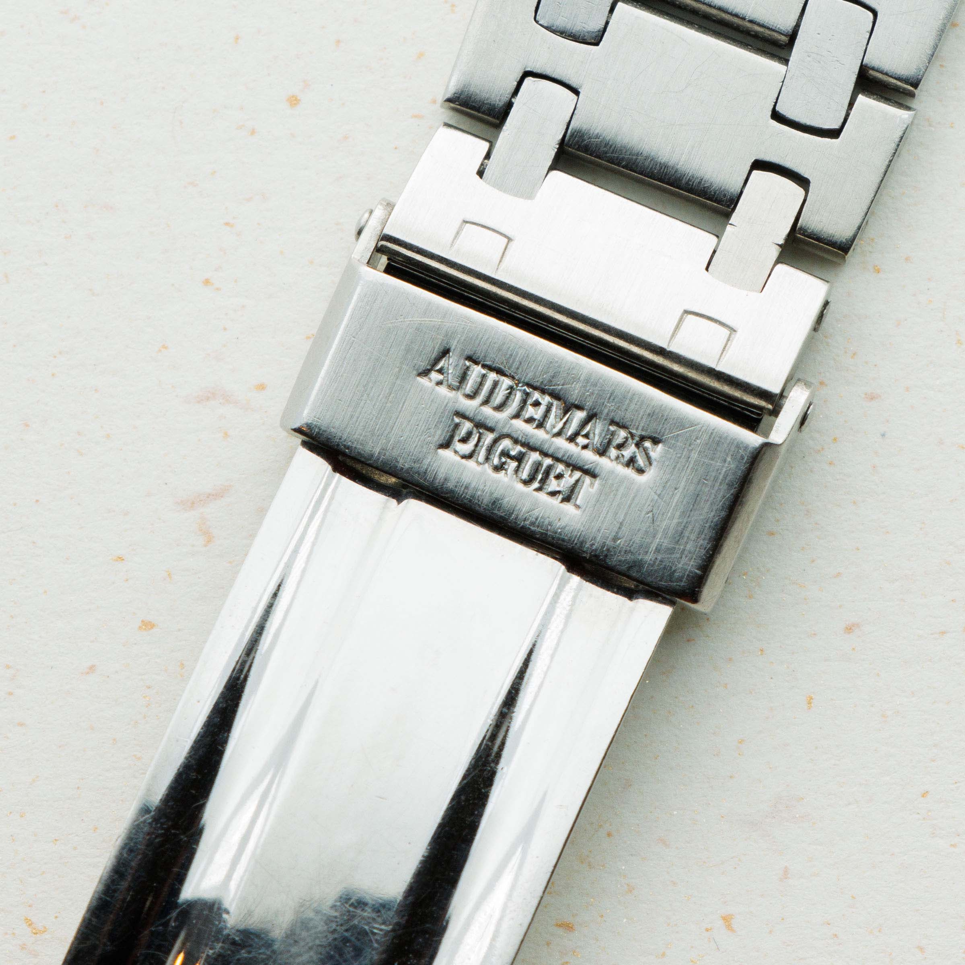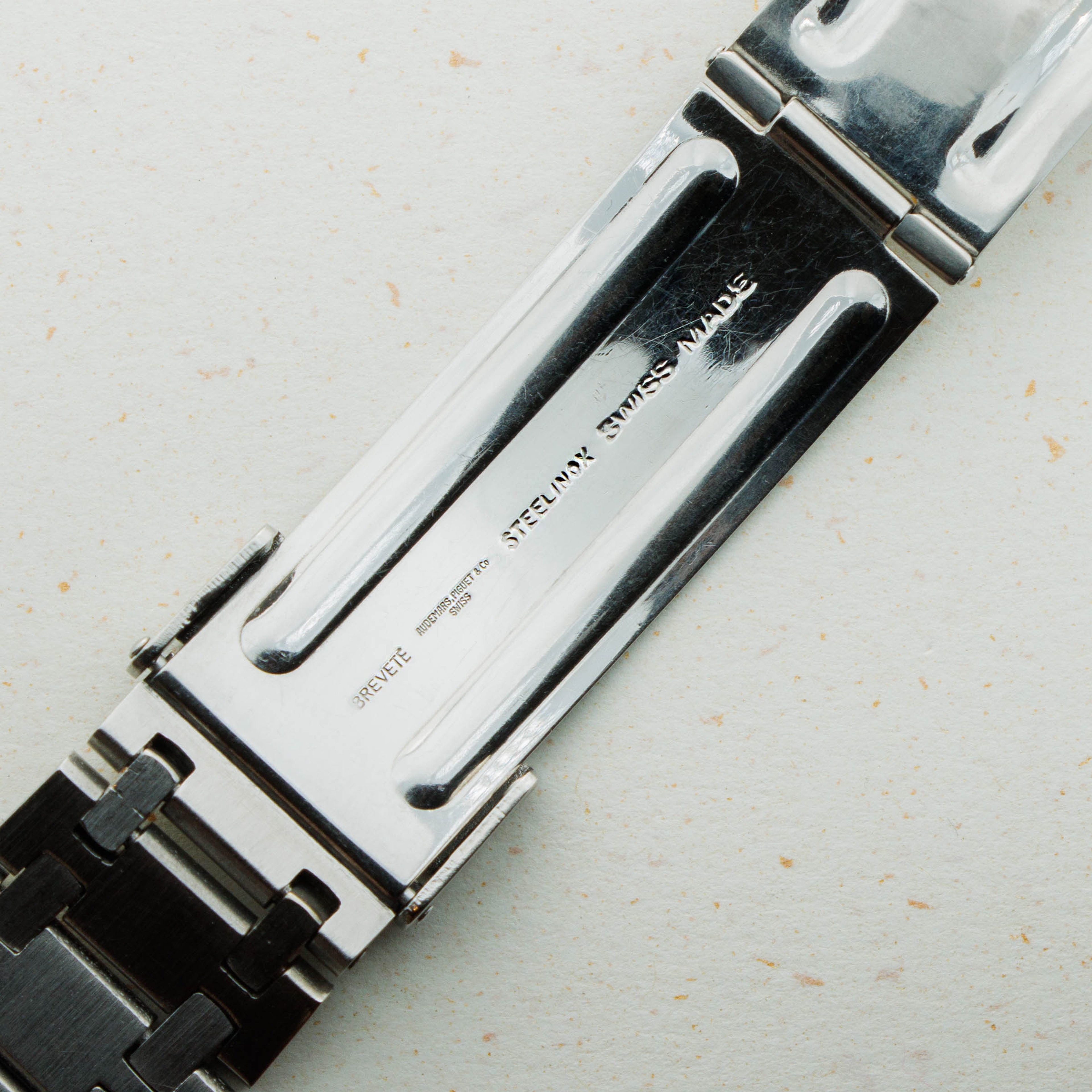 Watch is in overall very good condition. Case exhibits light to moderate wear, with surface scratches on many of the surfaces. Case number and engravings on back are clear and visible. Dial has oxidized to a tropical effect, and luminous on hands and dial have aged consistently. The crown on the watches a later service part, with the AP logo engraved. The bracelet has light notching and moderate stretch. It has 19 links total, with one being removable.
