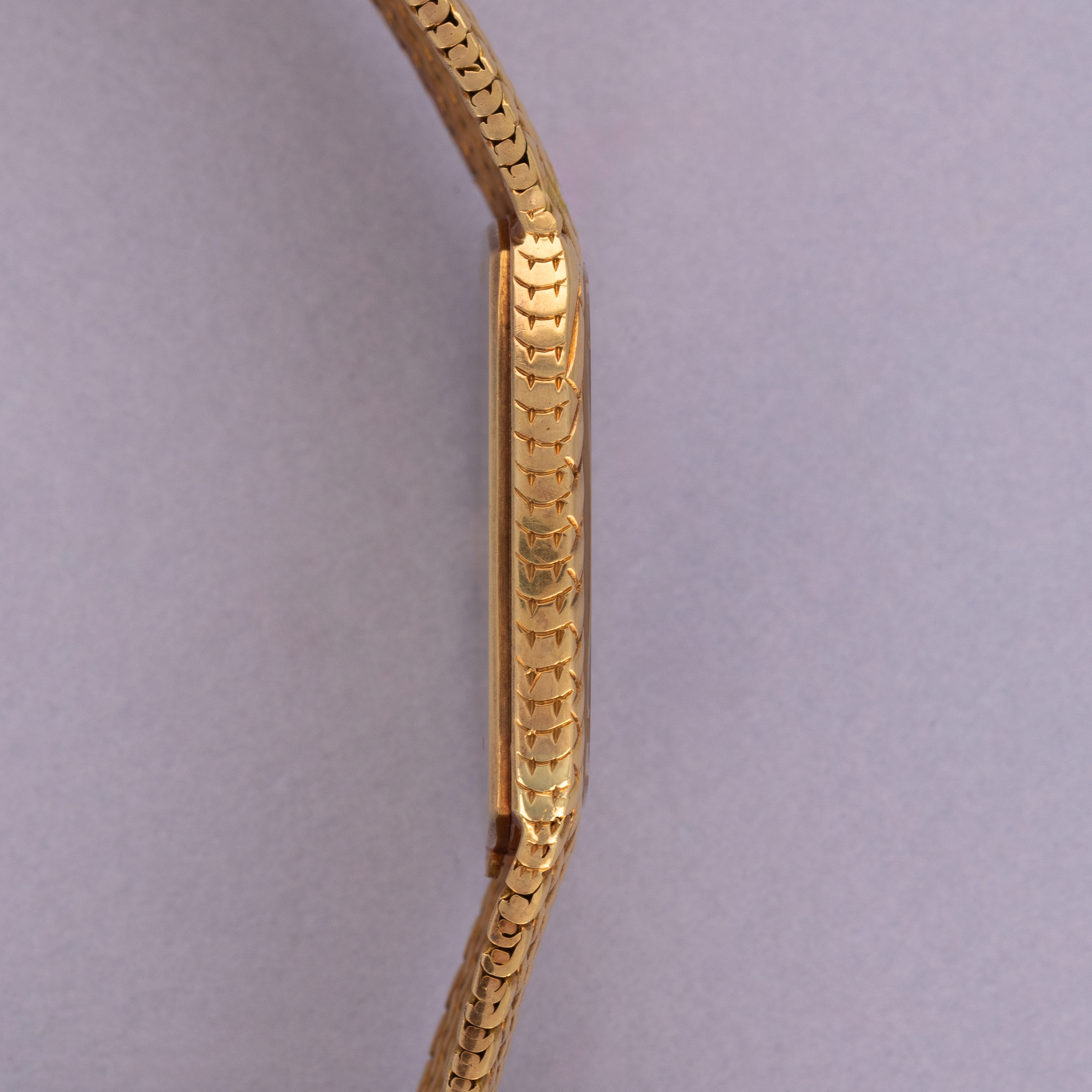 Boasting an intricately woven 18kt yellow gold bracelet that wraps around its bezel, the Cobra was distinctive for its all-in-one construction style whereby its design was displayed equally across the entire watch.