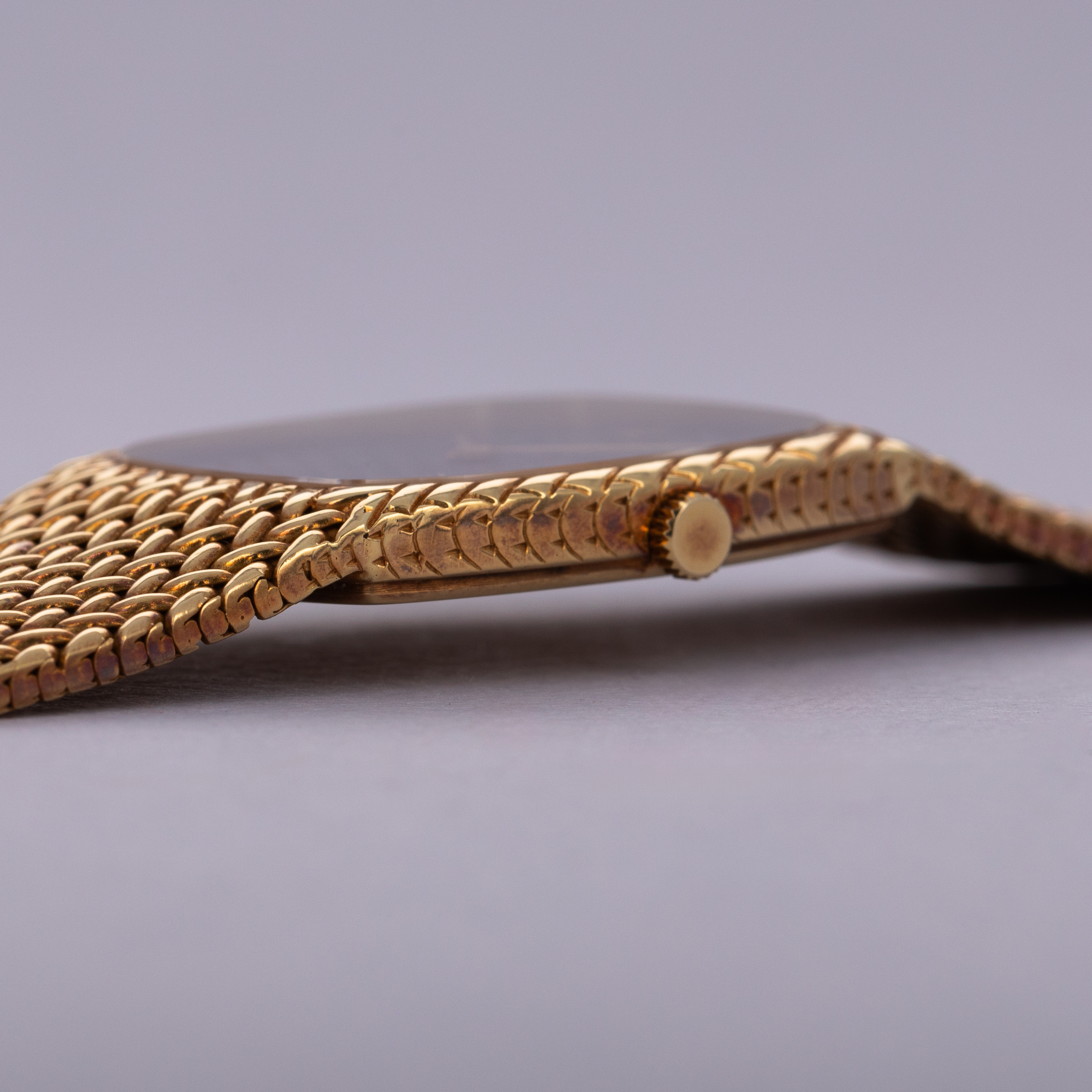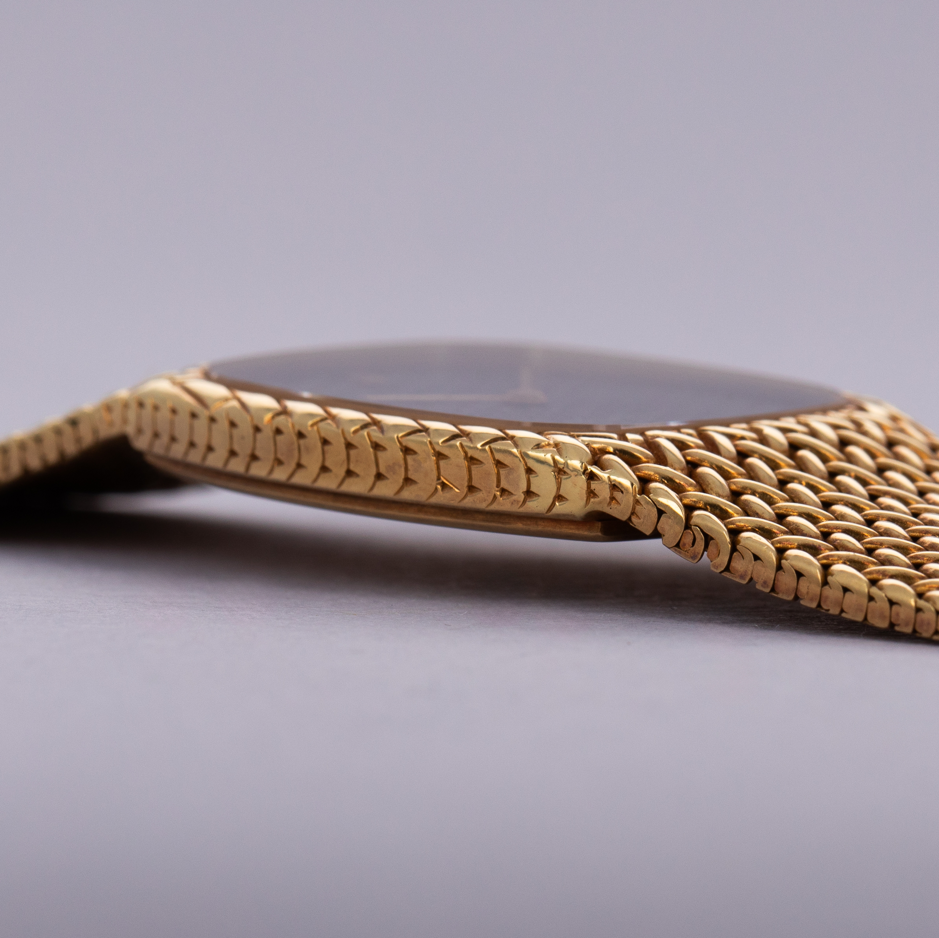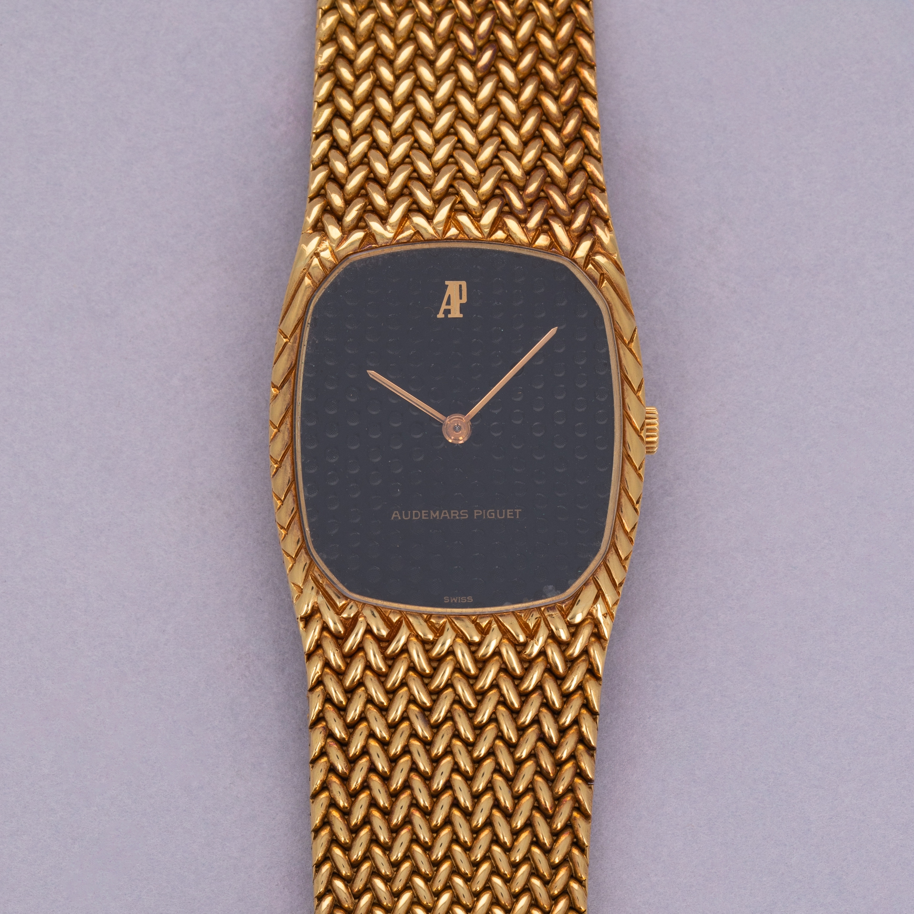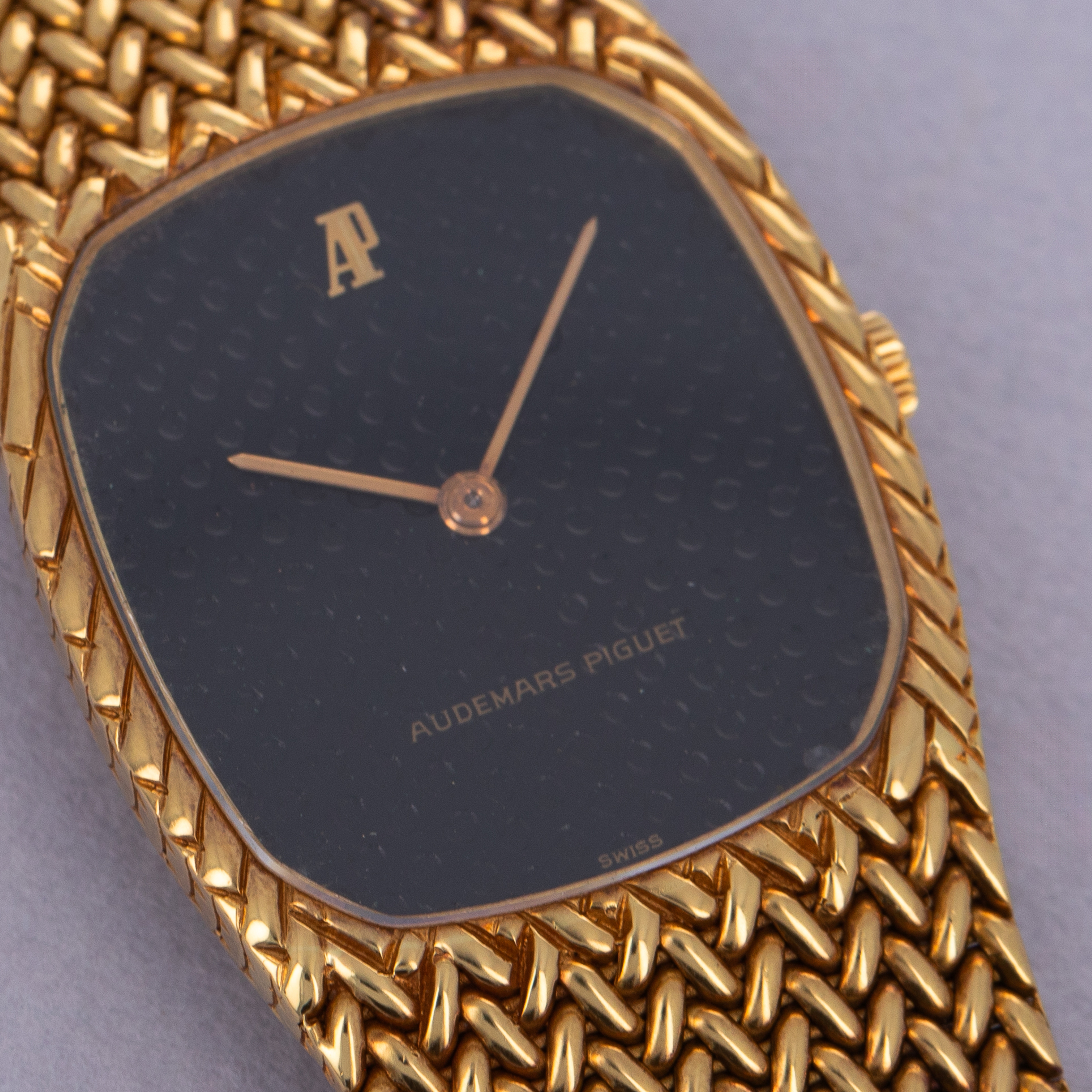 Famed for their aggressively avant-garde take on design and aesthetics, Audemars Piguet has long been known to blend aspects of their history with their own take on horology. As a result, timepieces that feature both - period-defining designs and aspects of AP’s historical DNA can be produced, just like this ‘Cobra.’ Featuring a sleek tonneau-shaped case with a luxurious 18kt yellow gold construction with an intricately woven 18kt yellow gold bracelet and bezel encircling a black dimple dial, this timepiece blends AP’s love for luxury with their desire to create truly unique designs. Powered by a wonderfully thin automatic movement, this timepiece ensures that AP’s clientele could enjoy AP’s high level of horology design, all the while enjoying a watch that is compact on the wrist and wears like an elegant dress watch just with a beautifully intricate and opulent sense of design through its immaculately woven bracelet and uniquely textured dial.