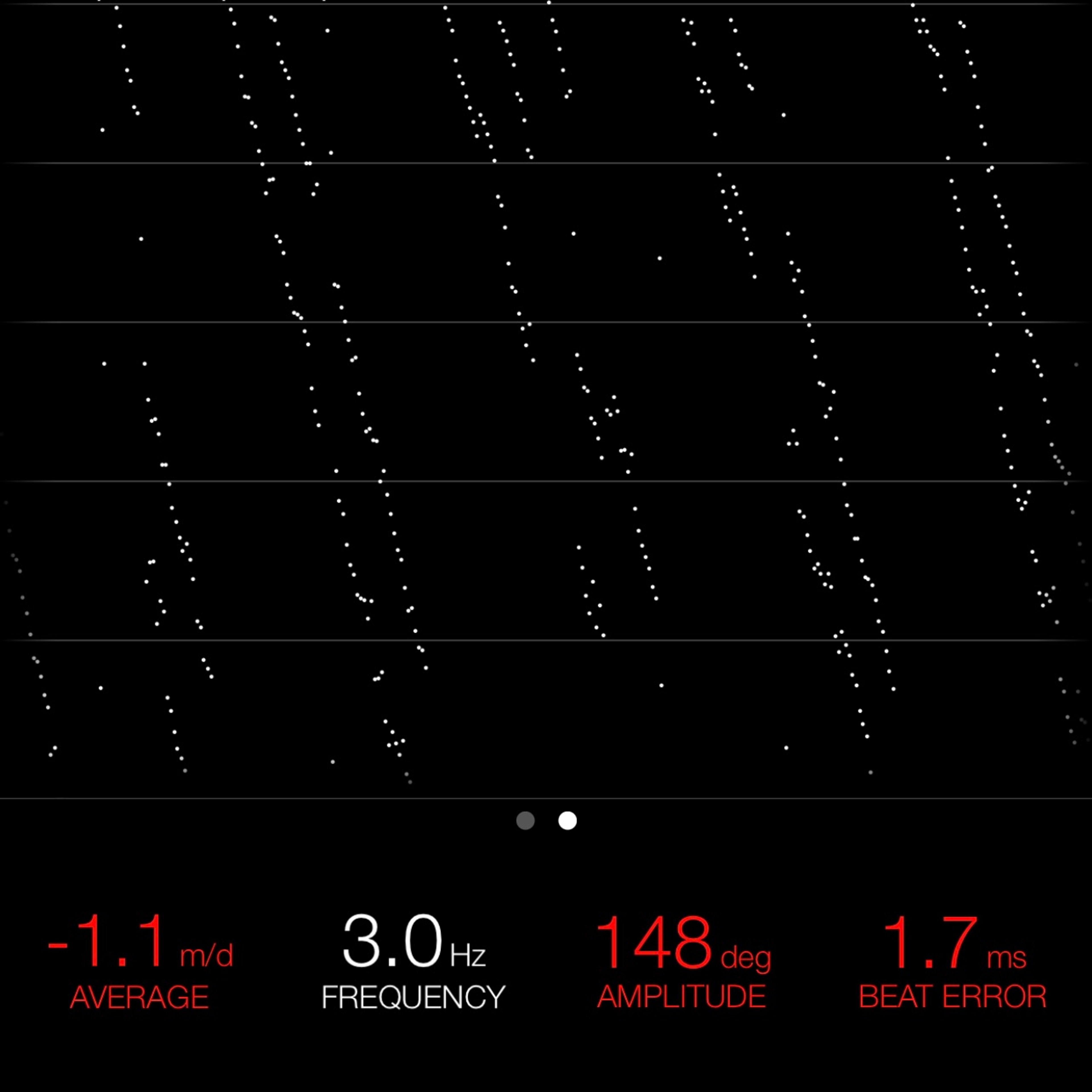 This reading was taken (crown down) with a ONEOF Accuracy Boutique Edition timing machine at time of cataloging. It is provided as a courtesy only, and shall not be construed as a warranty or guarantee of any kind. Please refer to our terms and conditions of sale for more information.
