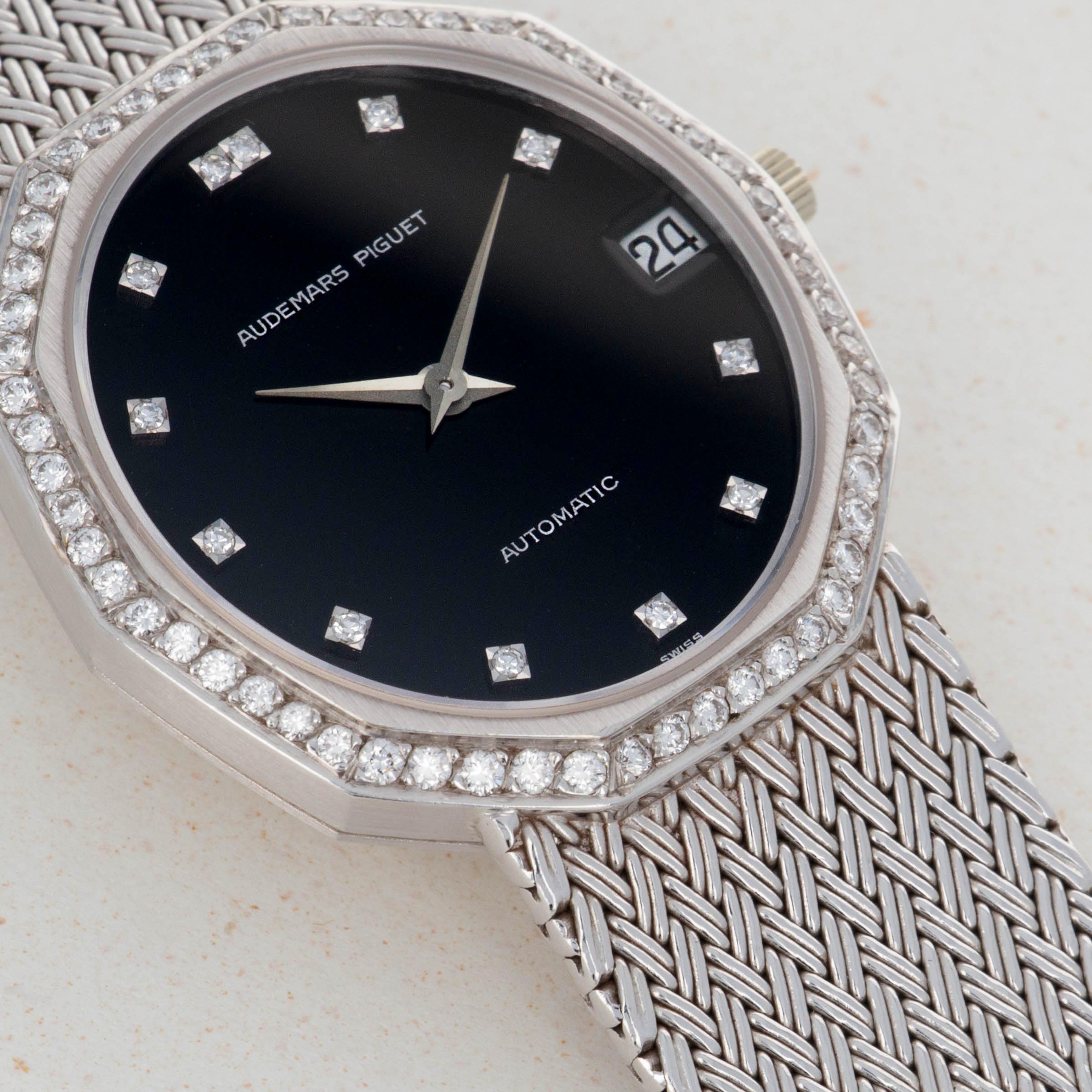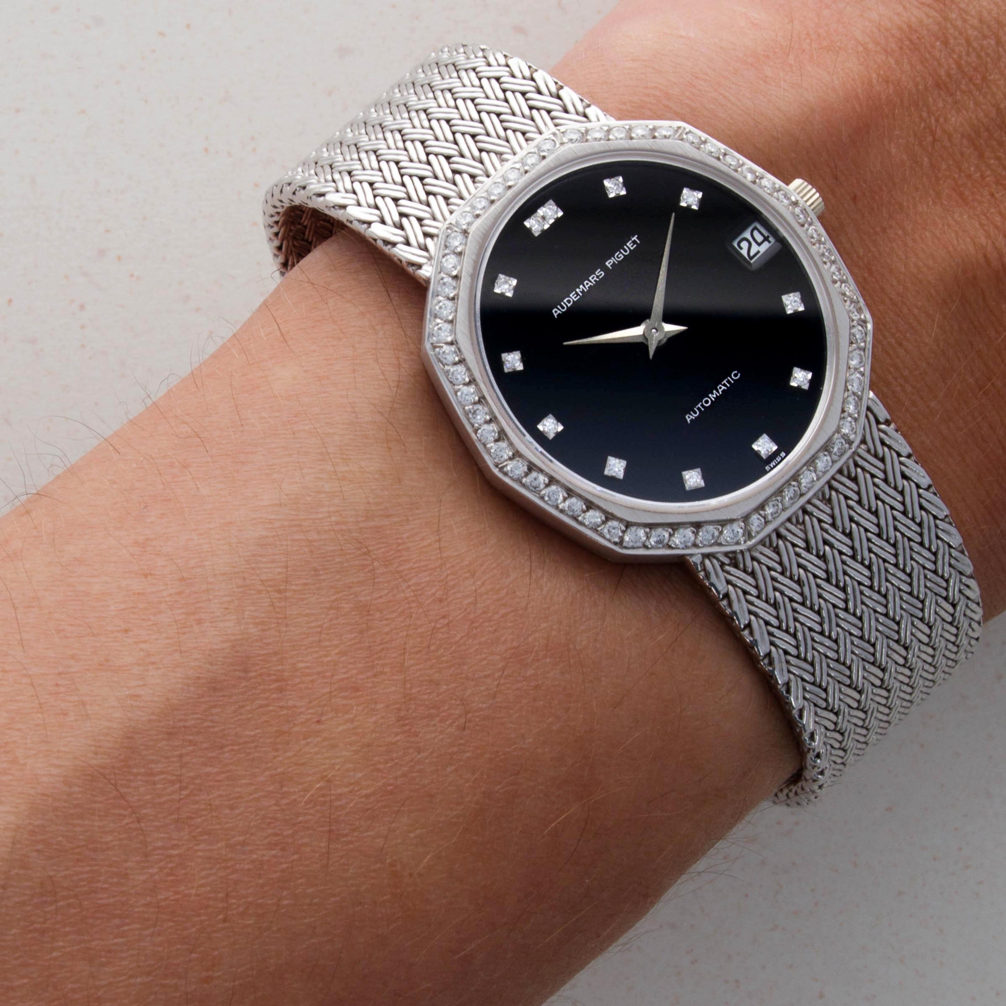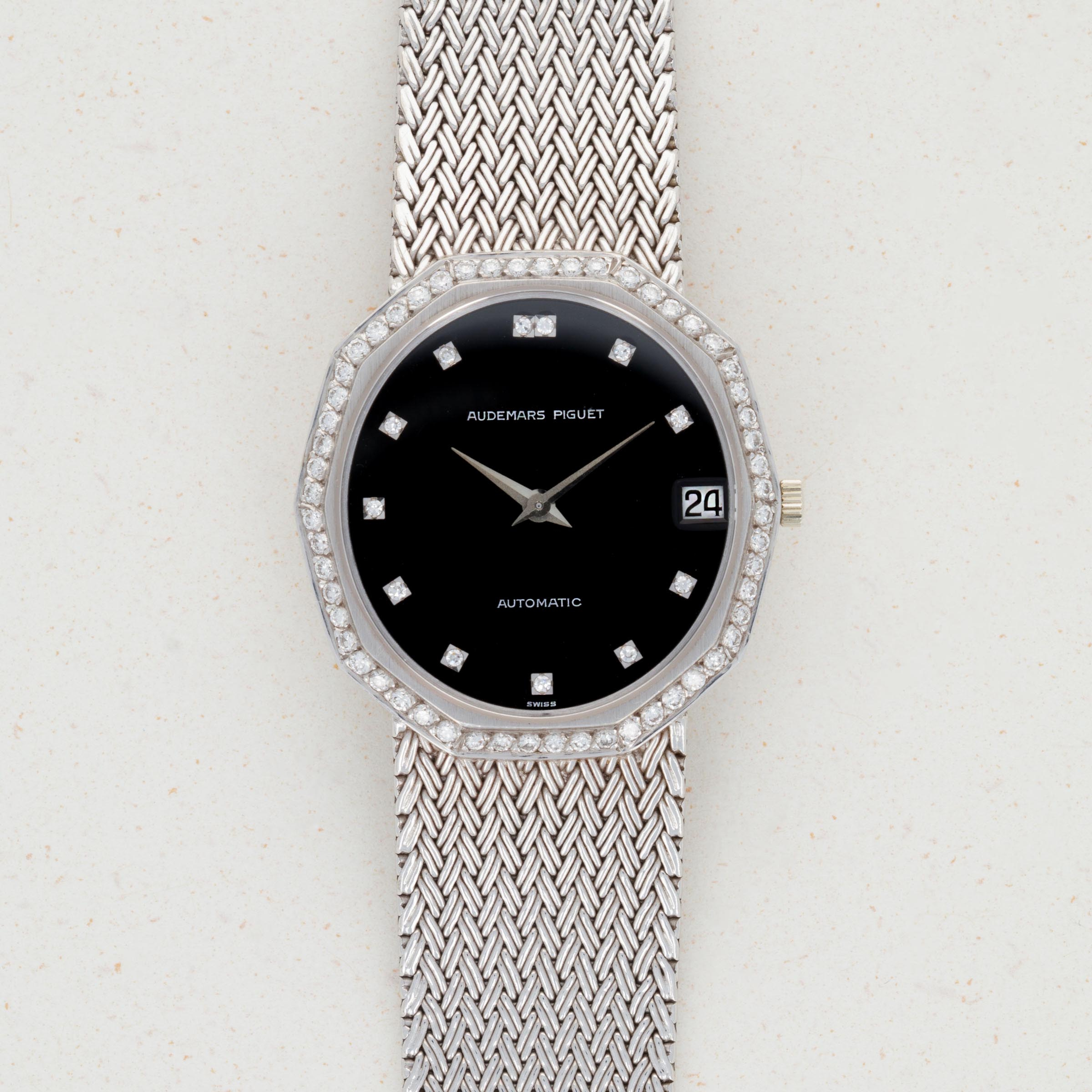 Famed for their aggressively avant-garde take on design and aesthetics, Audemars Piguet has long been known to blend aspects of their history with their own take on horology. As a result, timepieces that feature both - period-defining designs and aspects of AP’s historical DNA can be produced, just like this example. Featuring an octagonal case, much like the Royal Oak’s case, an avant-garde piece of design for the period, and a luxurious 18kt white gold construction with a diamond-set onyx dial and bezel, this timepiece blends AP’s love of opulence with their desire to celebrate their unique designs. Powered by a wonderfully thin automatic movement, this timepiece ensures that AP’s female clientele could enjoy AP’s high level of horology just like their female counterparts, but in a timepiece that features a feminine construction and a beautifully intricate and opulent sense of design through its immaculately woven bracelet and plethora of diamonds.