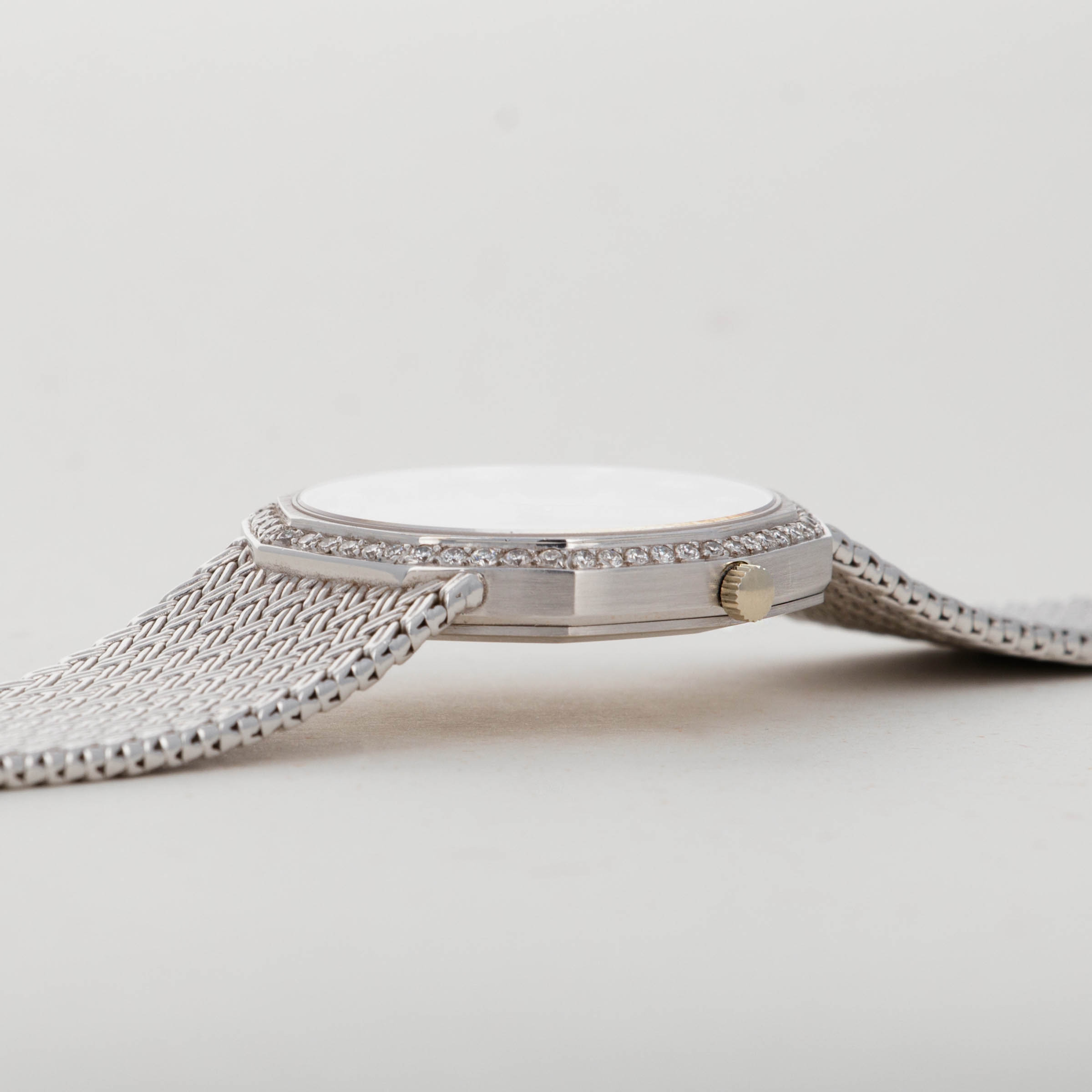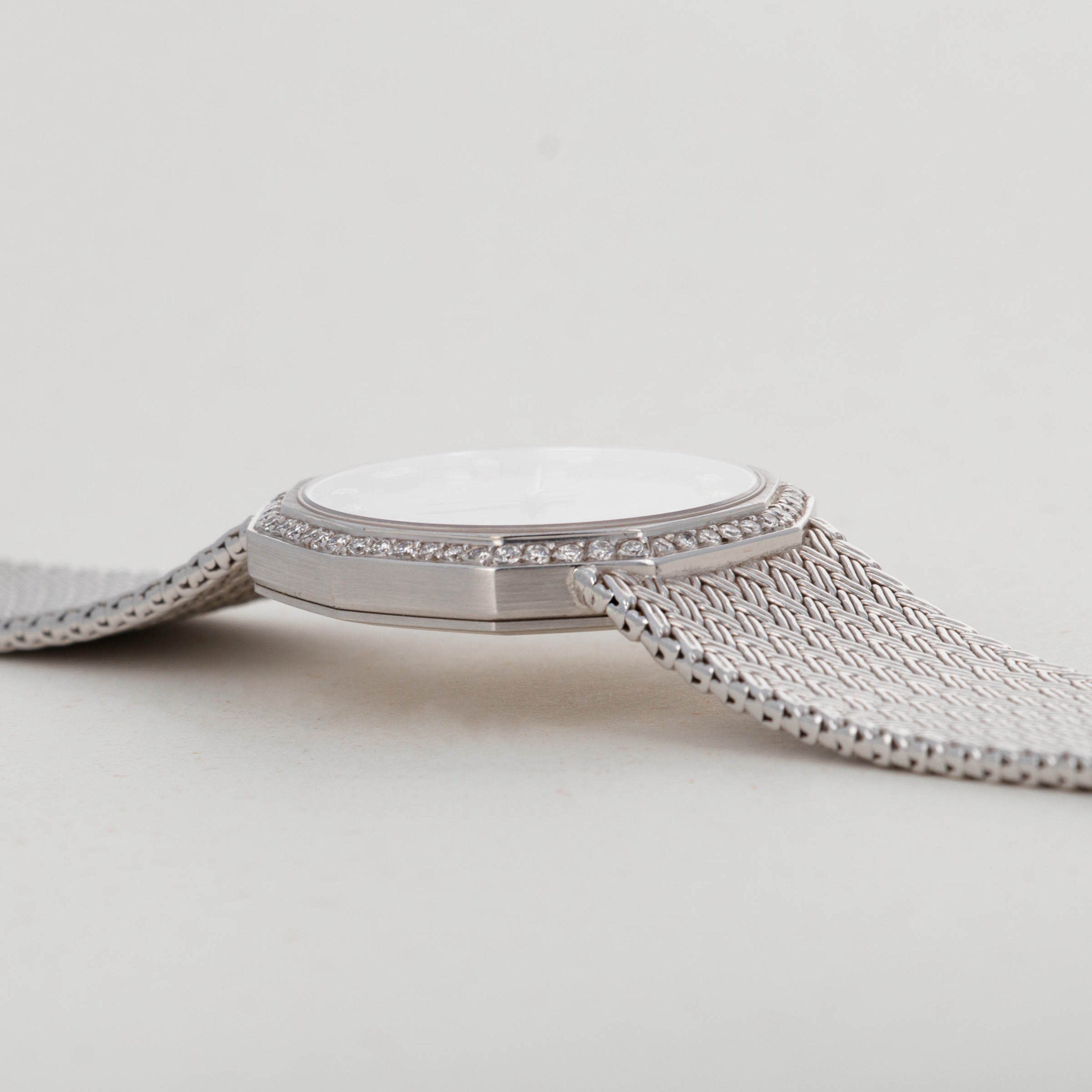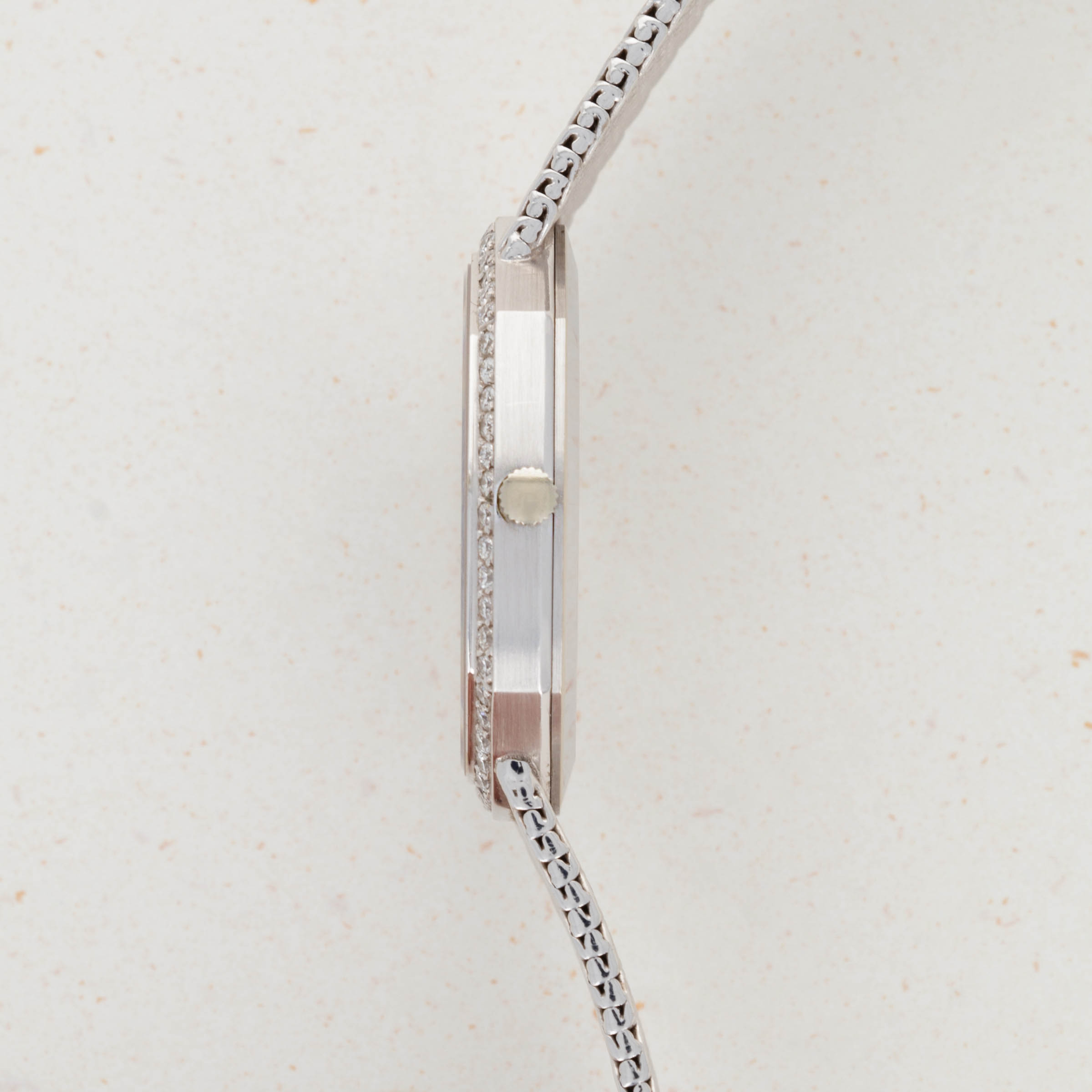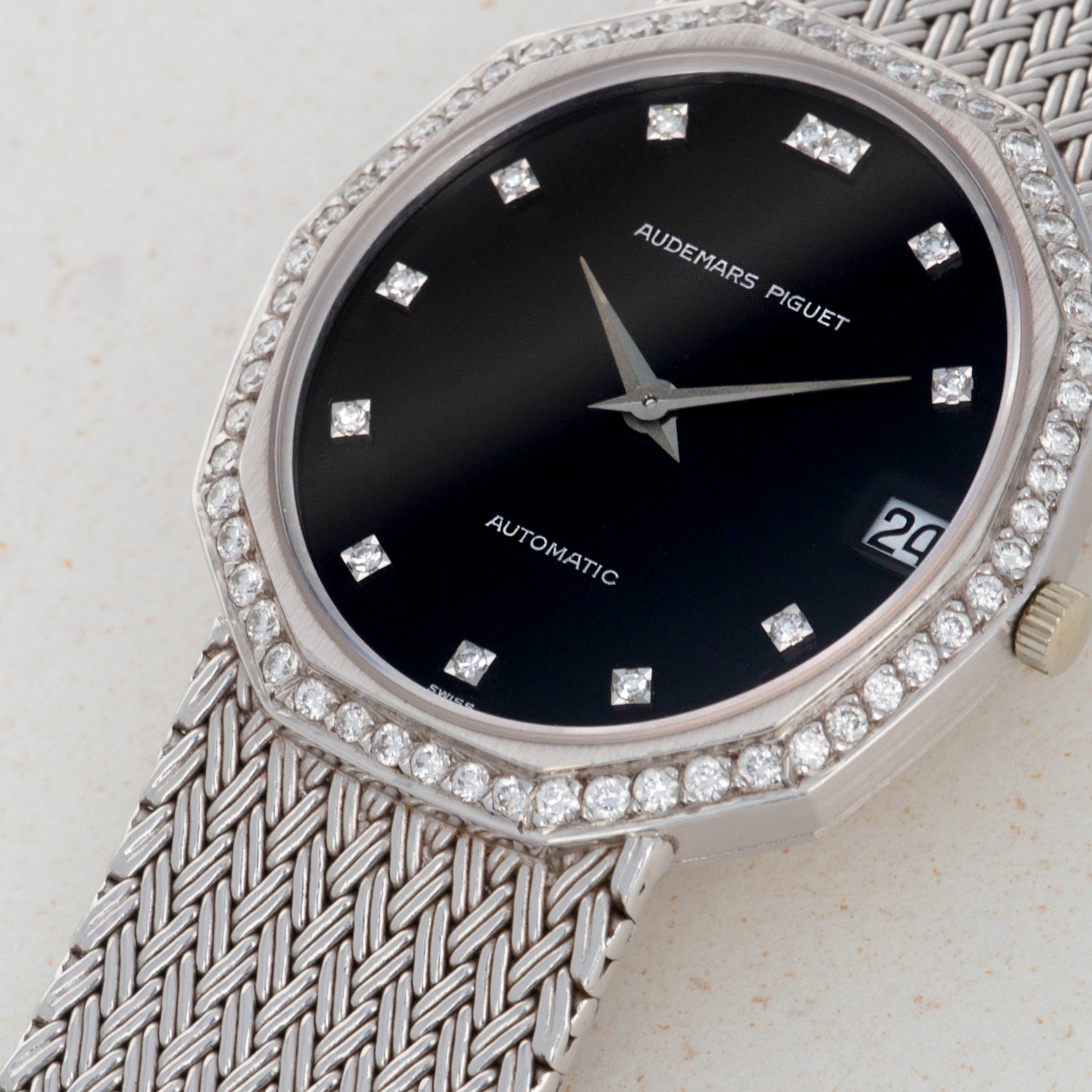 Famed for their aggressively avant-garde take on design and aesthetics, Audemars Piguet has long been known to blend aspects of their history with their own take on horology. As a result, timepieces that feature both - period-defining designs and aspects of AP’s historical DNA can be produced, just like this example. Featuring an octagonal case, much like the Royal Oak’s case, an avant-garde piece of design for the period, and a luxurious 18kt white gold construction with a diamond-set onyx dial and bezel, this timepiece blends AP’s love of opulence with their desire to celebrate their unique designs. Powered by a wonderfully thin automatic movement, this timepiece ensures that AP’s female clientele could enjoy AP’s high level of horology just like their female counterparts, but in a timepiece that features a feminine construction and a beautifully intricate and opulent sense of design through its immaculately woven bracelet and plethora of diamonds.