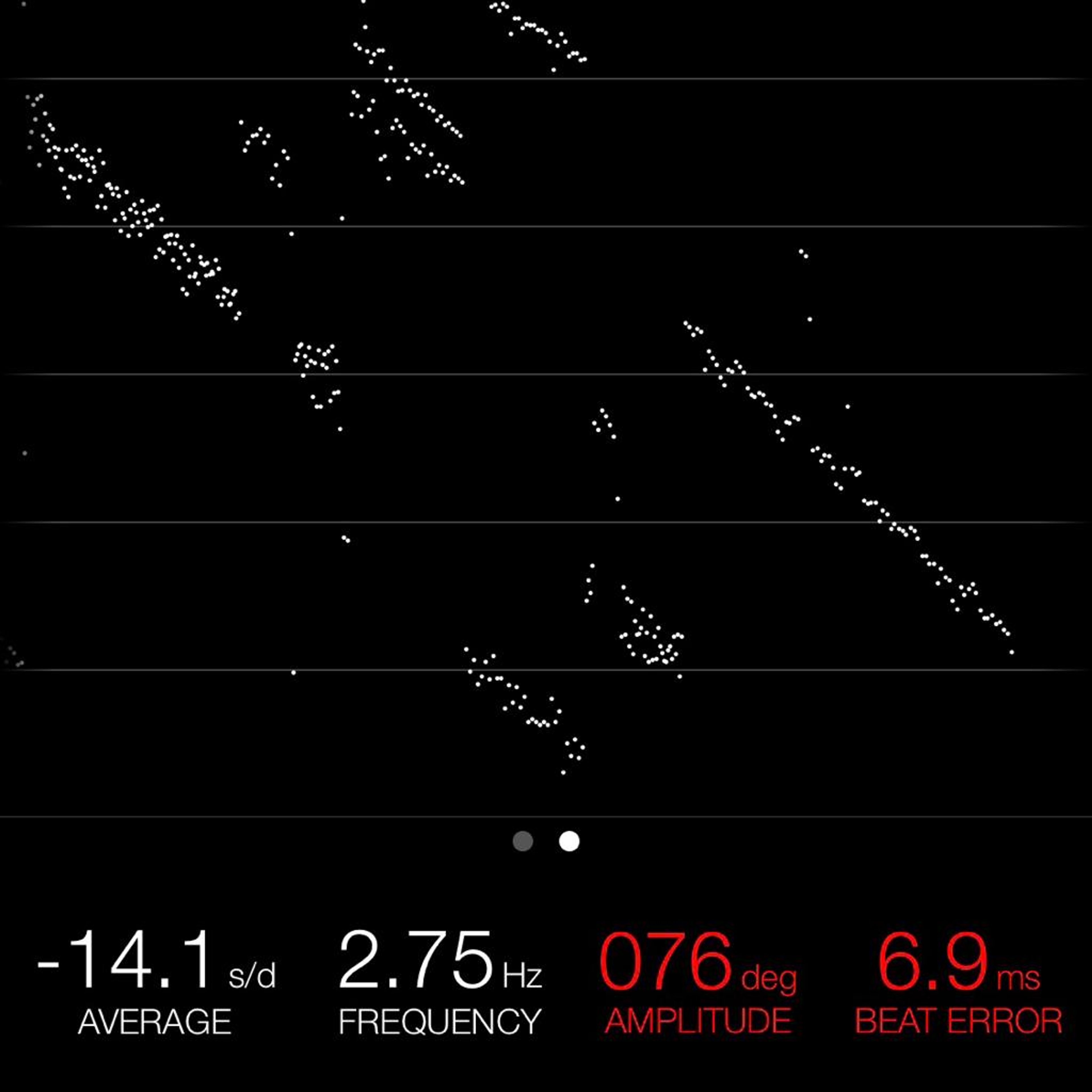 This reading was taken (crown down) with a ONEOF Accuracy Boutique Edition timing machine at time of cataloging. It is provided as a courtesy only, and shall not be construed as a warranty or guarantee of any kind. Please refer to our terms and conditions of sale for more information.