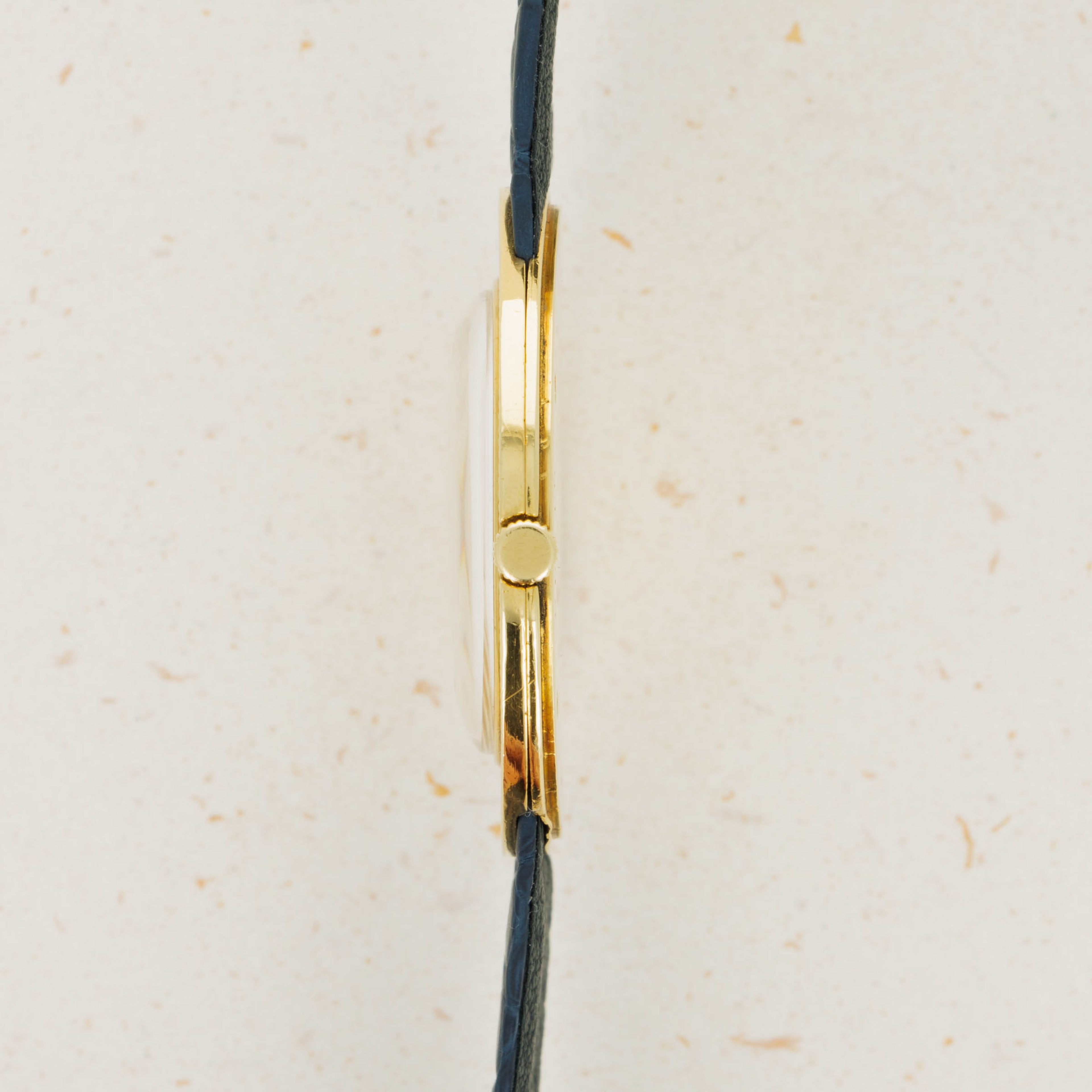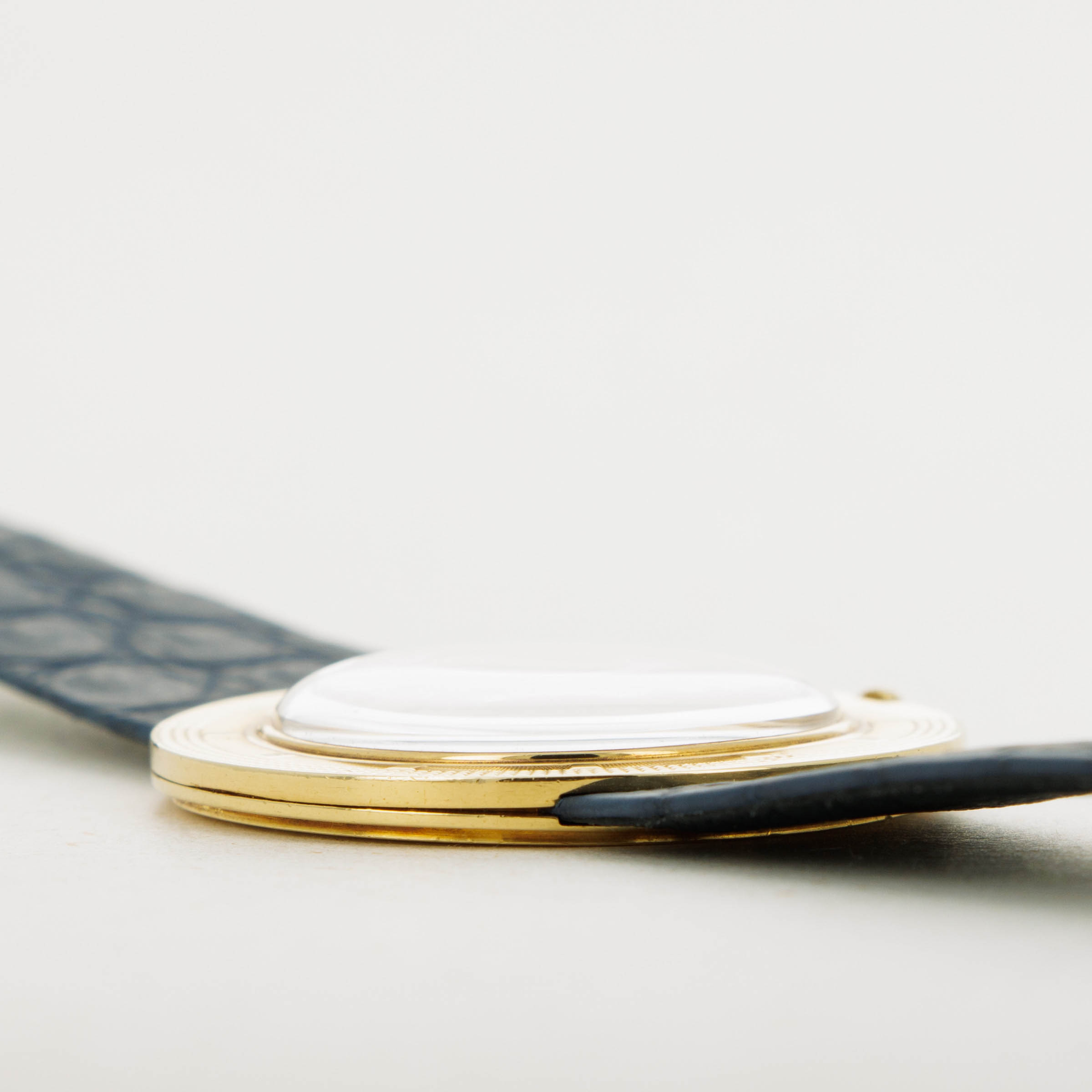 A side profile look at the razor-thin case (and movement) of the "Disco Volante". A groundbreaking innovation for its time, and today a hallmark of its distinctive design.