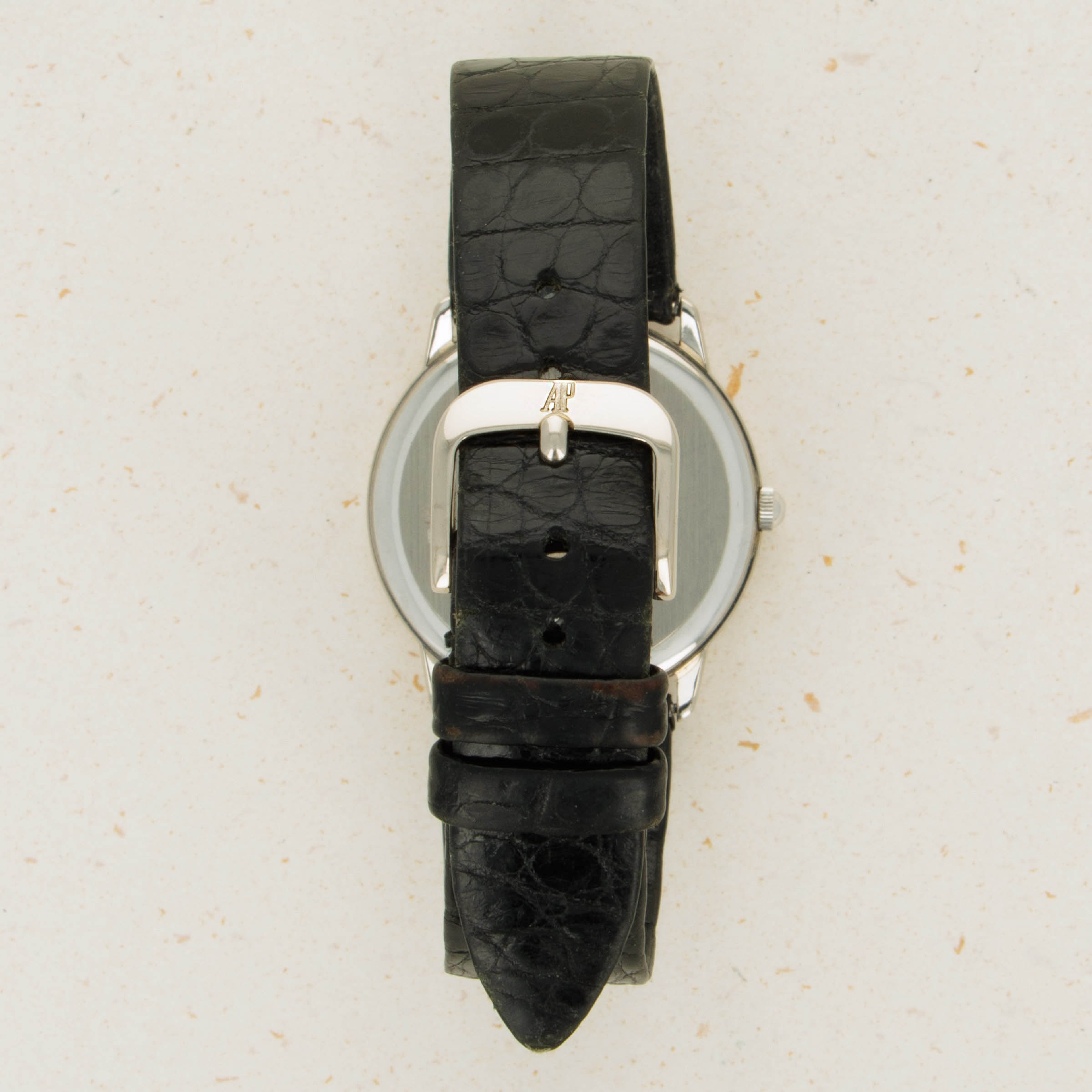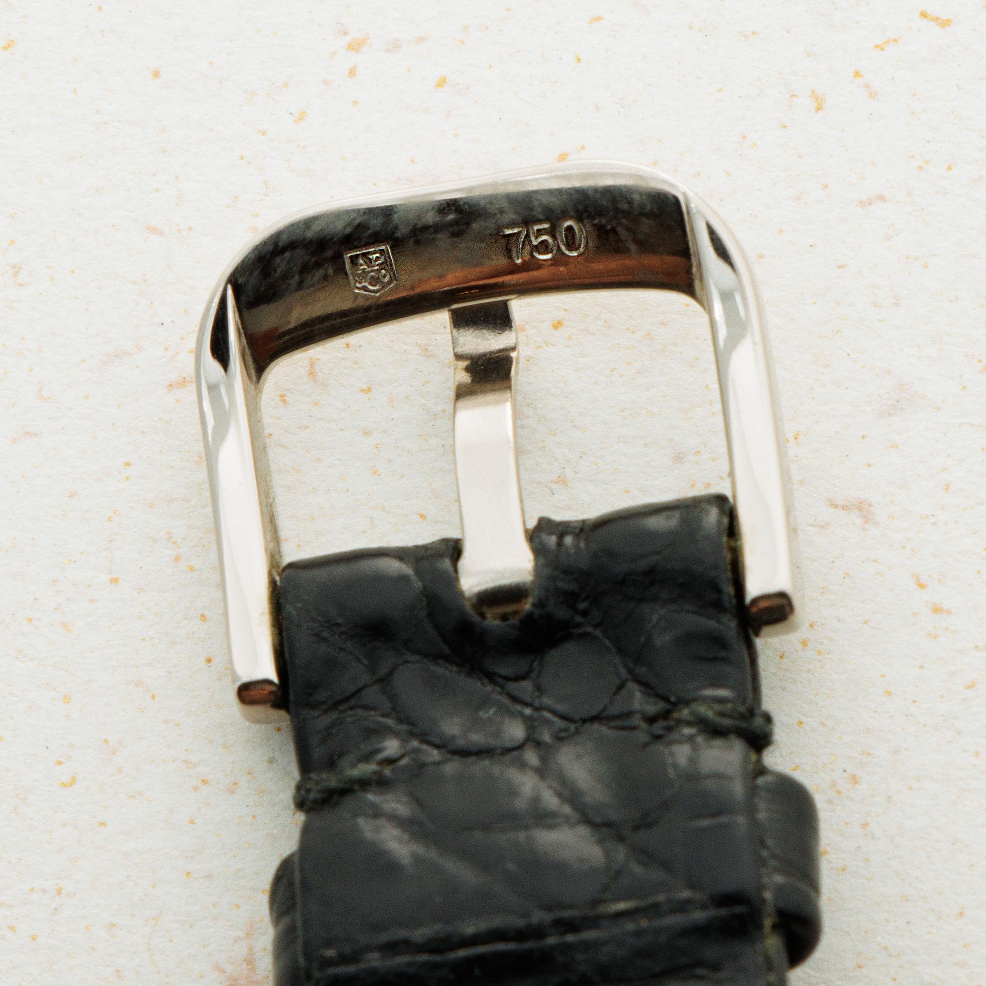 Watch is in excellent overall condition. Minor wear is visible on the case, including some hairlines on the case sides and bezel. Caseback is crisp and engravings and hallmarks are razor sharp. Watch comes with its original 18k WG AP buckle.