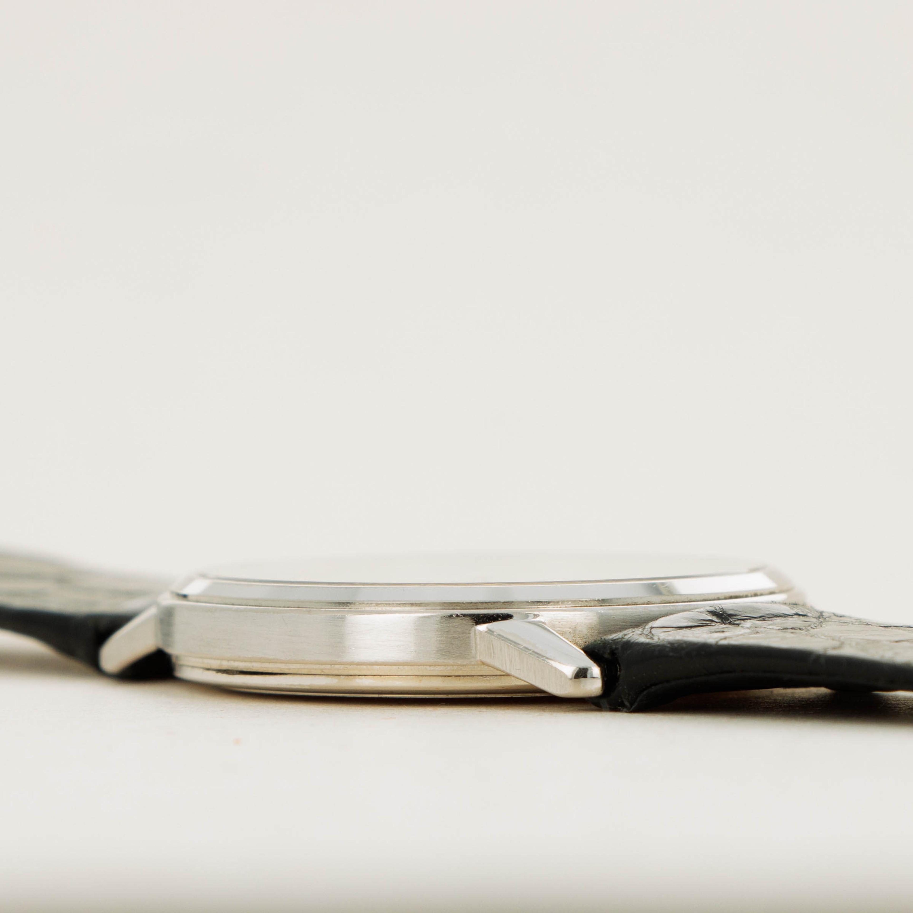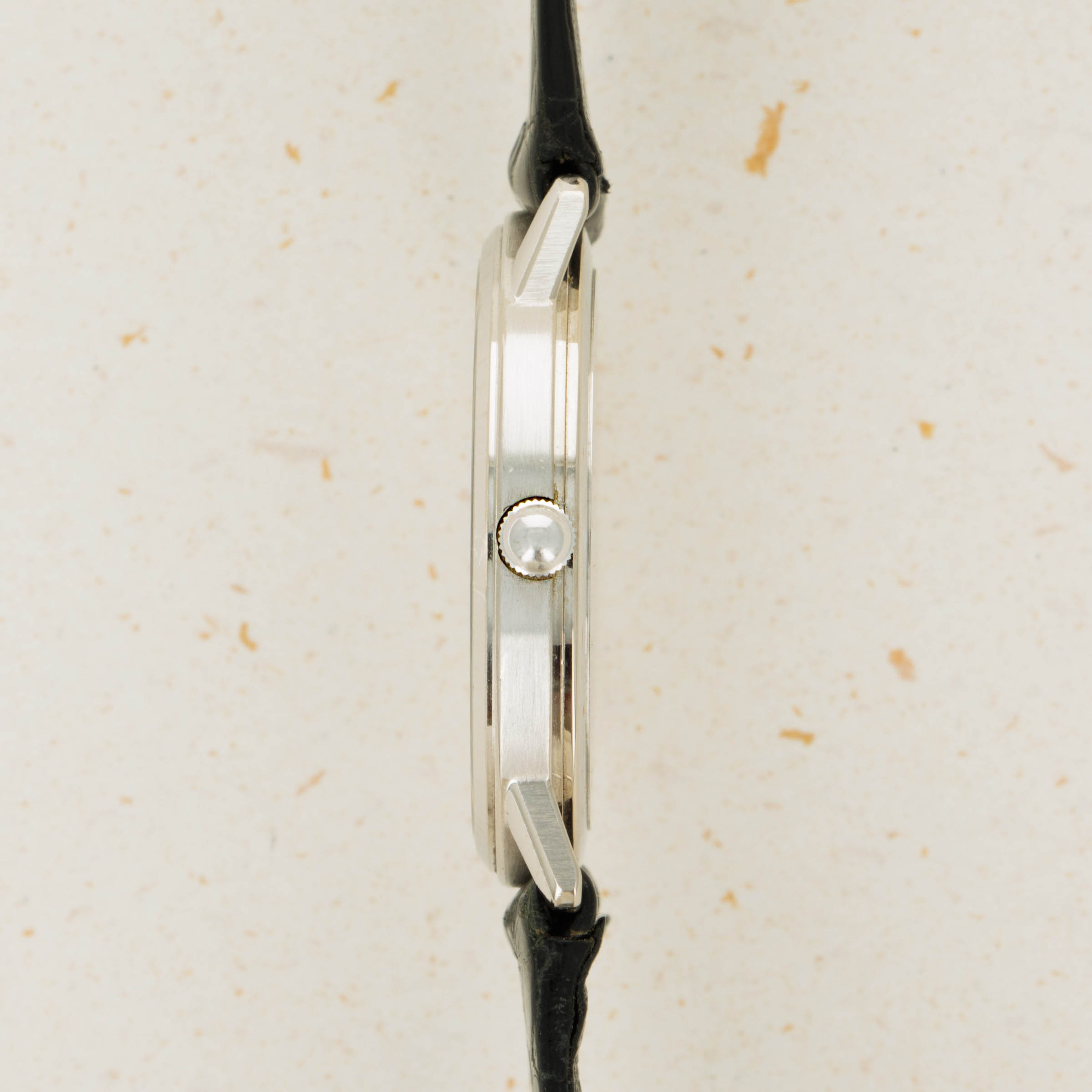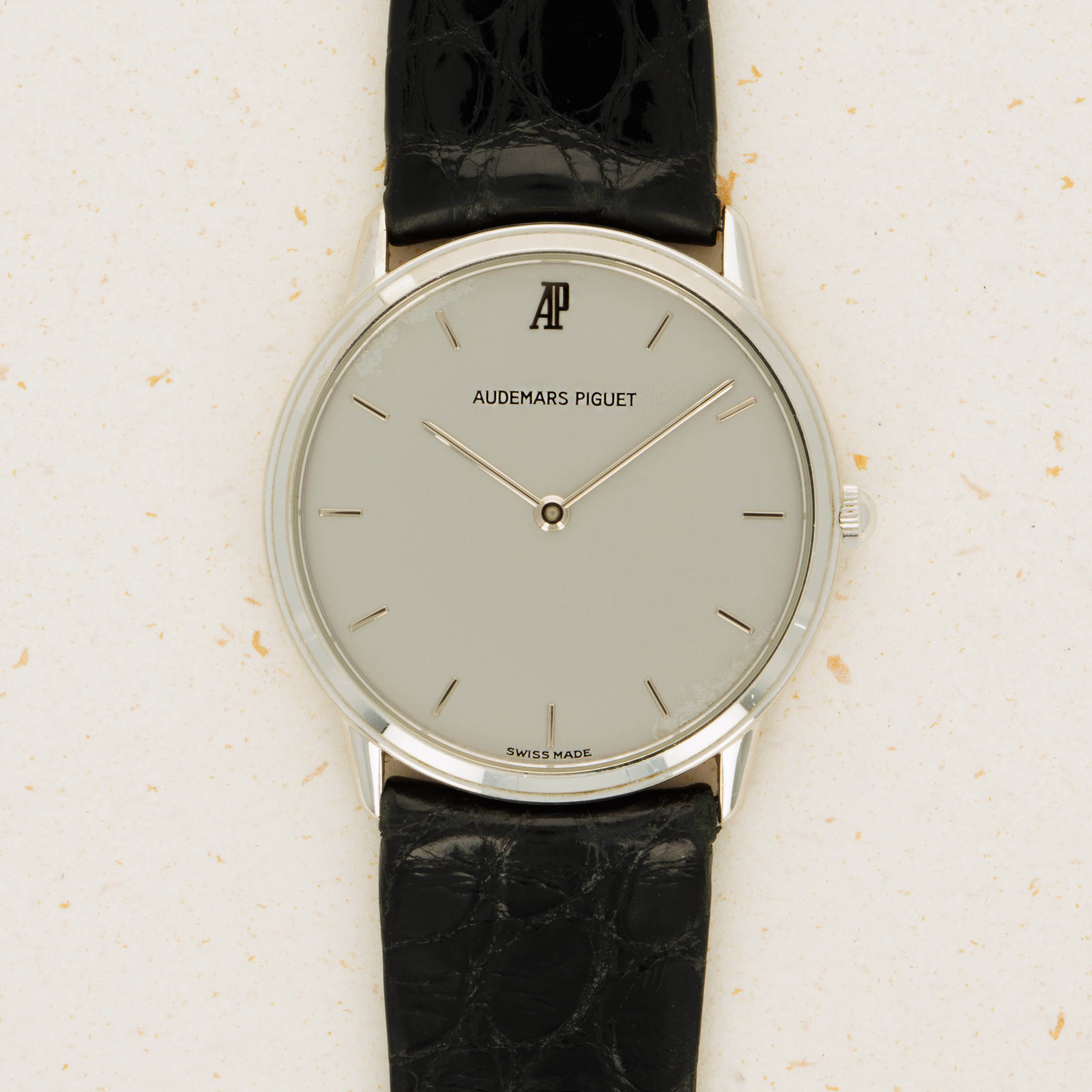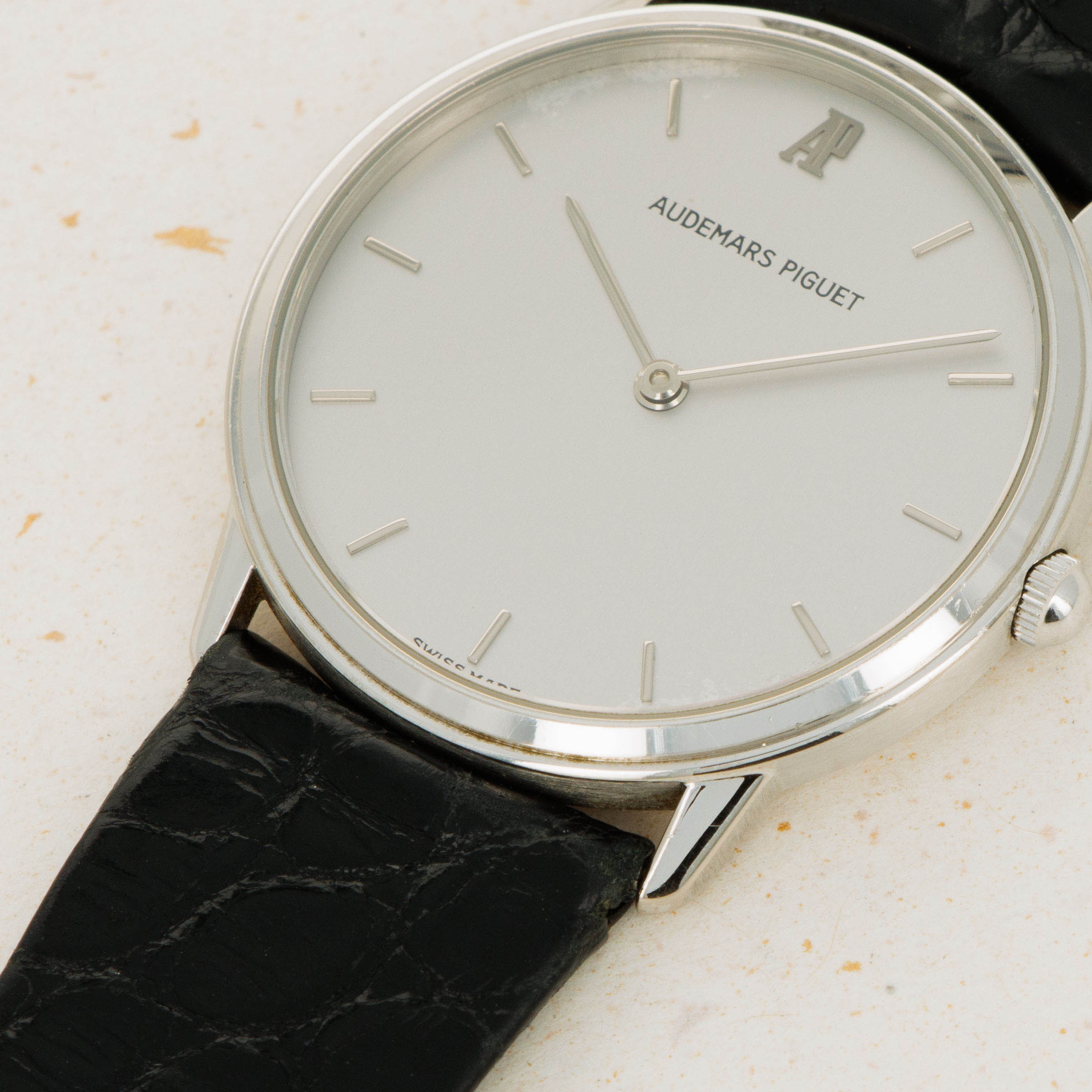Today famed for their octagonal design elements as best seen in the Royal Oak, Royal Oak Offshore, Royal Oak Concept, Code 11.59 and others, Audemars Piguet, like just about every other high-end watchmaker was best-known for their round dress watches. Designed with a minimalist aesthetic that epitomized the timepiece’s functional nature, these dress watches were round, thin and had elegantly legible dials – just as this vintage dress watch has. Hailing from the 1980s, this dress watch is an 18kt white gold example that features a light grey dial with carefully applied baton indices and simple baton hands that feed into its design language all the more. Featuring a svelte 31mm white gold case that stands around 6mm tall, this example is an extra-thin watch, as AP has always been known for. With its stepped bezel and carefully tapering lugs, this example wears with an impressive sense of refinement that imbues it with the same sense of grace and decorum that mid-century dress watches are known and loved for.