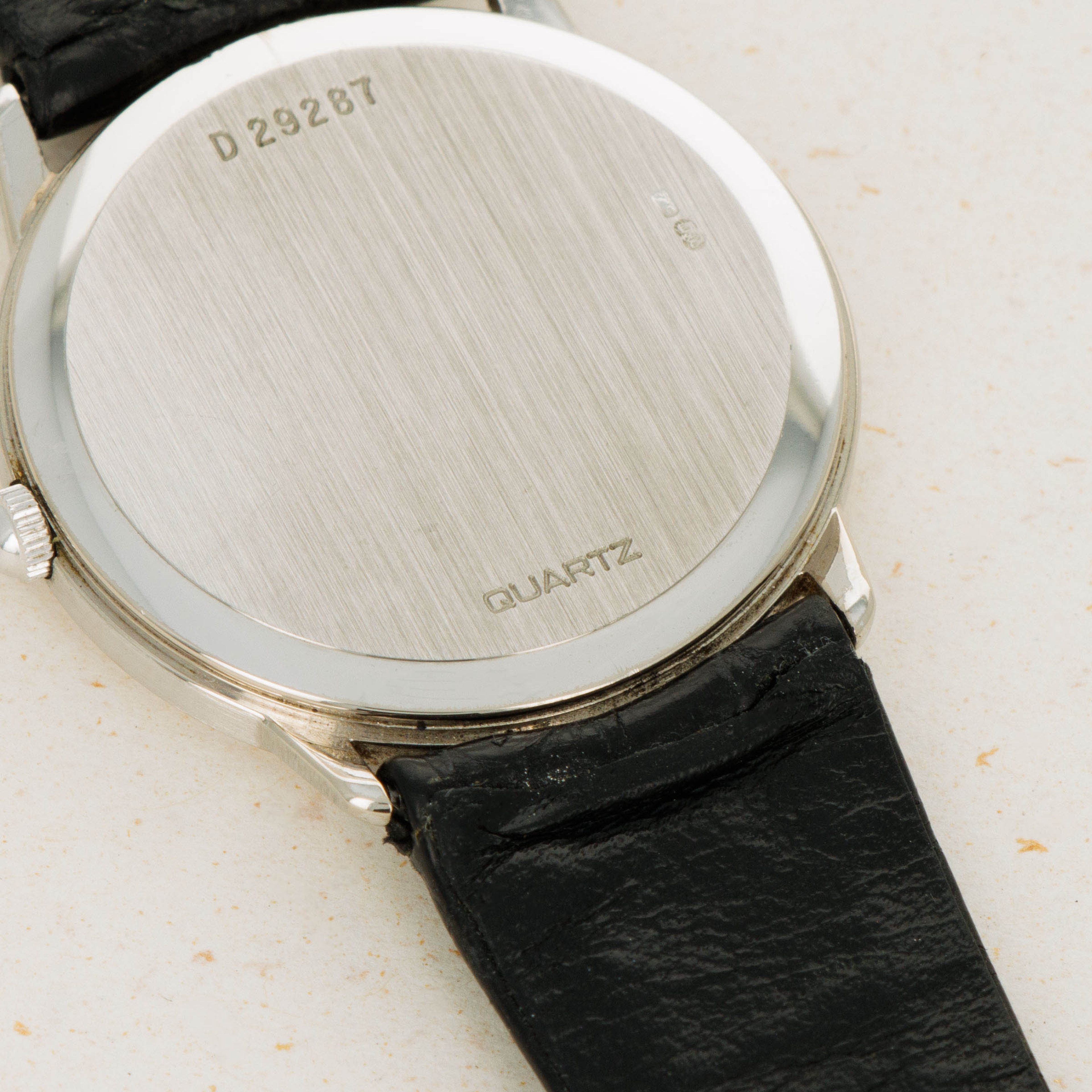 Featuring slim applied indices and elegant baton hands, this example's grey dial maintains an elegant monochromatic aesthetic that is embodied throughout the rest of the timepiece.