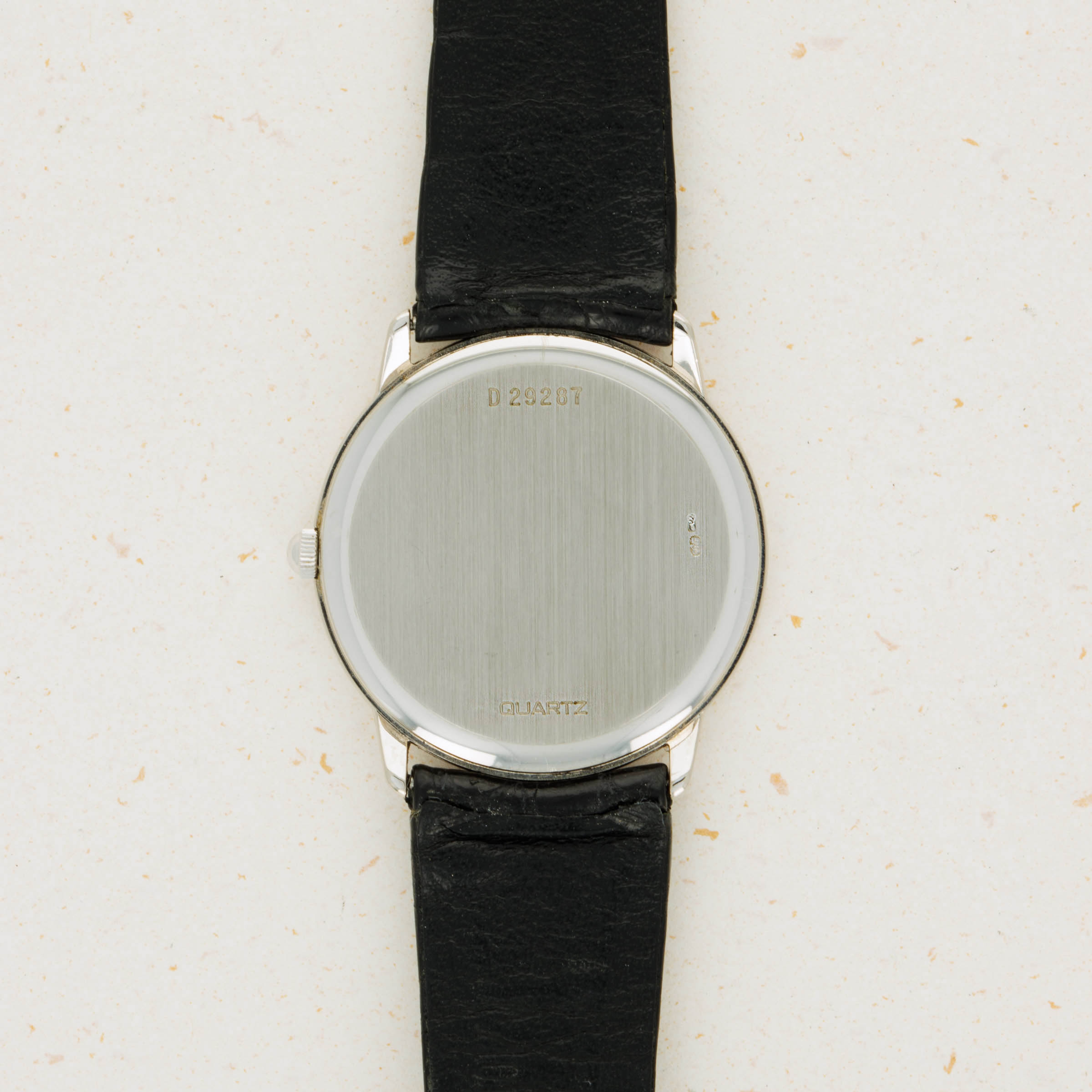 An elegant dress watch that blends modern watchmaking technology in the form of its quartz movement with mid-century design in the form of its svelte construction, this timepiece truly gives its owner the best of both worlds.