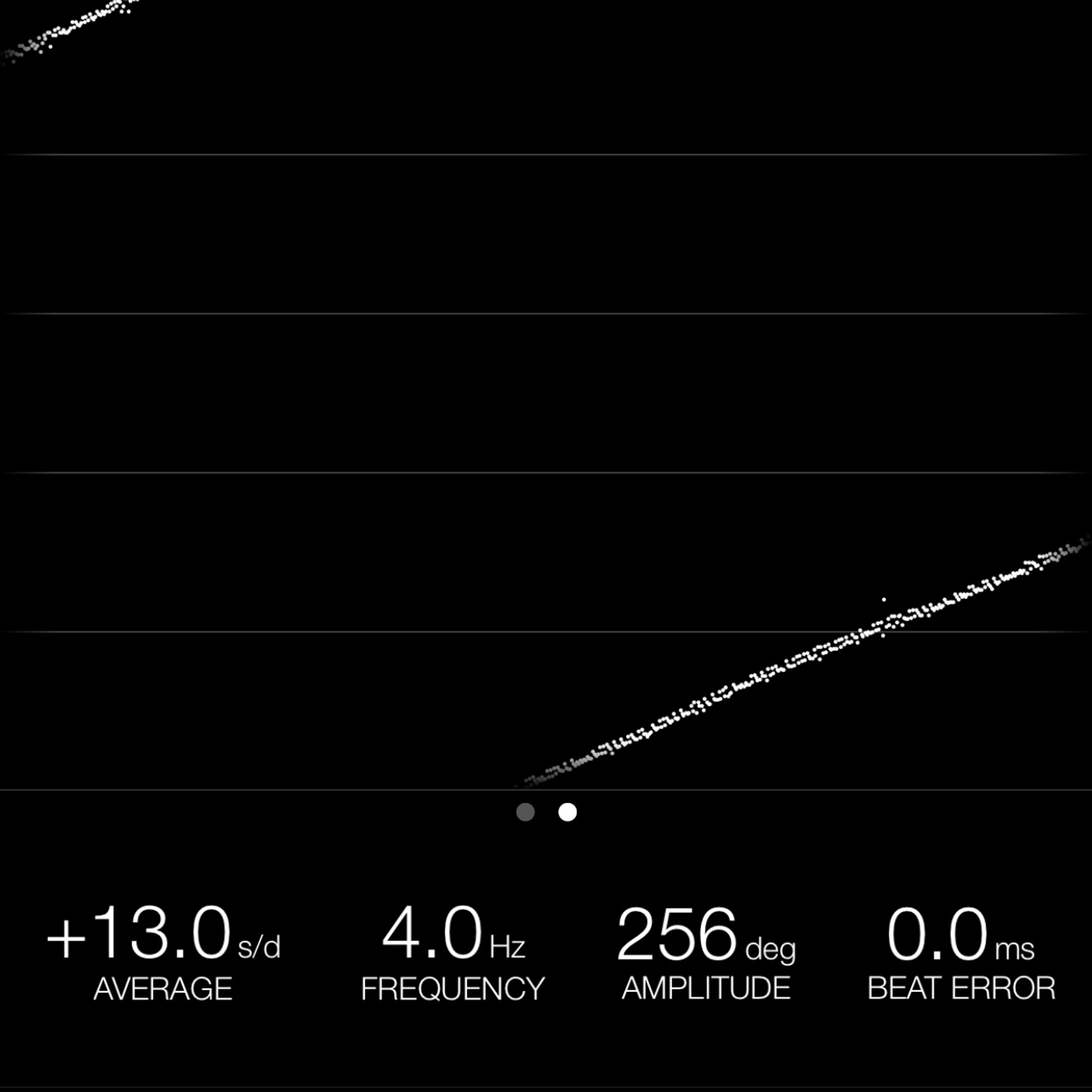 This reading was taken (crown down) with a ONEOF Accuracy Boutique Edition timing machine at time of cataloging. It is provided as a courtesy only, and shall not be construed as a warranty or guarantee of any kind. Please refer to our terms and conditions of sale for more information.