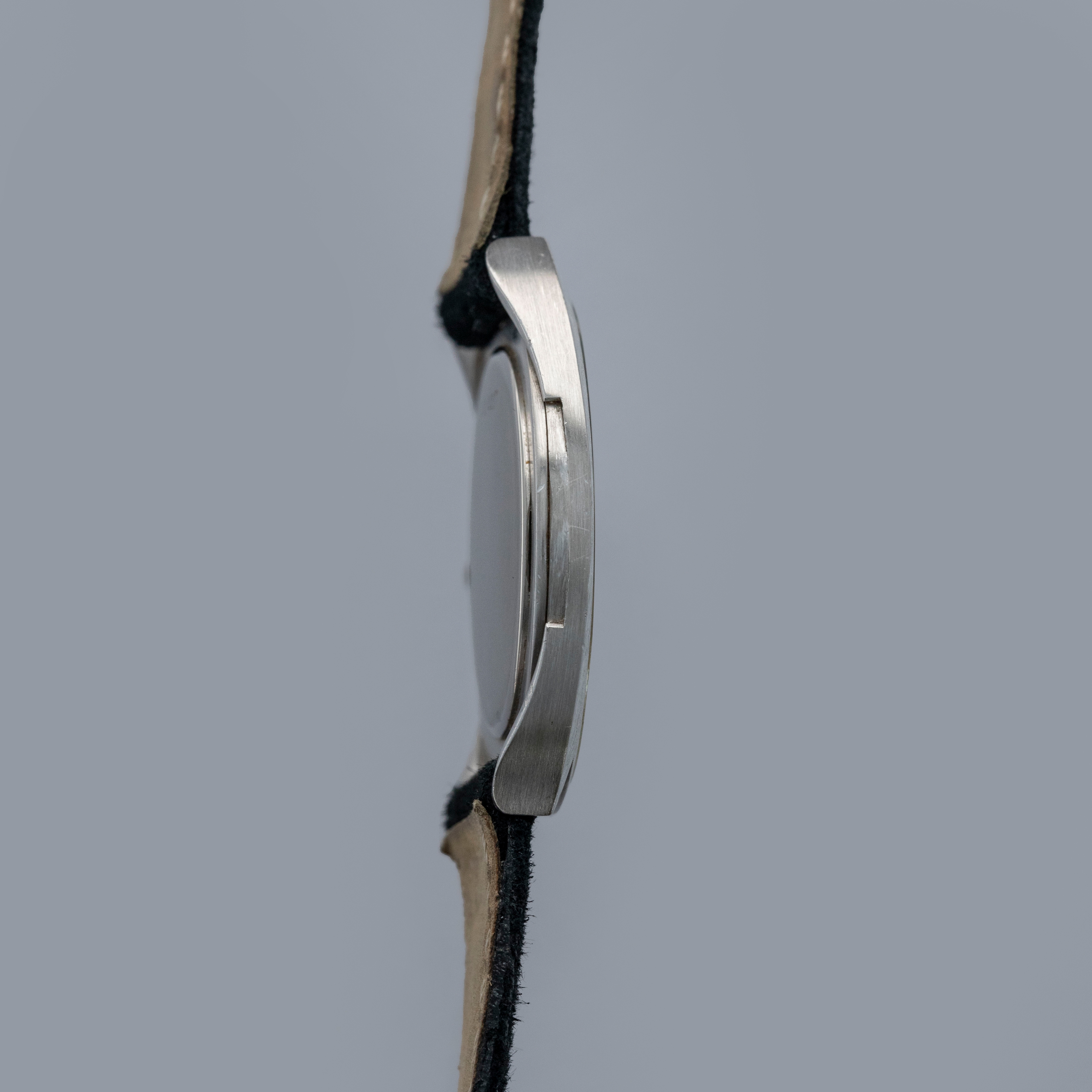 Featuring a rather understated silver dial with a subtle vertical brushed finish, this timepiece's most notable design feature is its vertical applied indices, which combine with its construction to create a rather unique appearance.