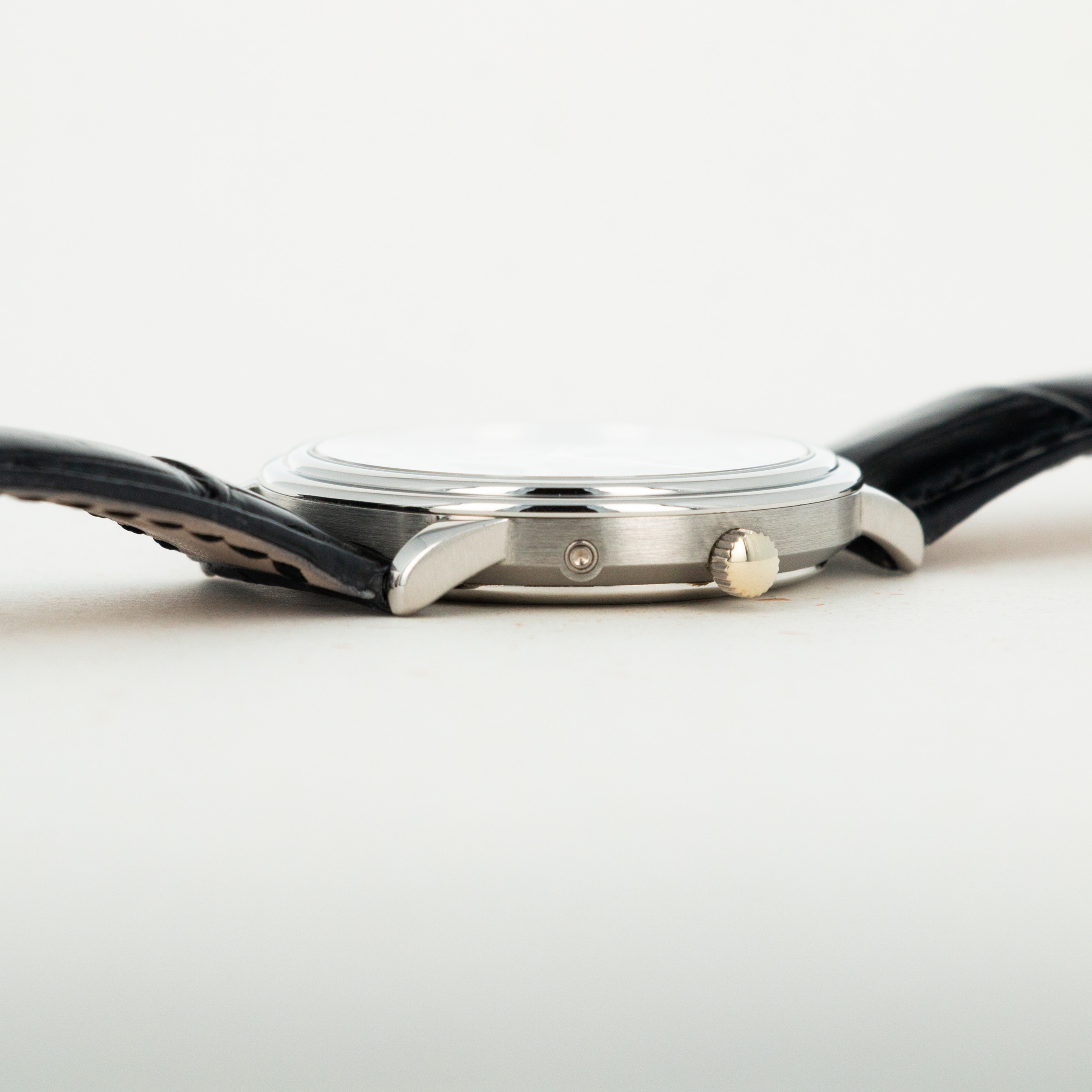 The overall condition of the watch is excellent. The dial and hands show no indication of aging or damage. The high polish bezel has very light hairline scratches. The case shows minimal to no signs of wear. The caseback has some light hairline scratches which are only slightly visible on the high polished section. There is no doubt that this watch has been carefully taken care of. The strap has only a few faint marks but is still in great condition. The buckle is original to the watch and has extremely tiny needlelike abrasions.