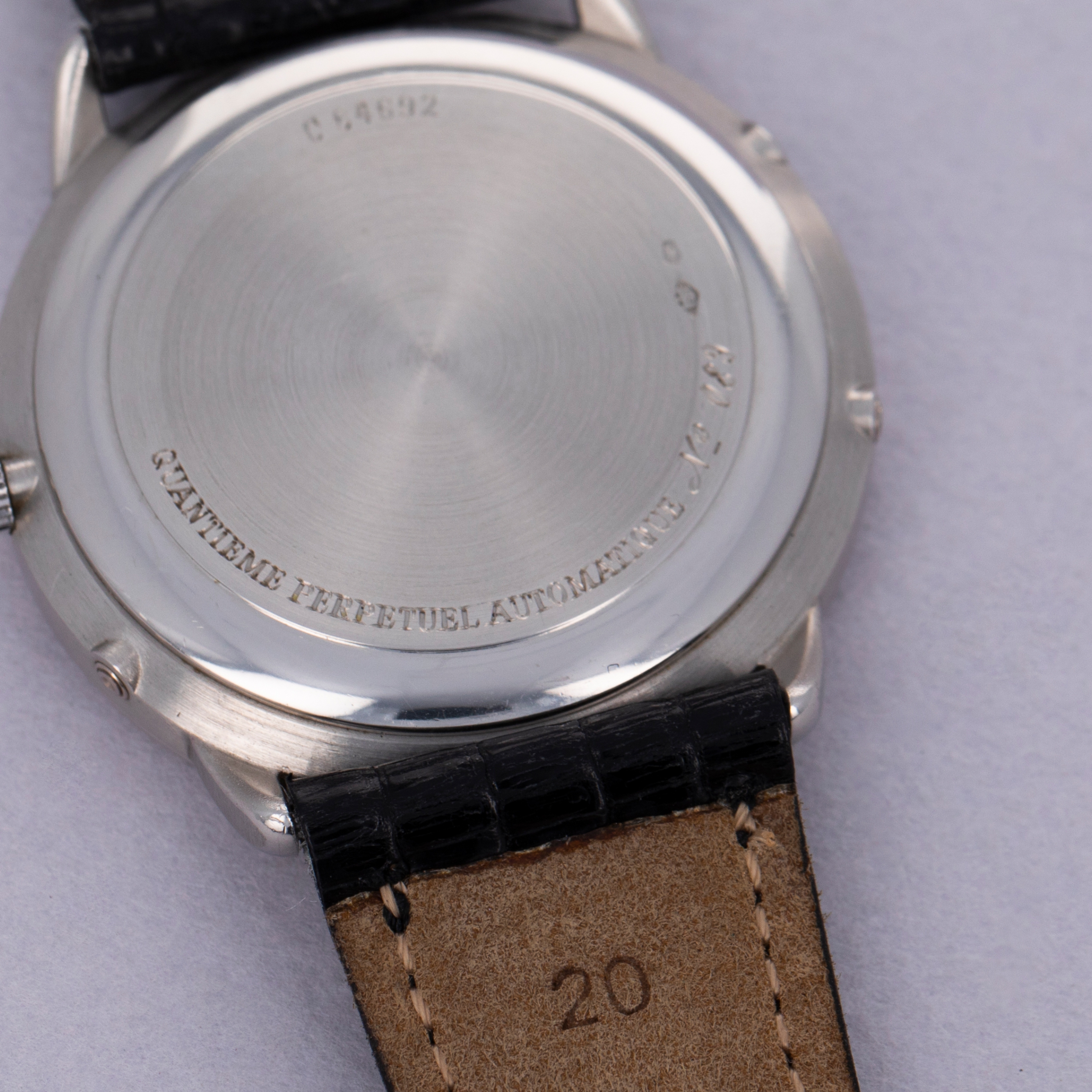 Measuring just 7.55mm thick, the ref. 25657's svelte 36mm platinum case is an astonishing achievement given the complexity of its movement for the time it was released.