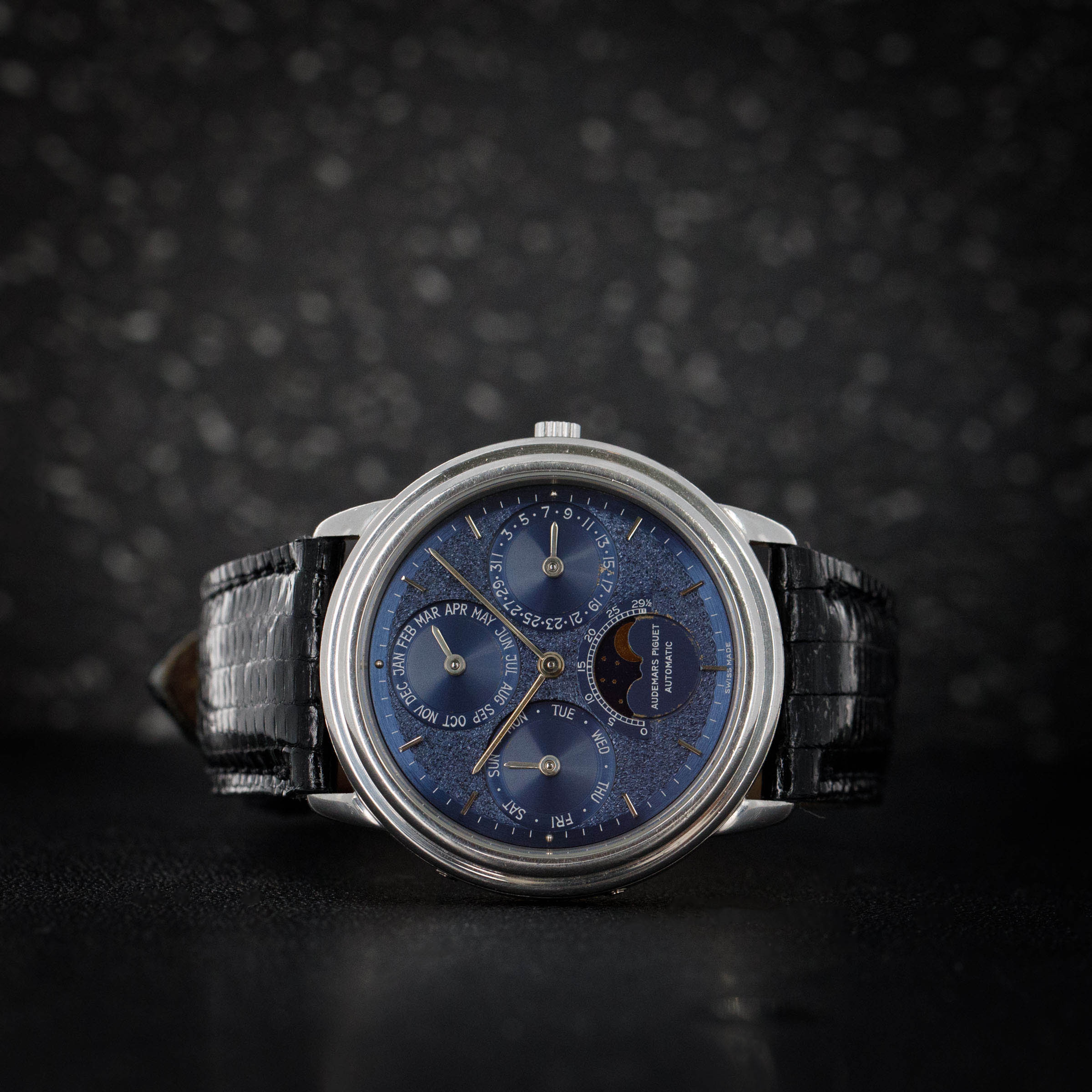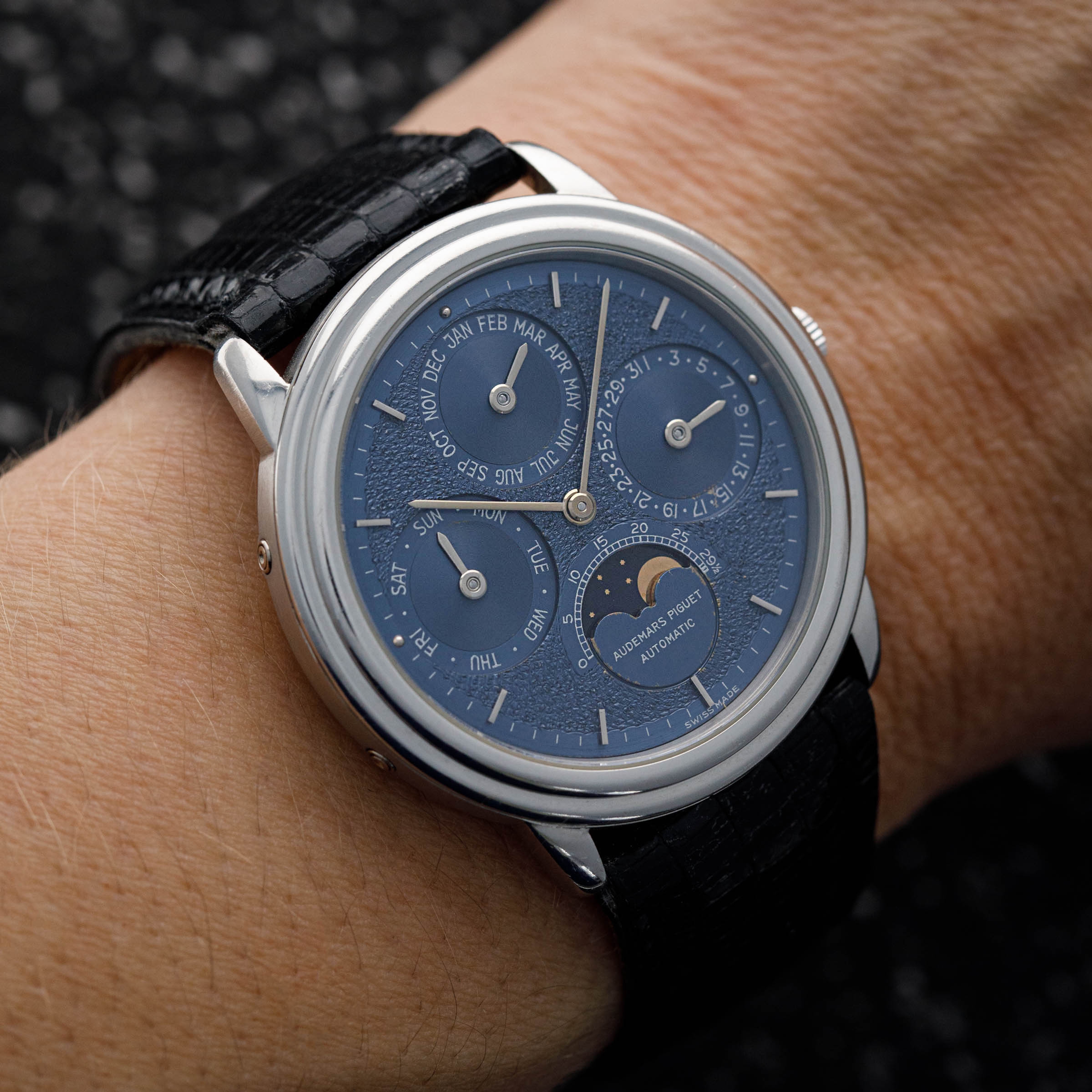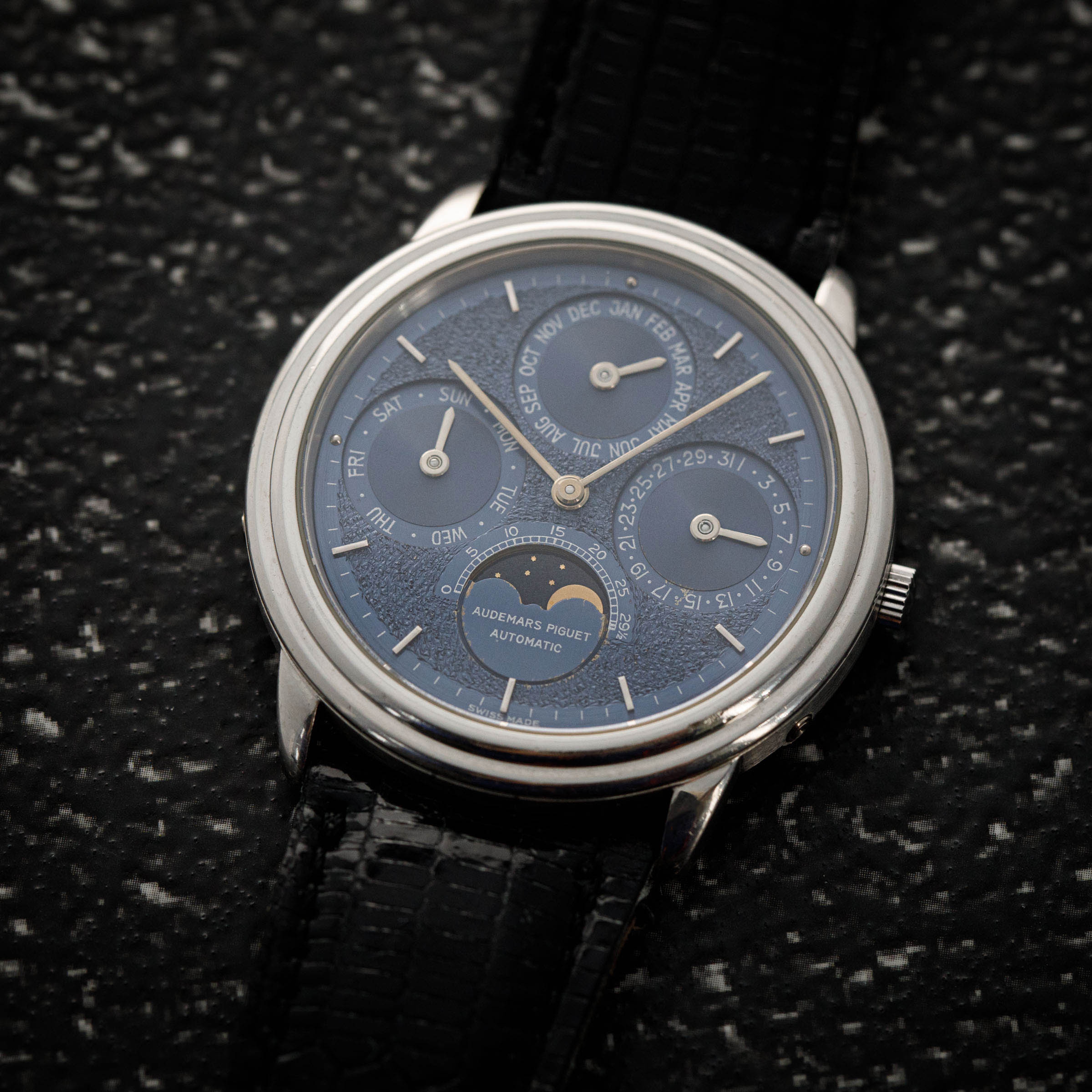 One of the watches to help spur Swiss watchmaking out of the depths of the Quartz Crisis and revive traditional artistry, it is timepieces like the Quantième Perpétuel Automatique ref. 25657 that earned AP its place within the Holy Trinity and made complicated watchmaking appreciated in the 1980s again. Additionally, with its tuscan blue dial and platinum construction, the ref. 25657PT is rarest and the most desirable variant of this iconic collection.