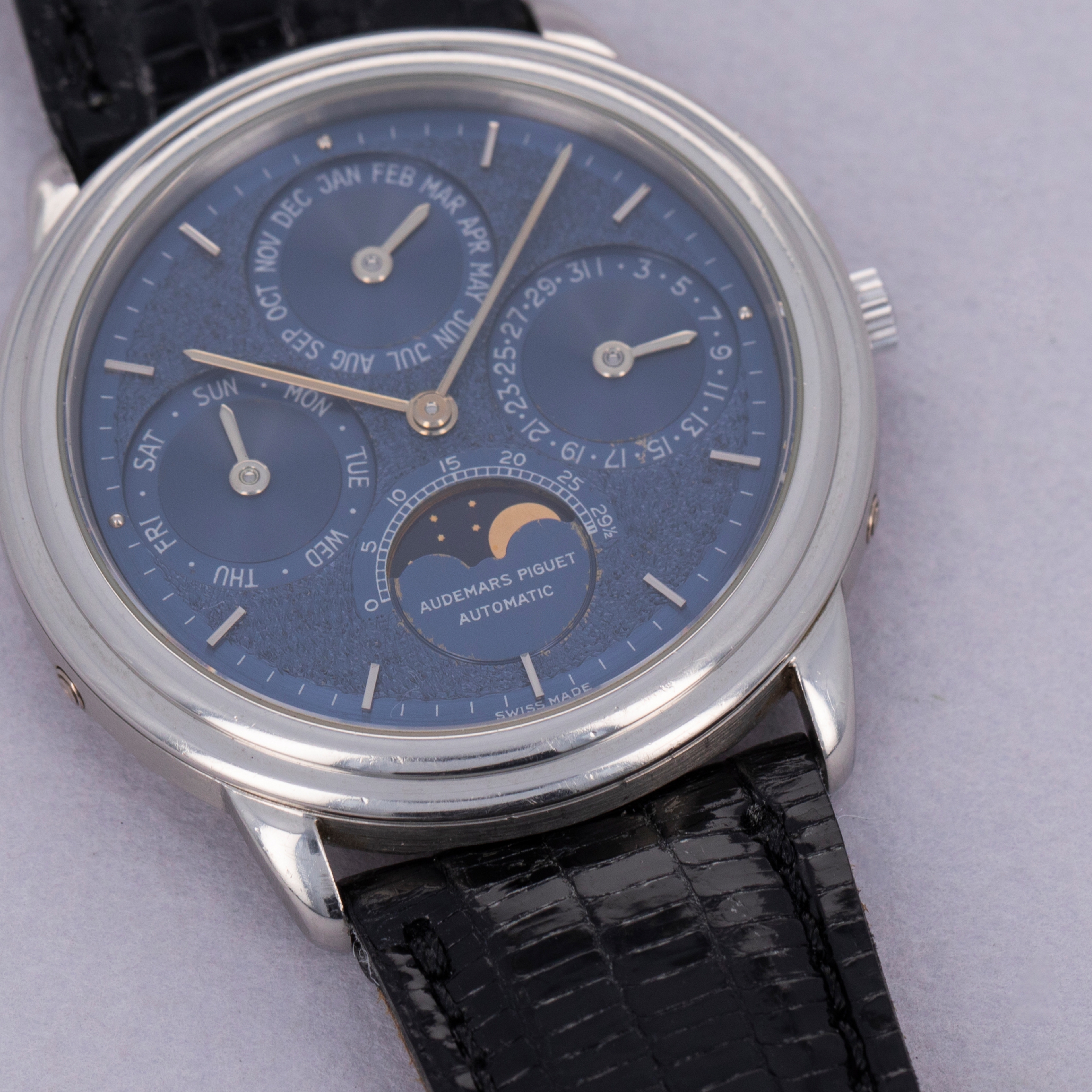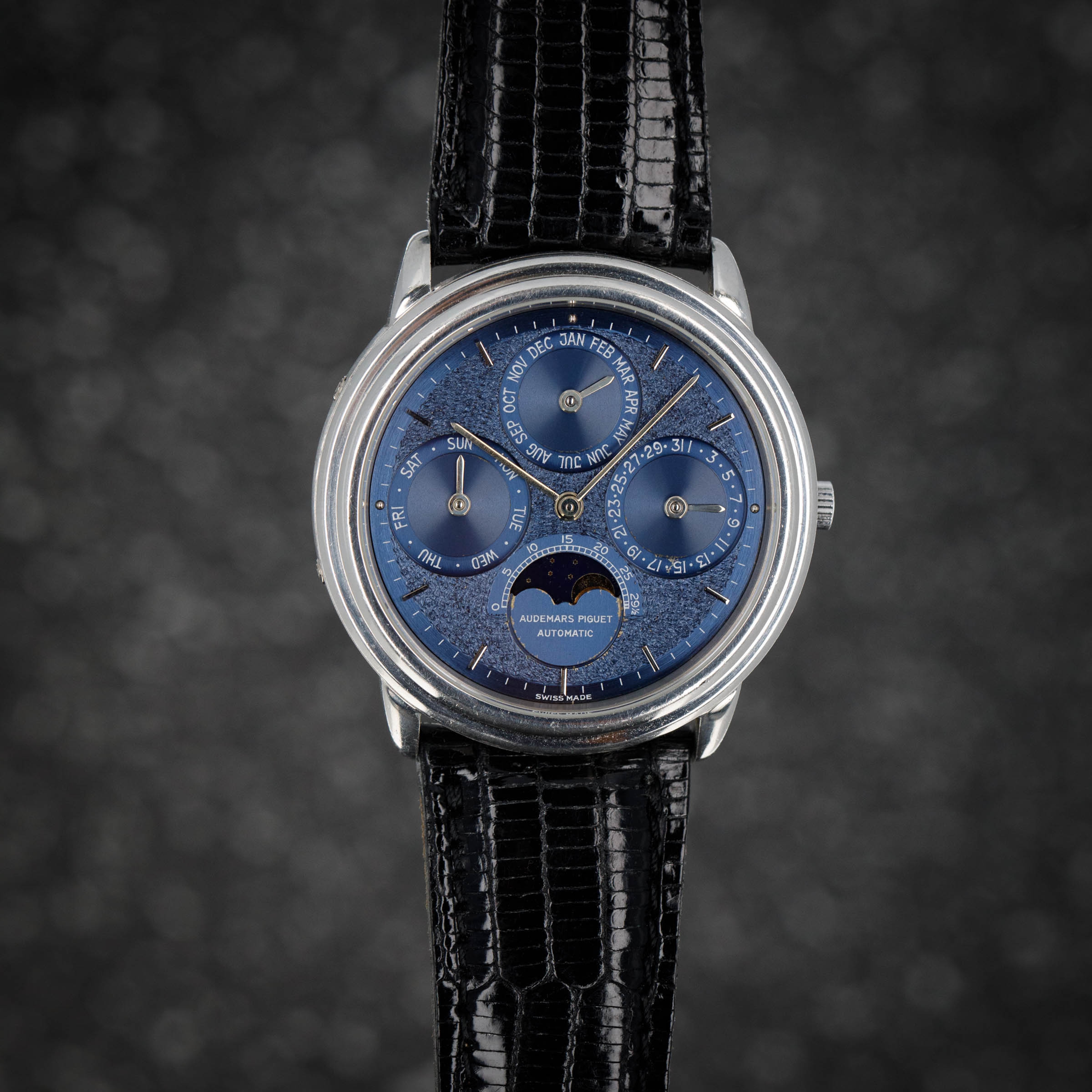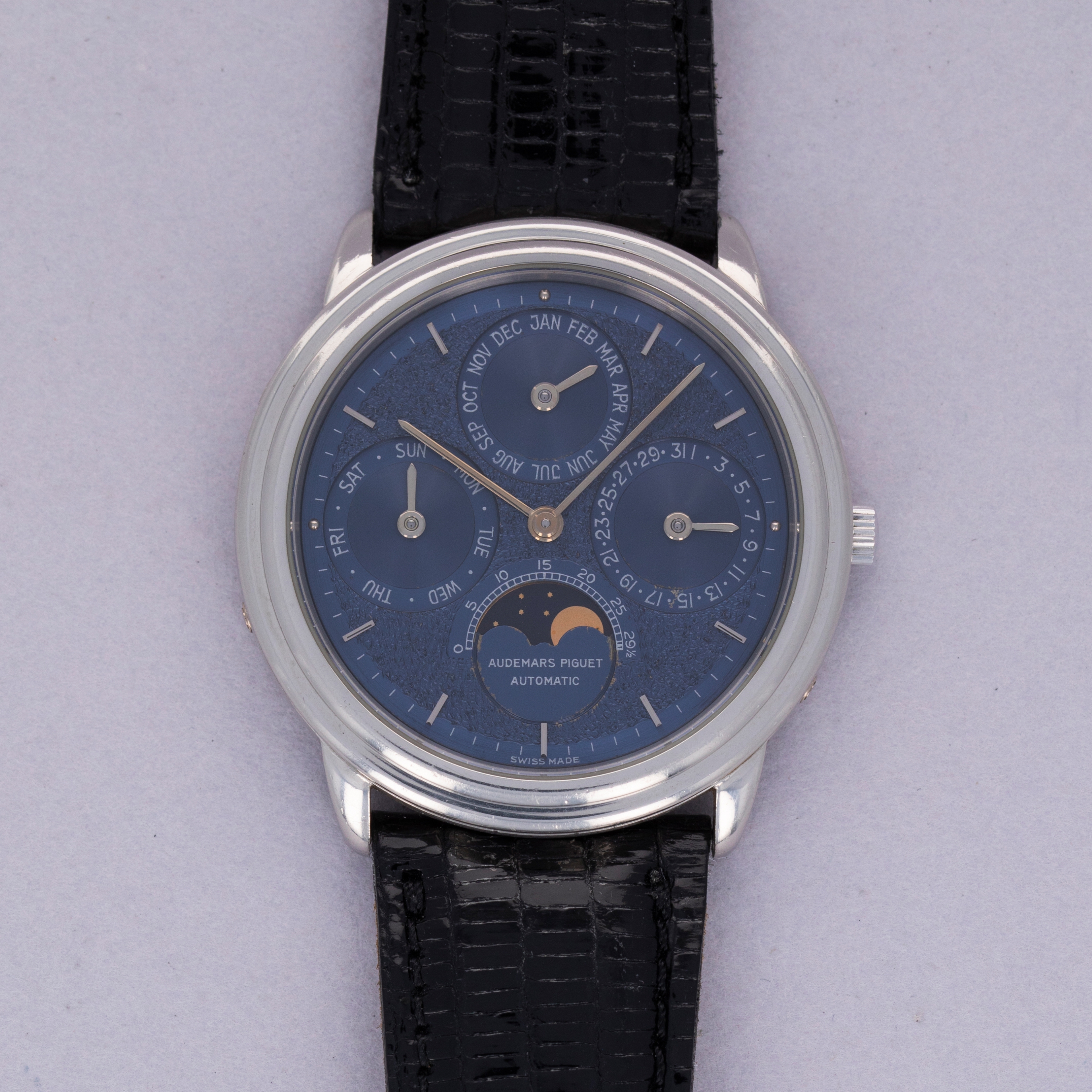 One of the watches to help spur Swiss watchmaking out of the depths of the Quartz Crisis and revive traditional artistry, it is timepieces like the Quantième Perpétuel Automatique ref. 25657 that earned AP its place within the Holy Trinity and made complicated watchmaking appreciated in the 1980s again. Additionally, with its tuscan blue dial and platinum construction, the ref. 25657PT is rarest and the most desirable variant of this iconic collection.