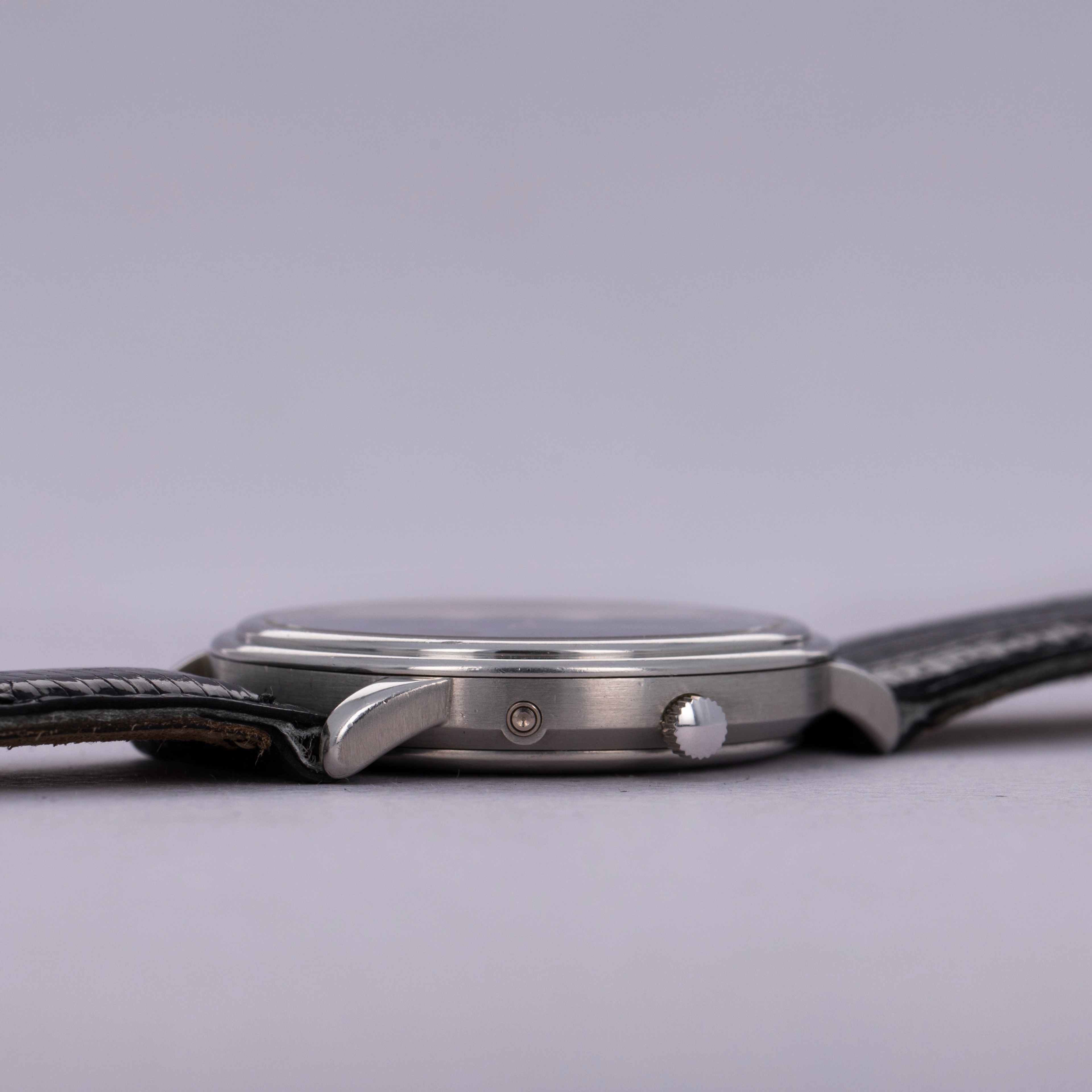 Watch is in excellent overall condition. Case exhibits wear on the polished bezel, with some fine scratches and marks visible. There are similar marks found on the brushed case sides of the watch. Caseback engravings are crisp and fully legible. The hallmarks remain sharp and well defined. The "Tuscan" finish dial is in excellent condition. There are signs of oxidation on the surface, most visible on the edge around the moonphase and around the 15 to 16th on the days of the month subdial.