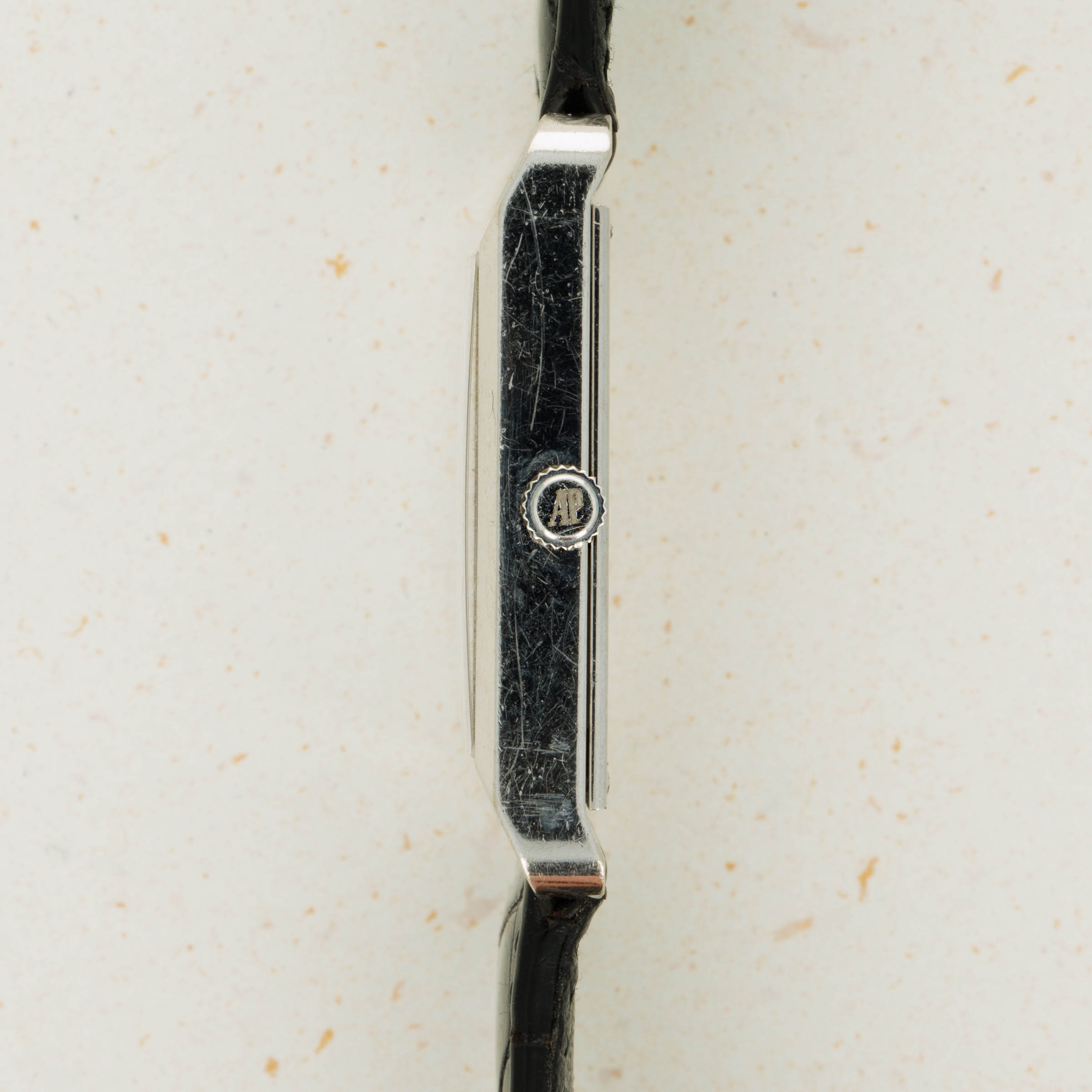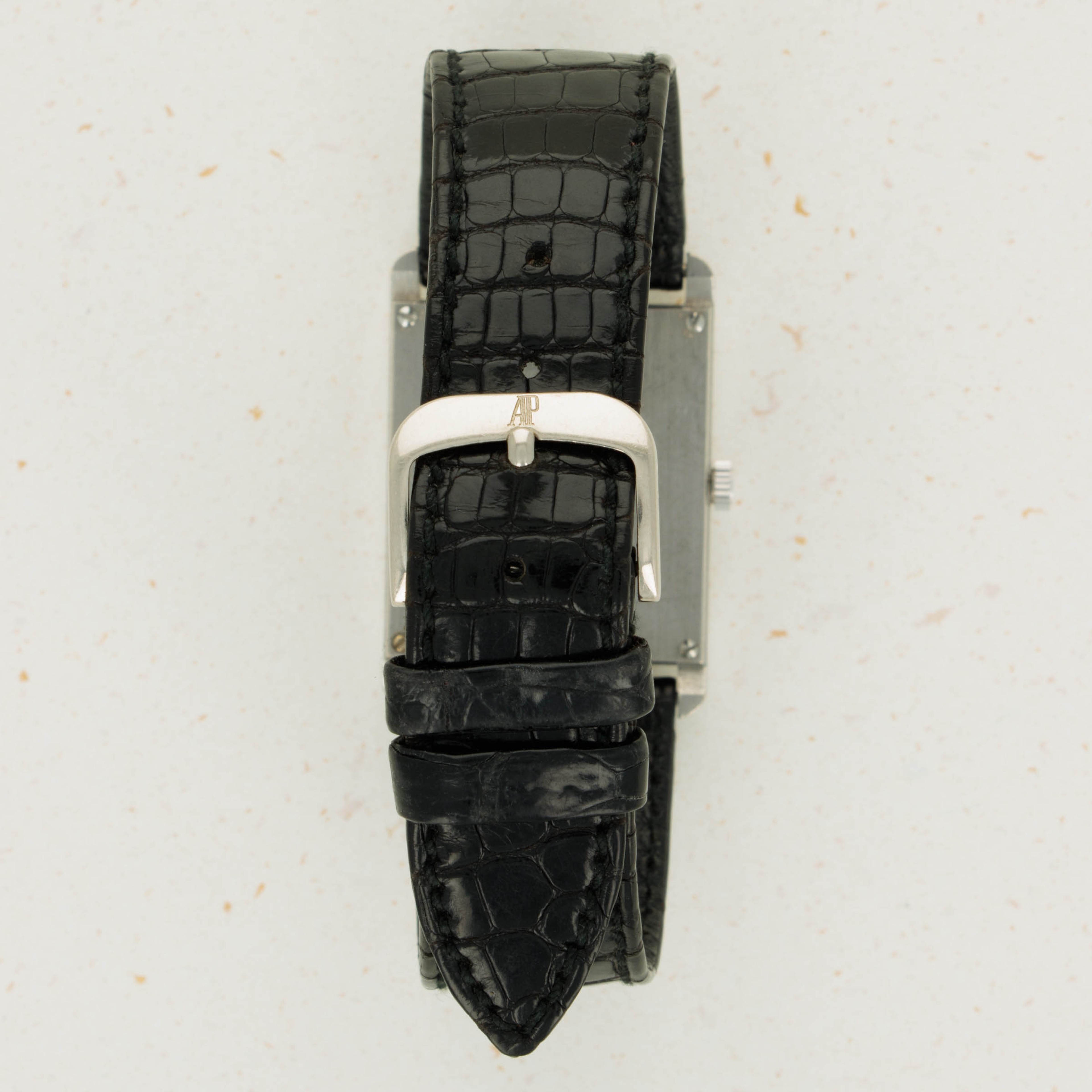 Watch is in overall very good condition. Case exhibits scratches along the surface. Most are superficial but there is one small nick on the 12 o'clock case side. Caseback has minor scratches but the hallmarks are crisp and visible. The screw holes have minor wear. Watch comes with original AP WG buckle.