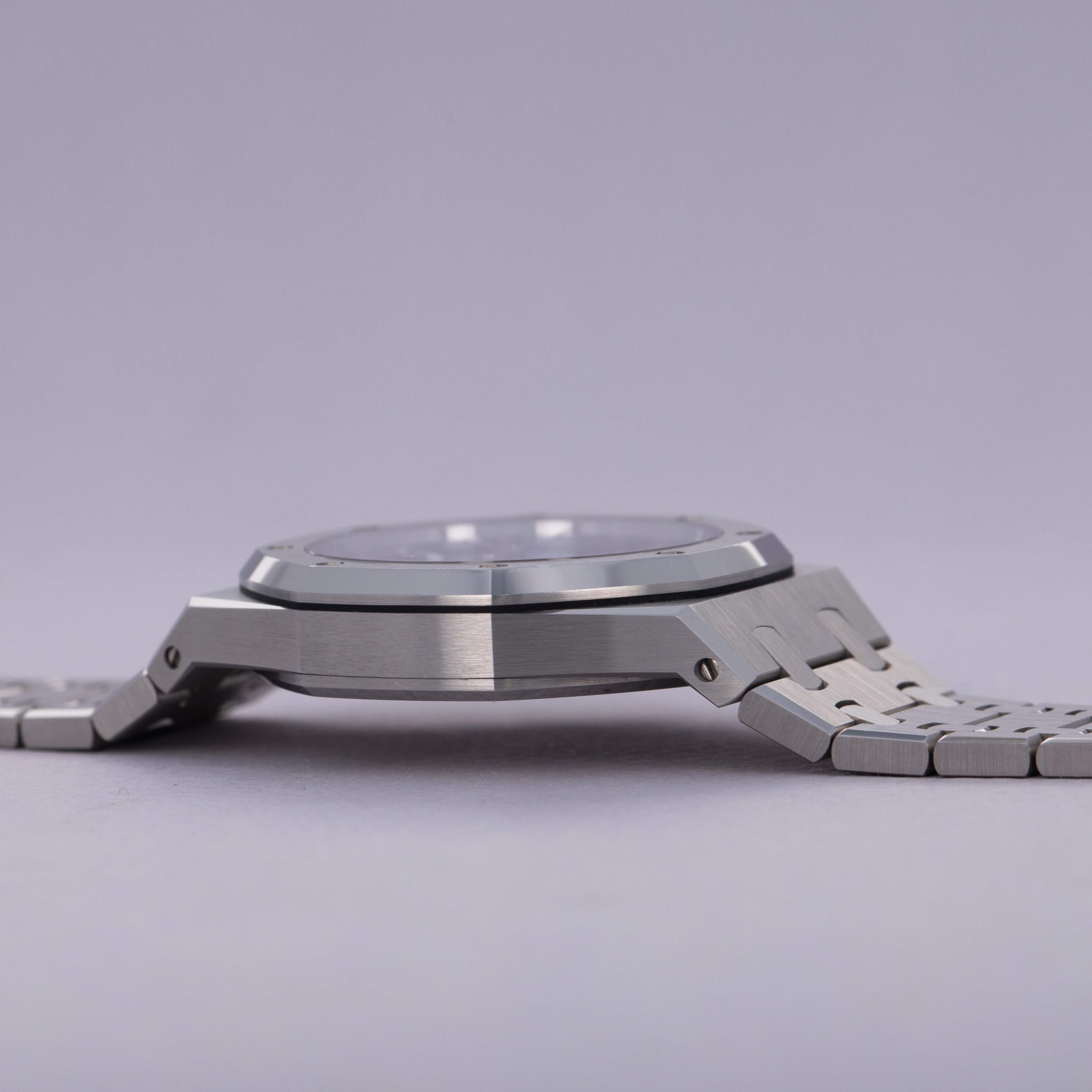 Measuring in a perfectly palatable 37mm in diameter, the ref. 15550ST fits an enormous range of wrists as a truly mid-sized unisex bracelet watch.