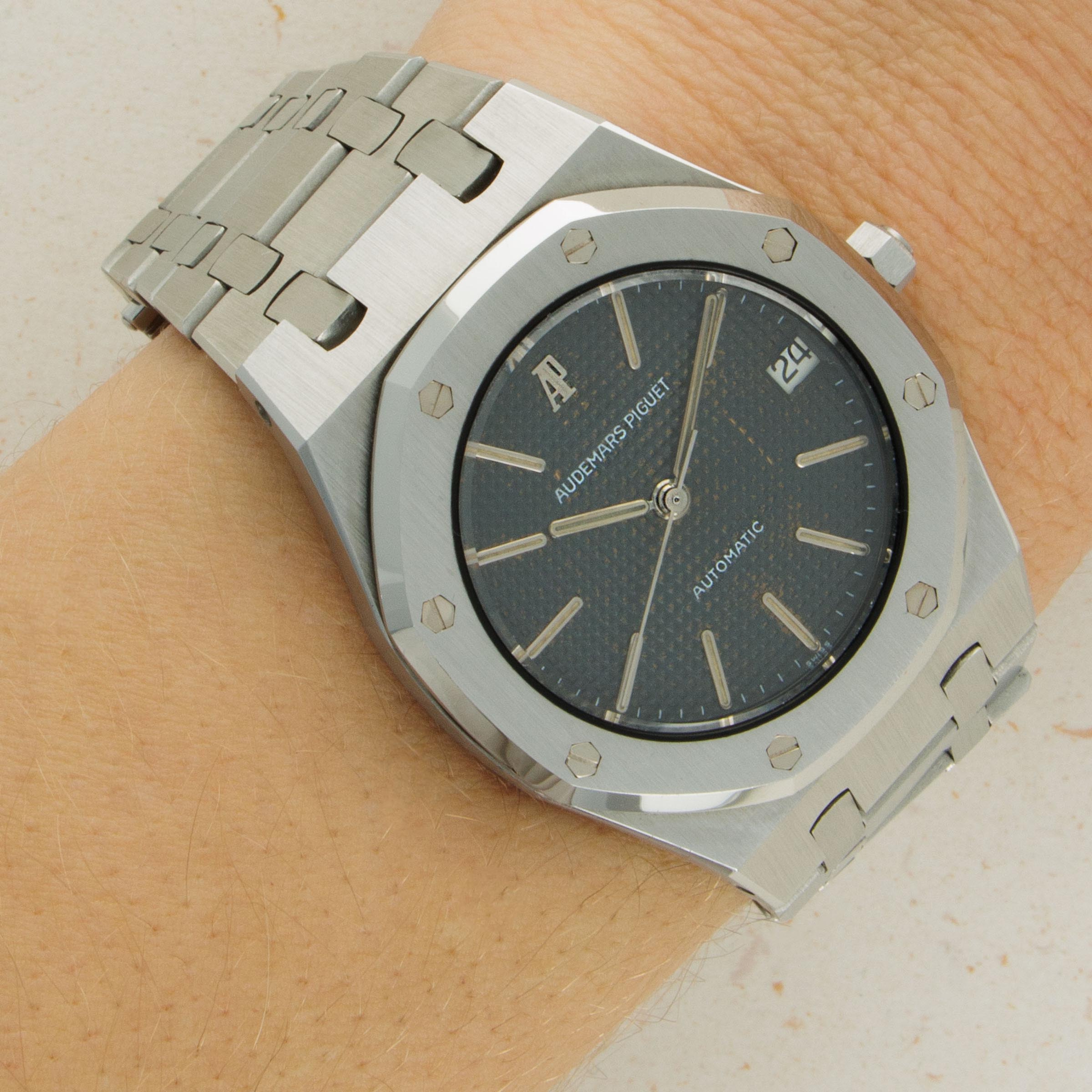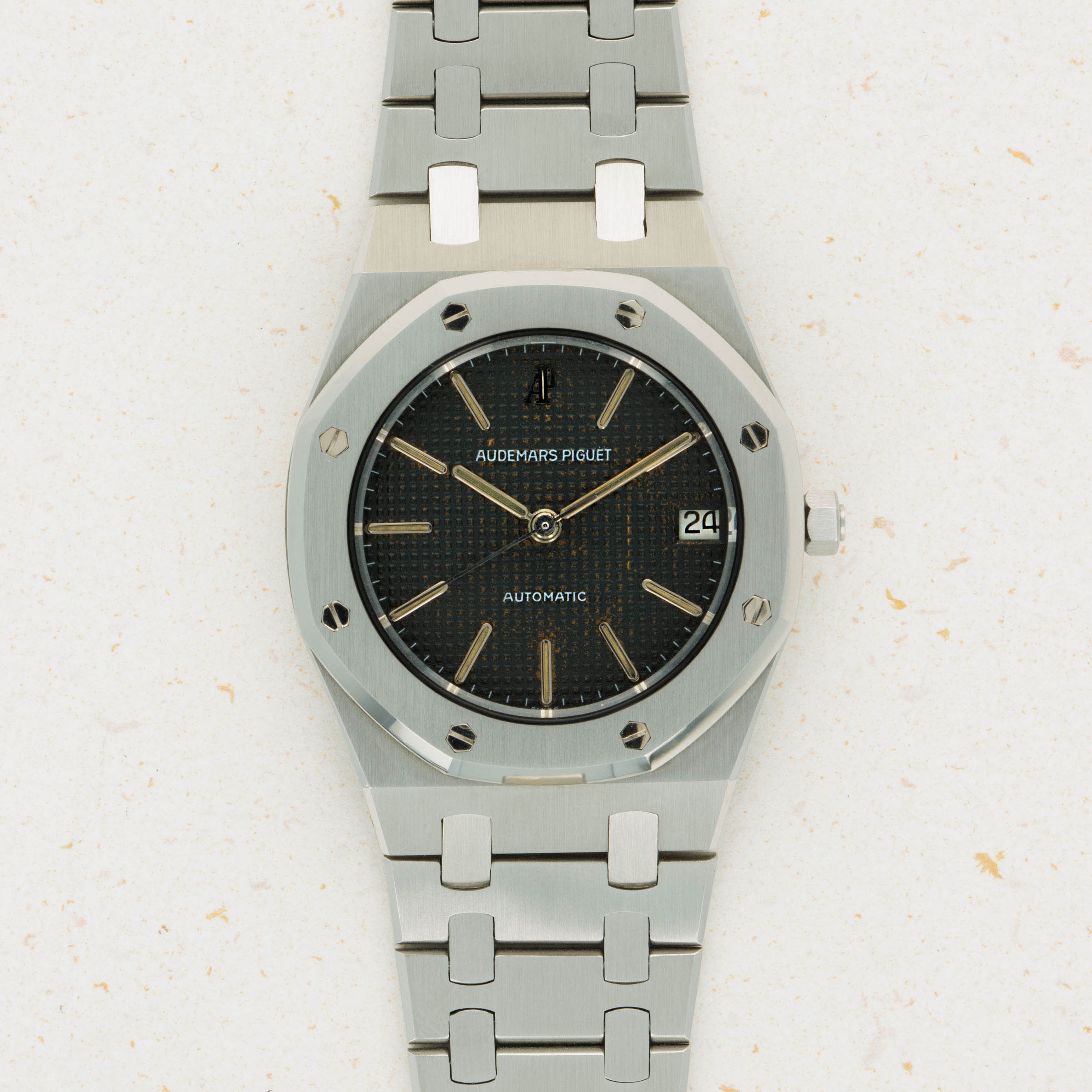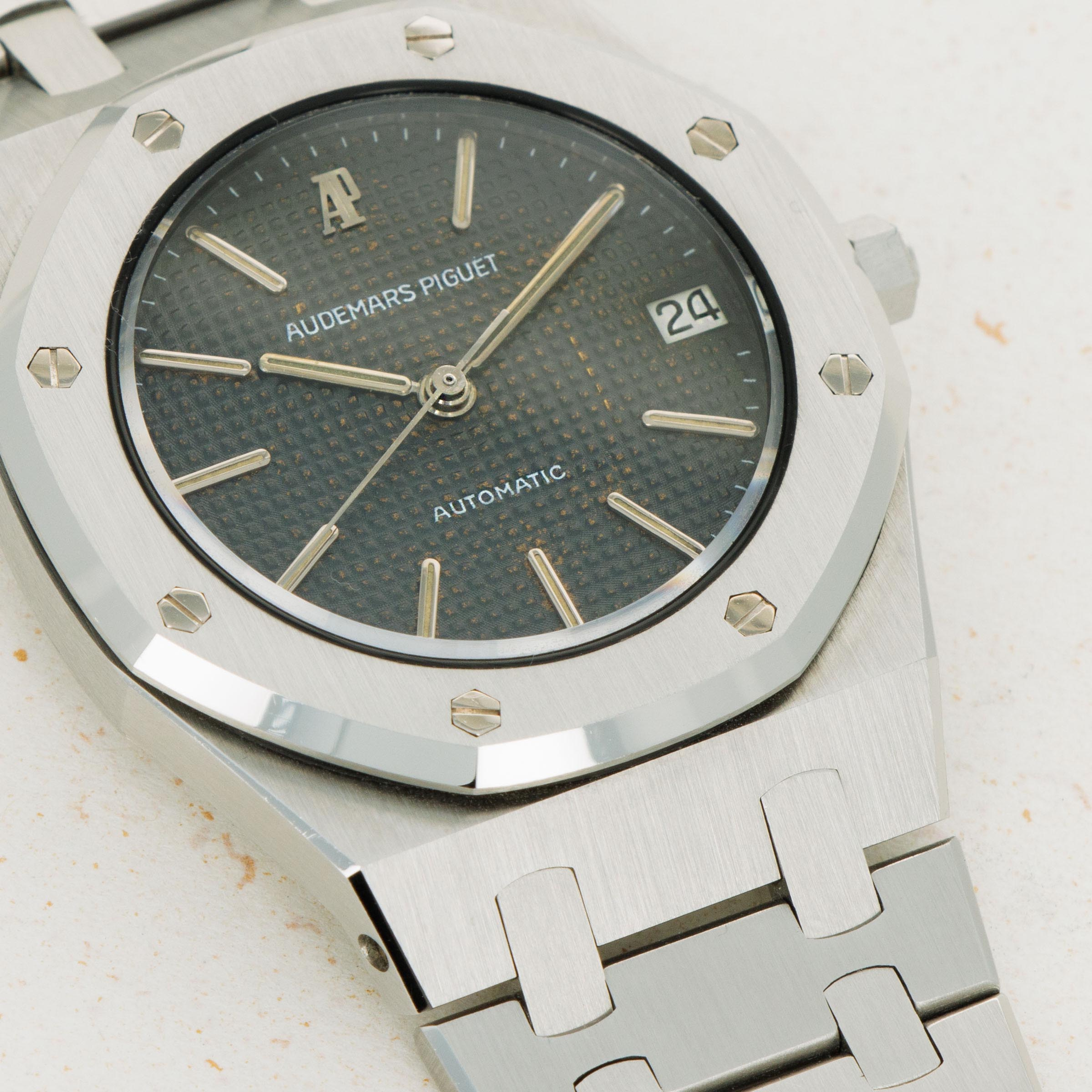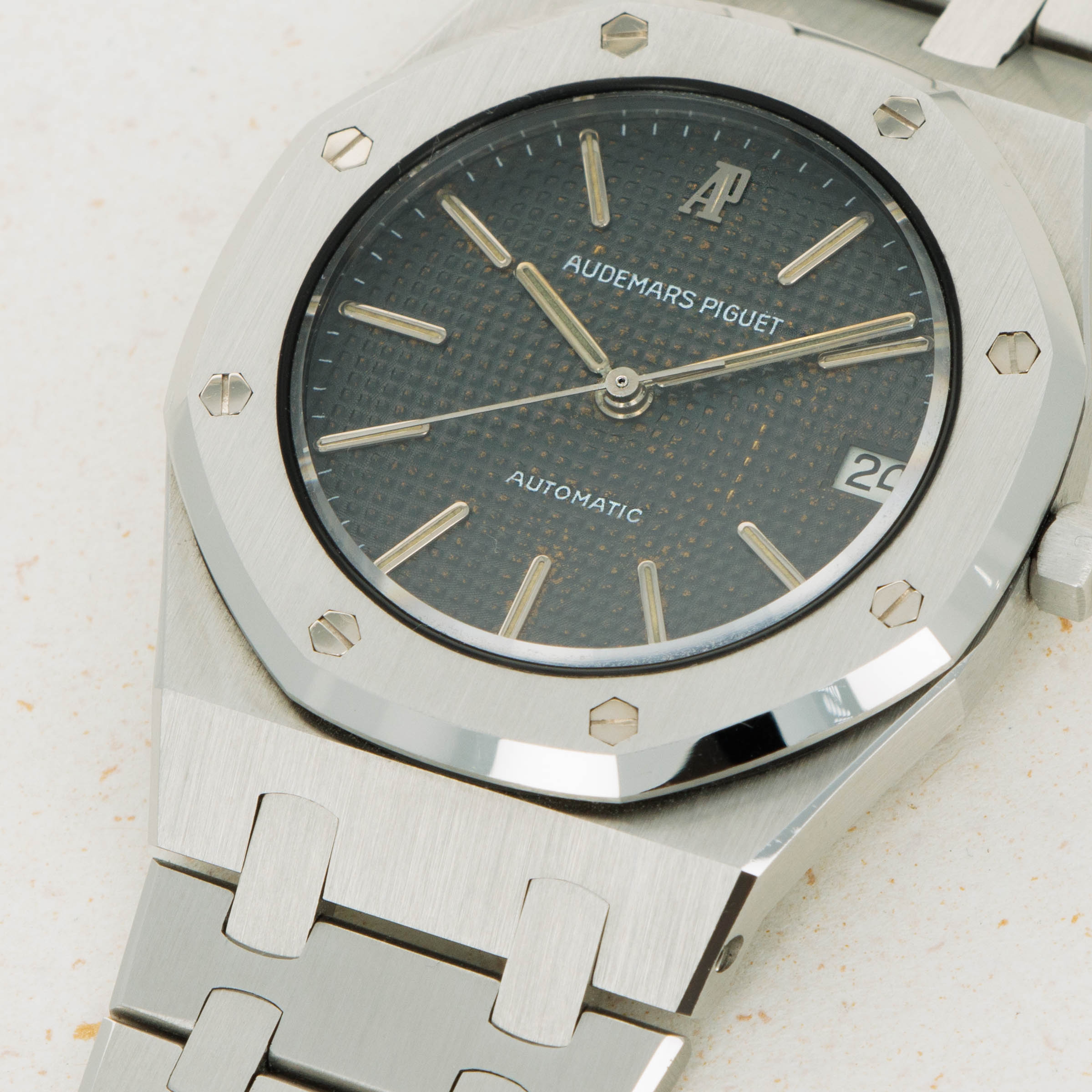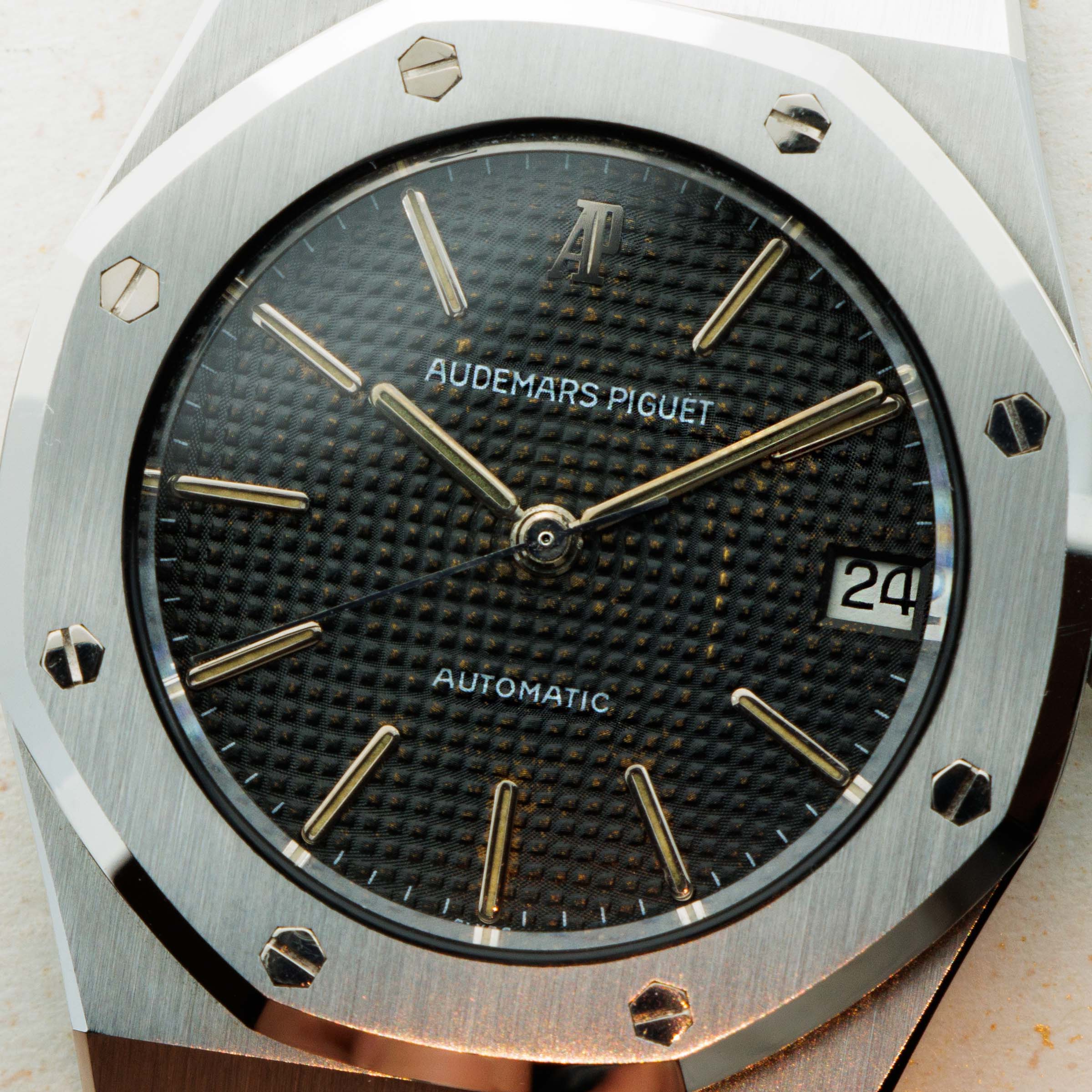 Boasting the Royal Oak's signature 'Petite Tapisserie' dial, this example's dial sports an AP logo with a beautiful patina and wonderfully aged lume in its hour markers and hands.