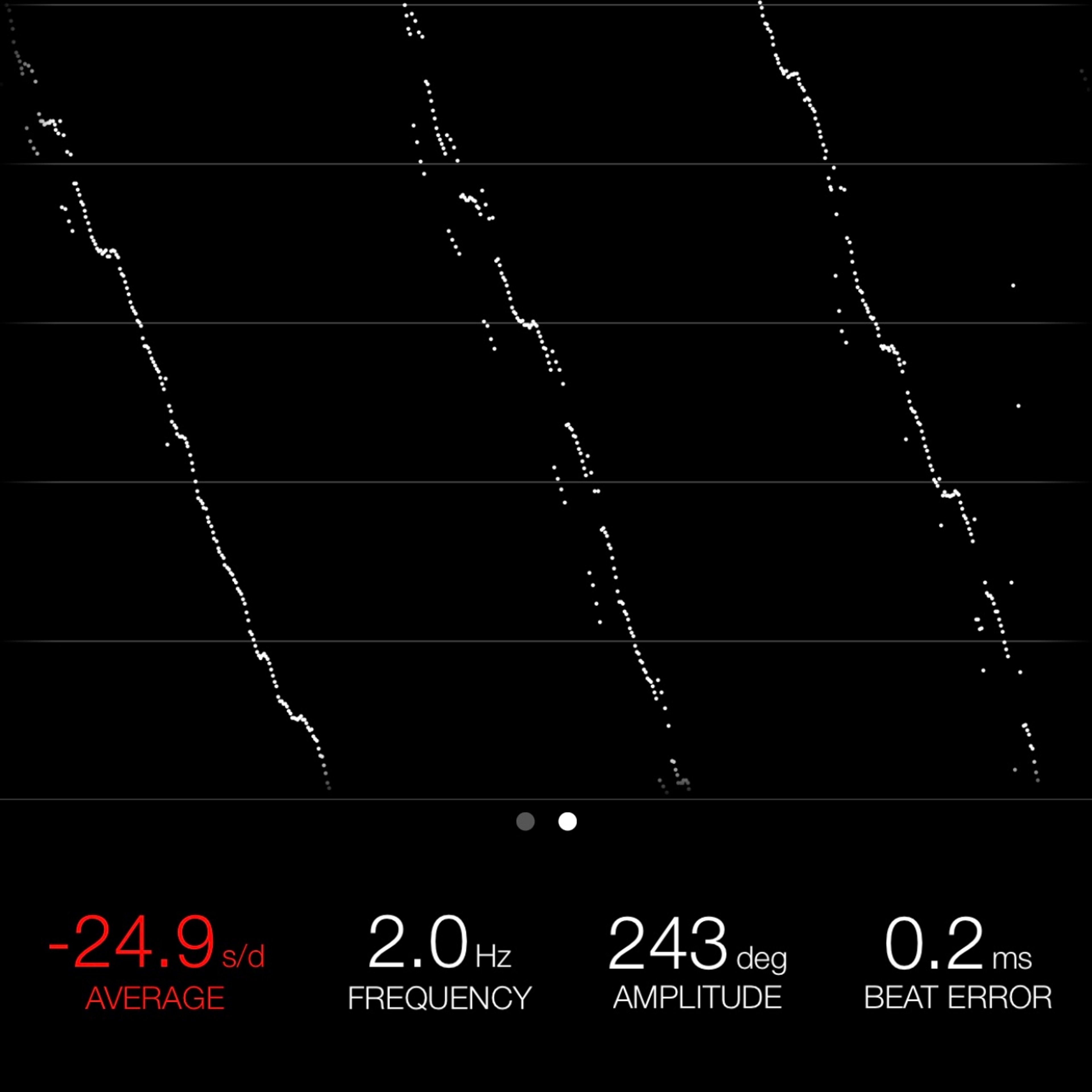 This reading was taken (crown down) with a ONEOF Accuracy Boutique Edition timing machine at time of cataloging. It is provided as a courtesy only, and shall not be construed as a warranty or guarantee of any kind. Please refer to our terms and conditions of sale for more information.