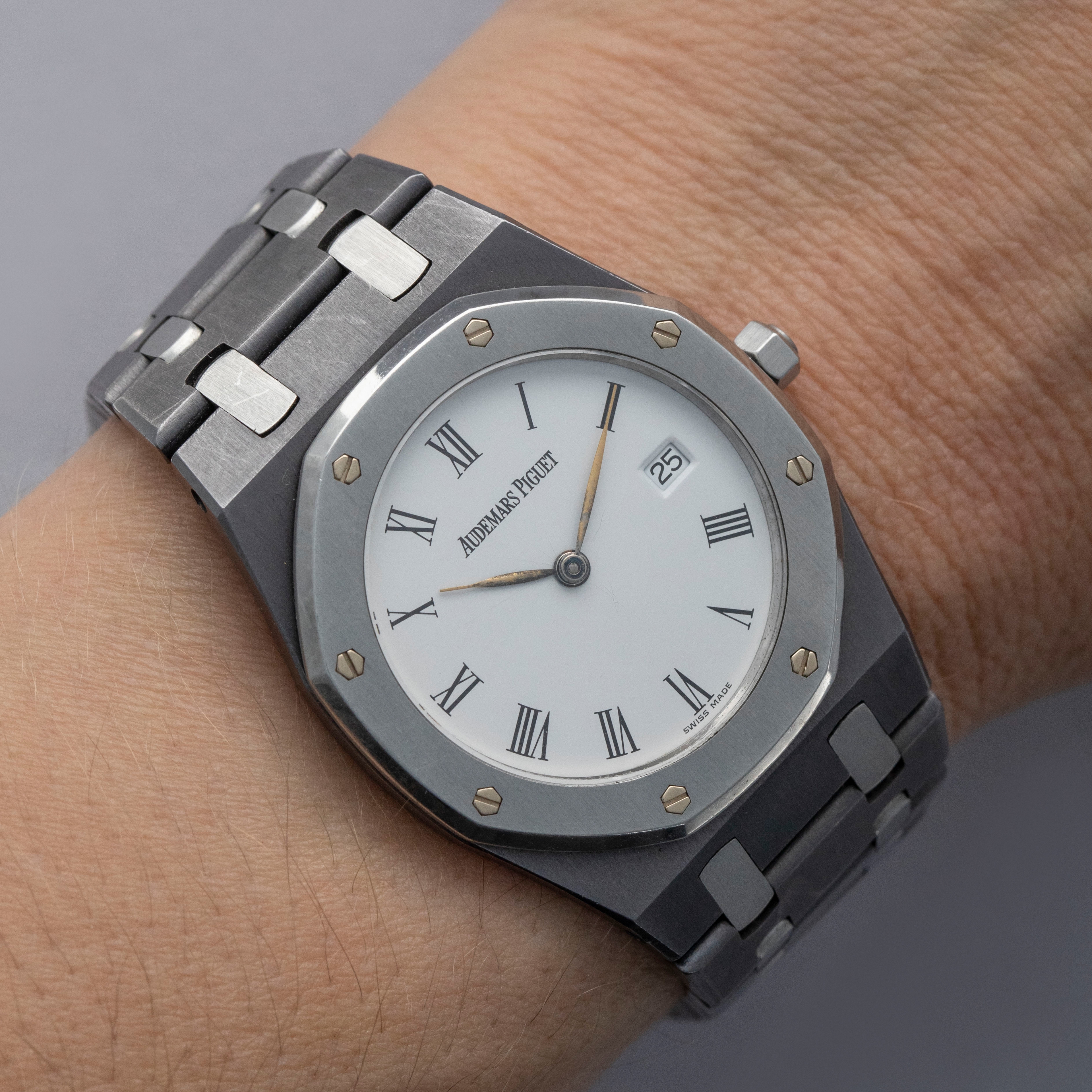 Thanks to the Royal Oak's already thin design and the ref. 56175TT's quartz movement, this Royal Oak has an extremely flat profile that sits incredibly low on the wrist.
