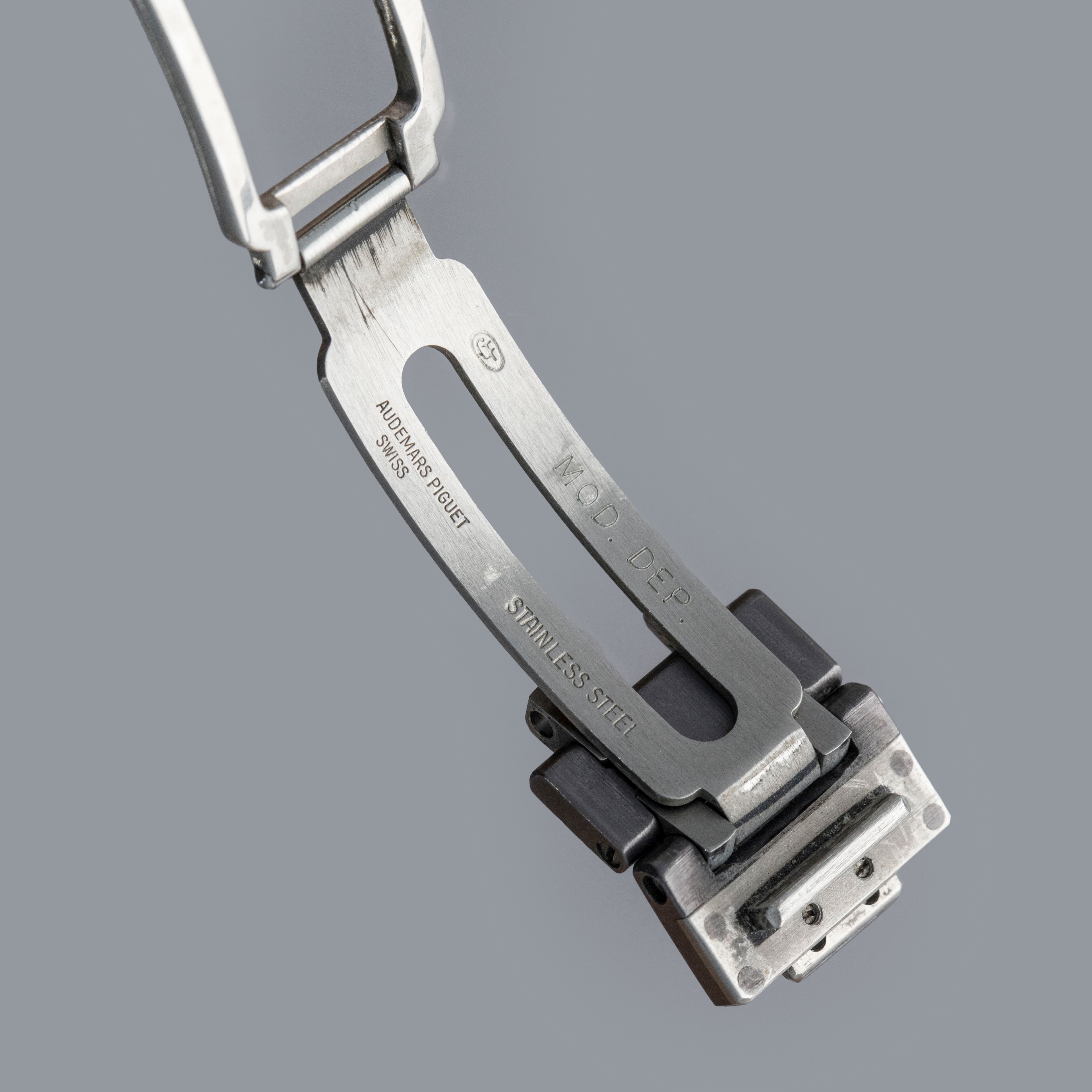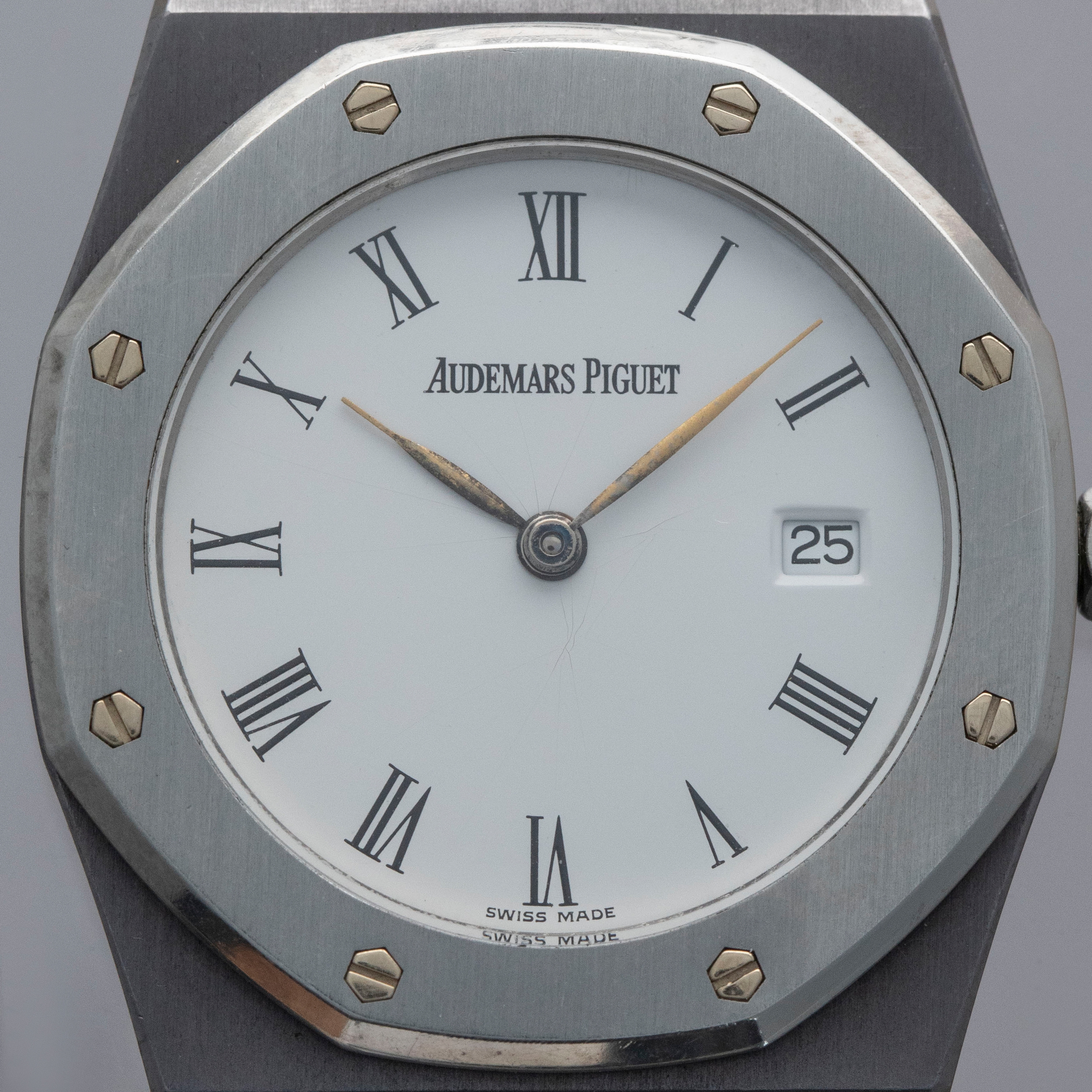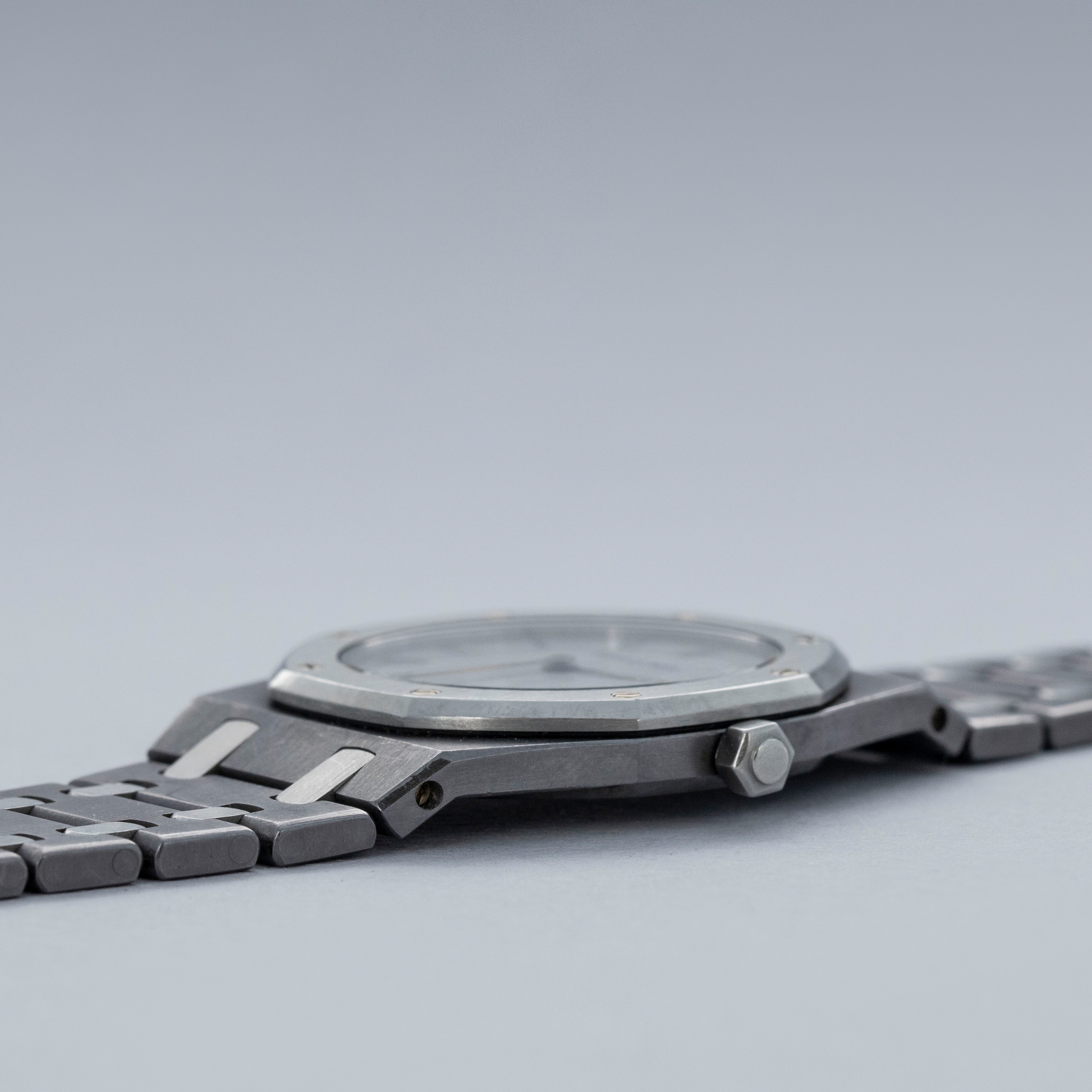 Released in the 90s, the AP Royal Oak ref. 56175 is a wonderful example of the Royal Oak's ability to be sized up or down depending on the customers that AP wanted their watch to cater for. A 33mm diameter timepiece, the ref. 56175 is indeed a scaled-down version of Gerald Genta's iconic design, with every aspect of its construction equally scaled-down so precisely that nothing is out of place. Constructed from tantalum and stainless steel, and powered by a quartz movement, this the ref. 56175TT caters to the original ideology that spurred the Royal Oak's design as an everyday luxury sports watch, but with a twist in that it swaps the Royal Oak's typical stainless steel for a metal seldom seen in watchmaking, and most commonly seen in the aerospace industry. Fitted with a white Roman numeral dial displaying just the time, the Royal Oak ref. 56175 is understated due to its lack of exuberant functions while retaining its iconic design and strong presence on the wrist. Launched as a limited edition variant of the ref. 56175, the ref. 56175TT boasts just 2000 pieces as part of its reference, and so this is a truly rare occasion to add this piece to your collection.