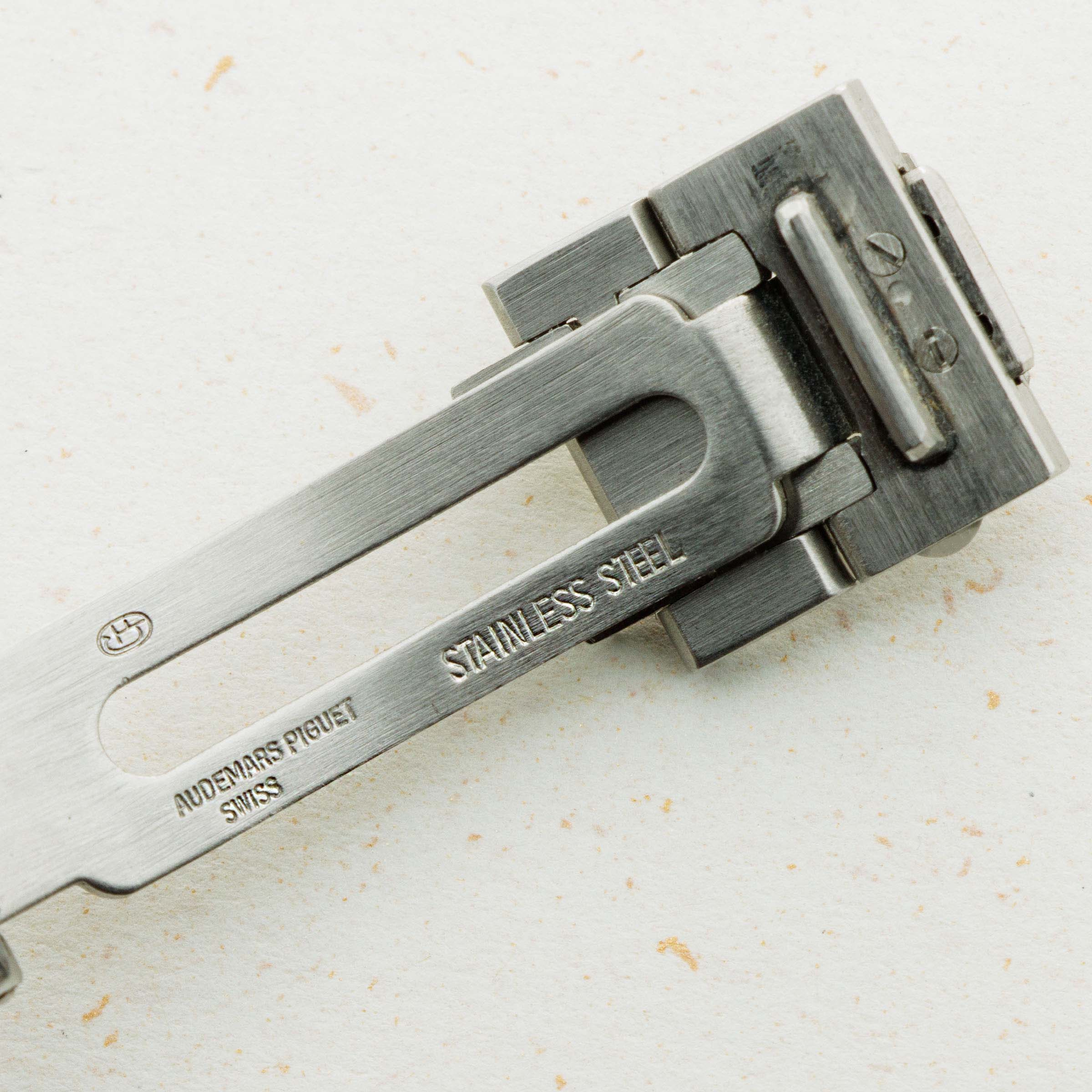 While measuring 33mm in diameter, the ref. 56303ST wears larger on the wrist than one might first think, thanks to the Royal Oak's angular proportions and integrated bracelet.