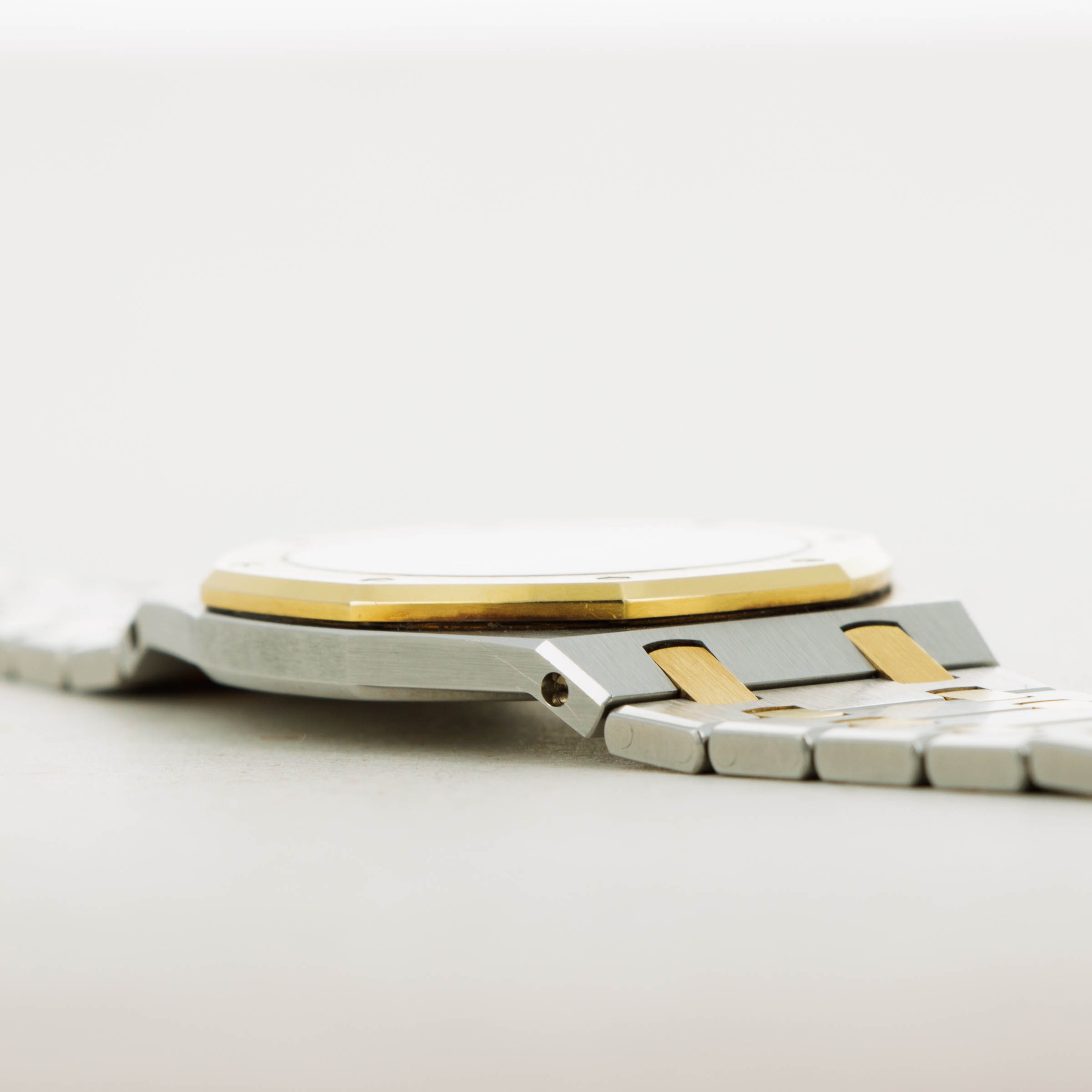 Thanks to its quartz movement, this example takes the Royal Oak's already-thin case and makes it even thinner for a wonderfully comfortable wearing experience.
