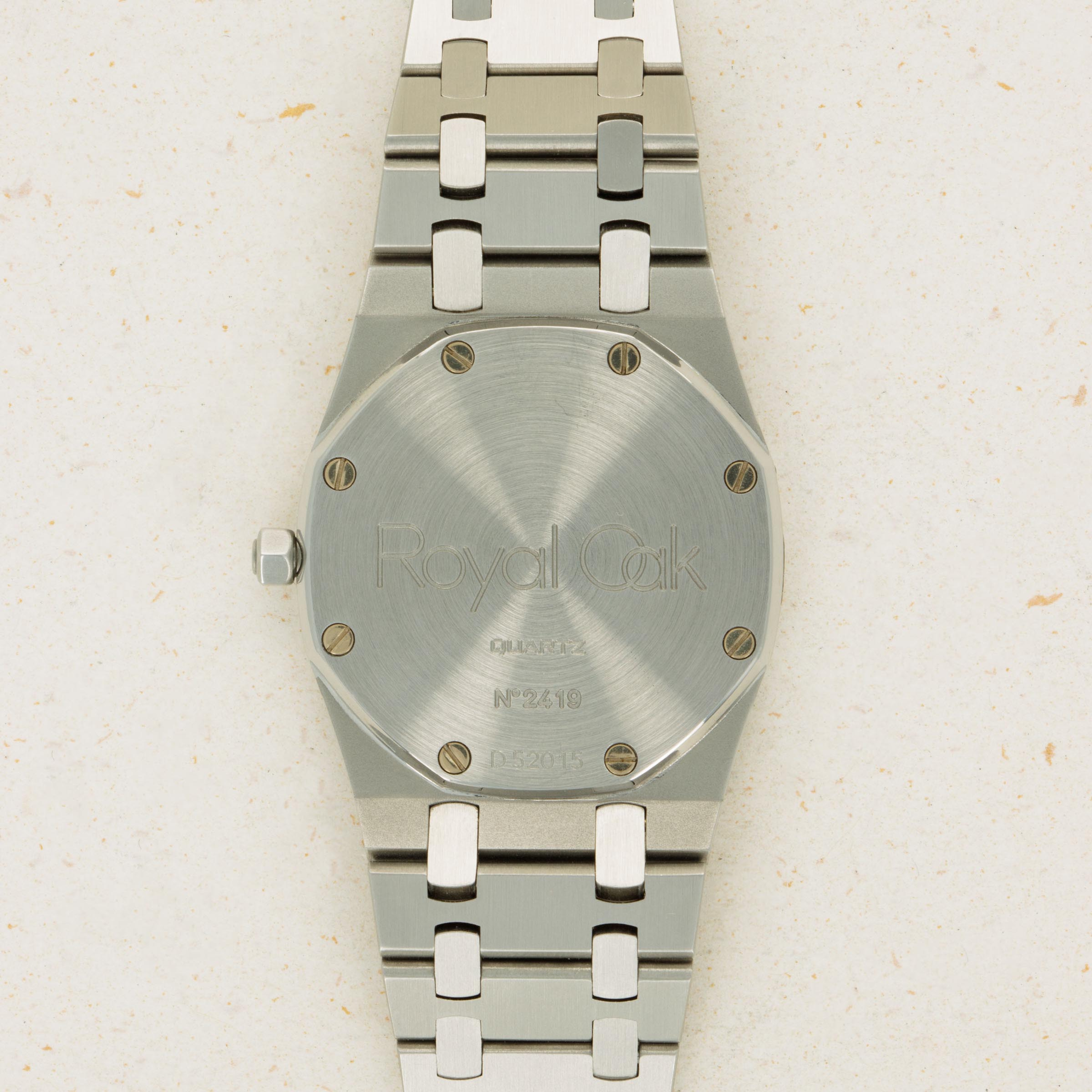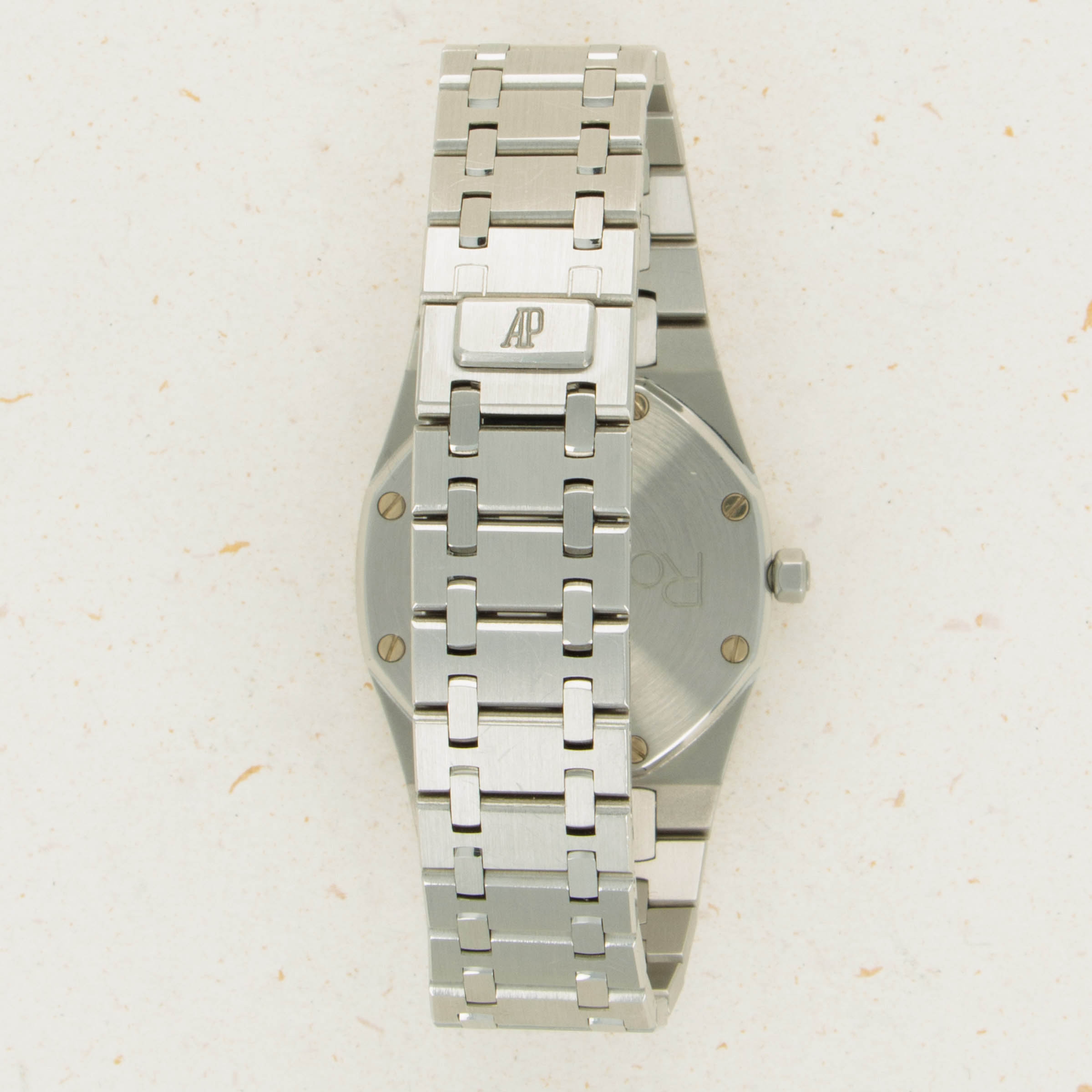 While measuring 33mm in diameter, the ref. 56303ST wears larger on the wrist than one might first think, thanks to the Royal Oak's angular proportions and integrated bracelet.