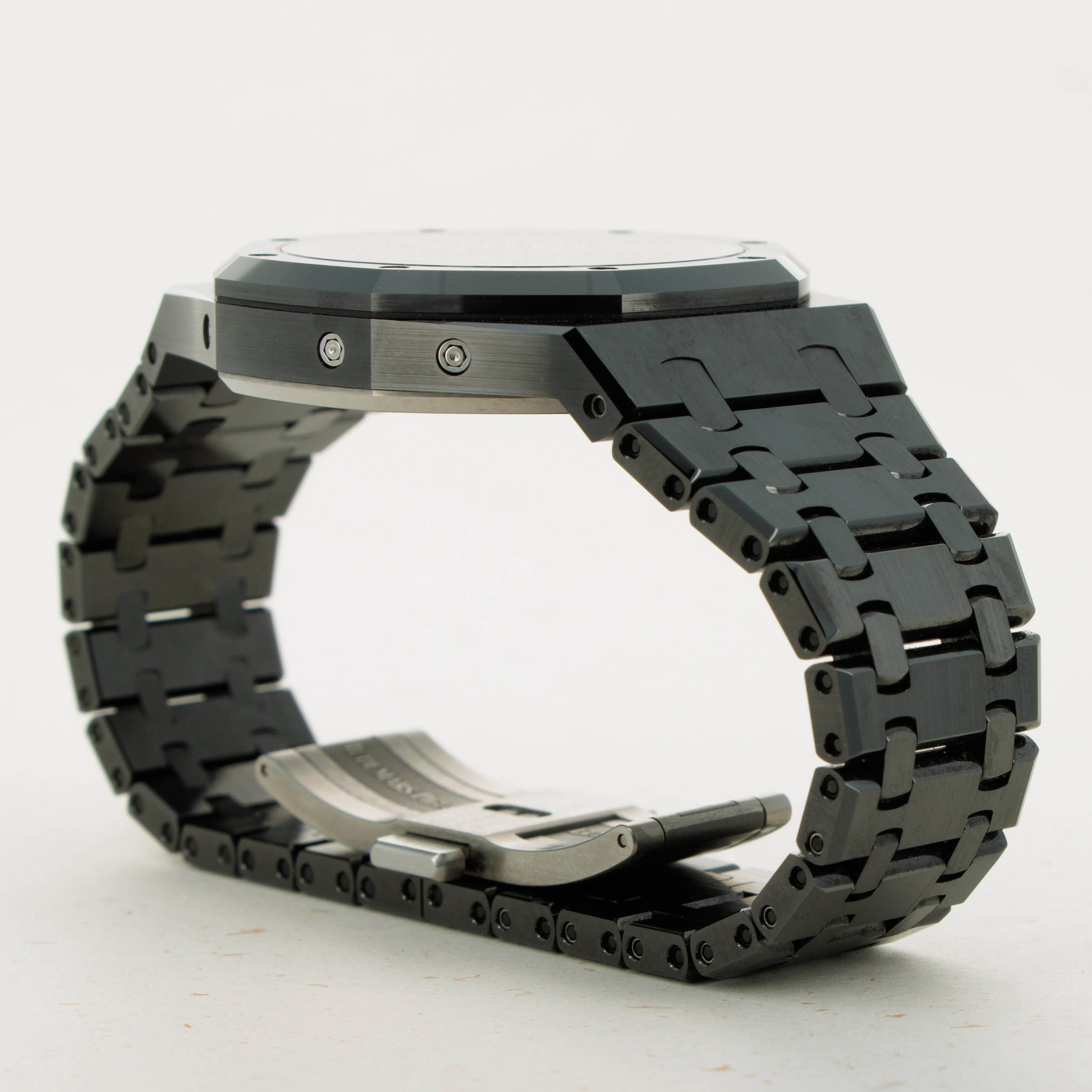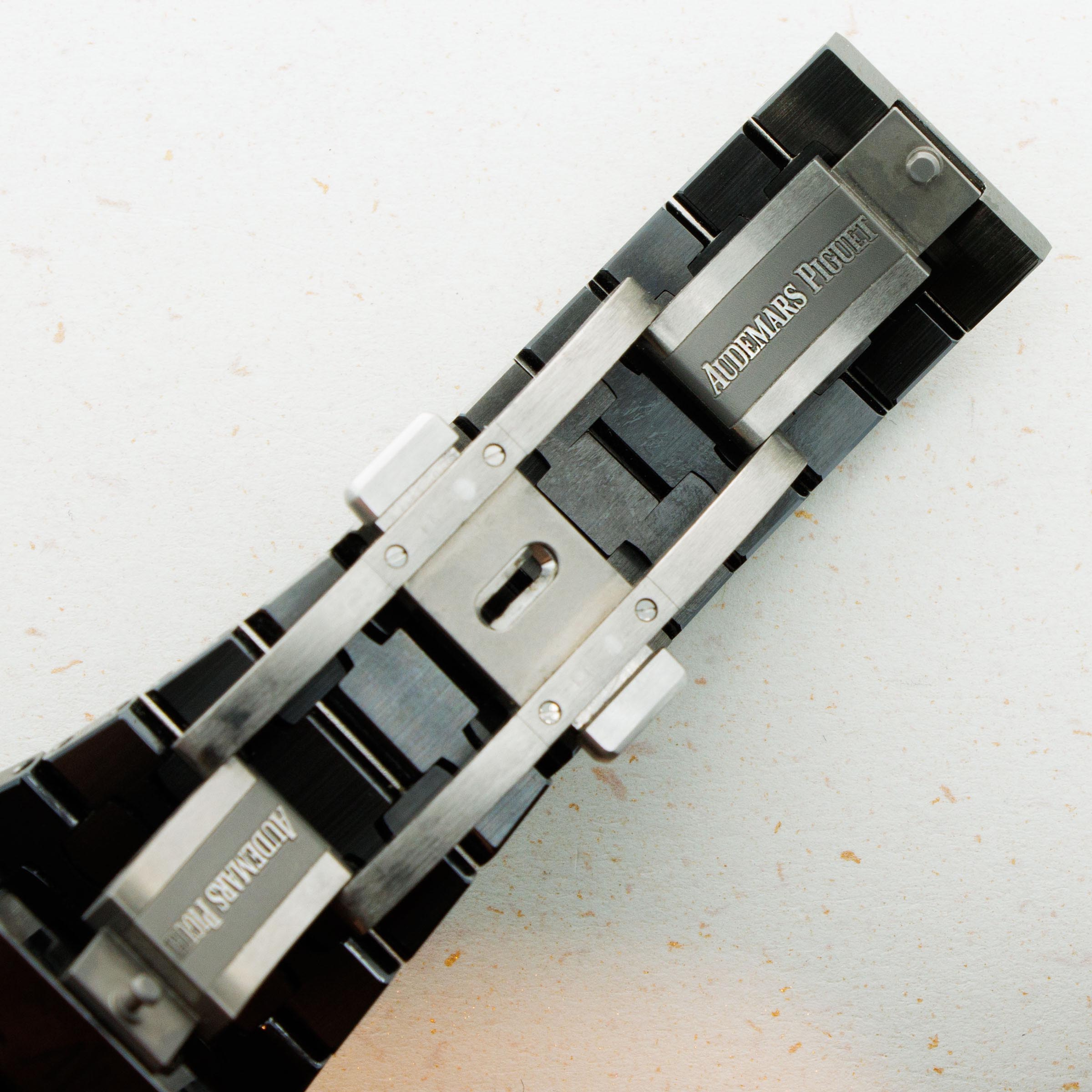 While measuring in at 41mm, the ref. 26579CE wears incredibly light on the wrist thanks to its ceramic construction, which also lends it a timelessly sleek aesthetic.