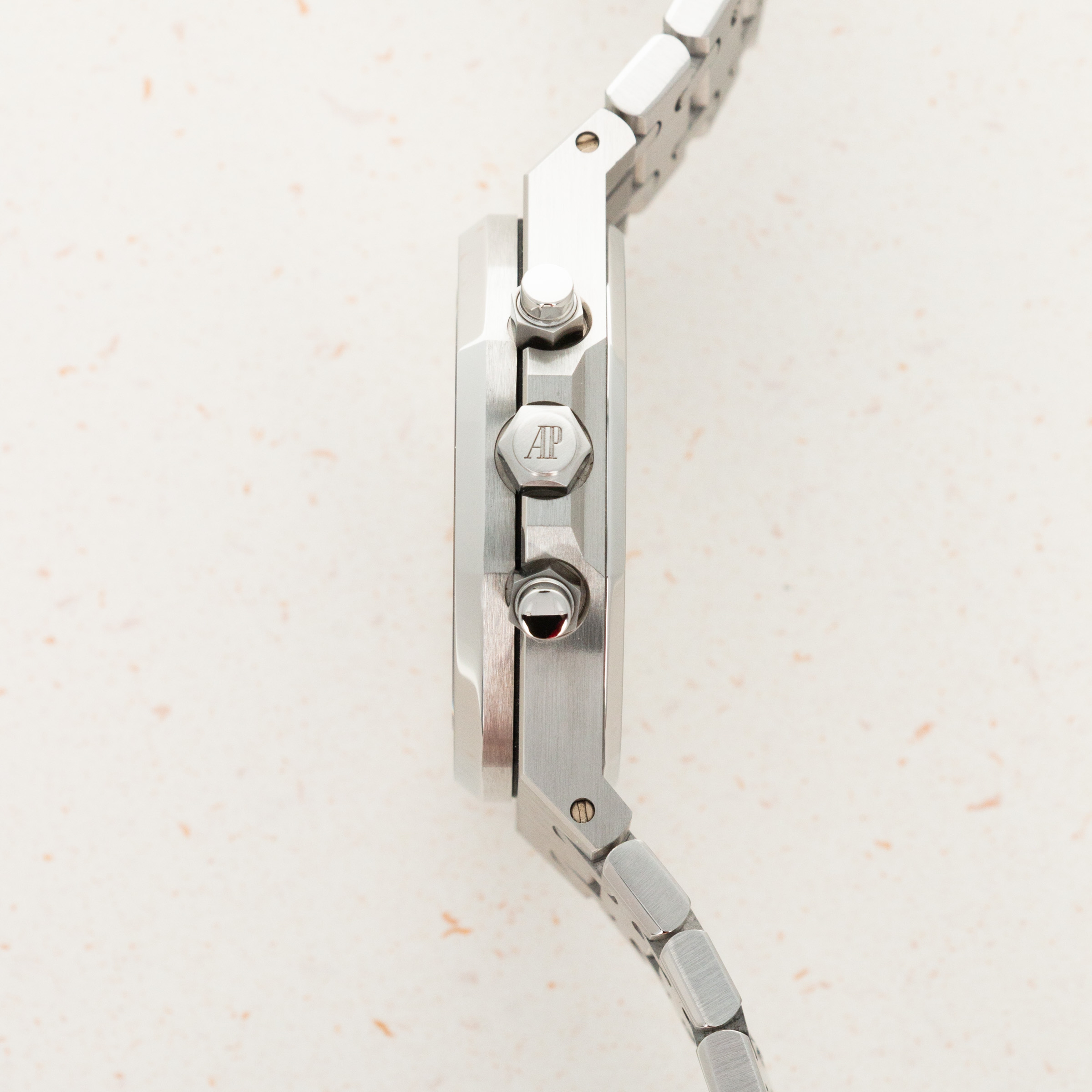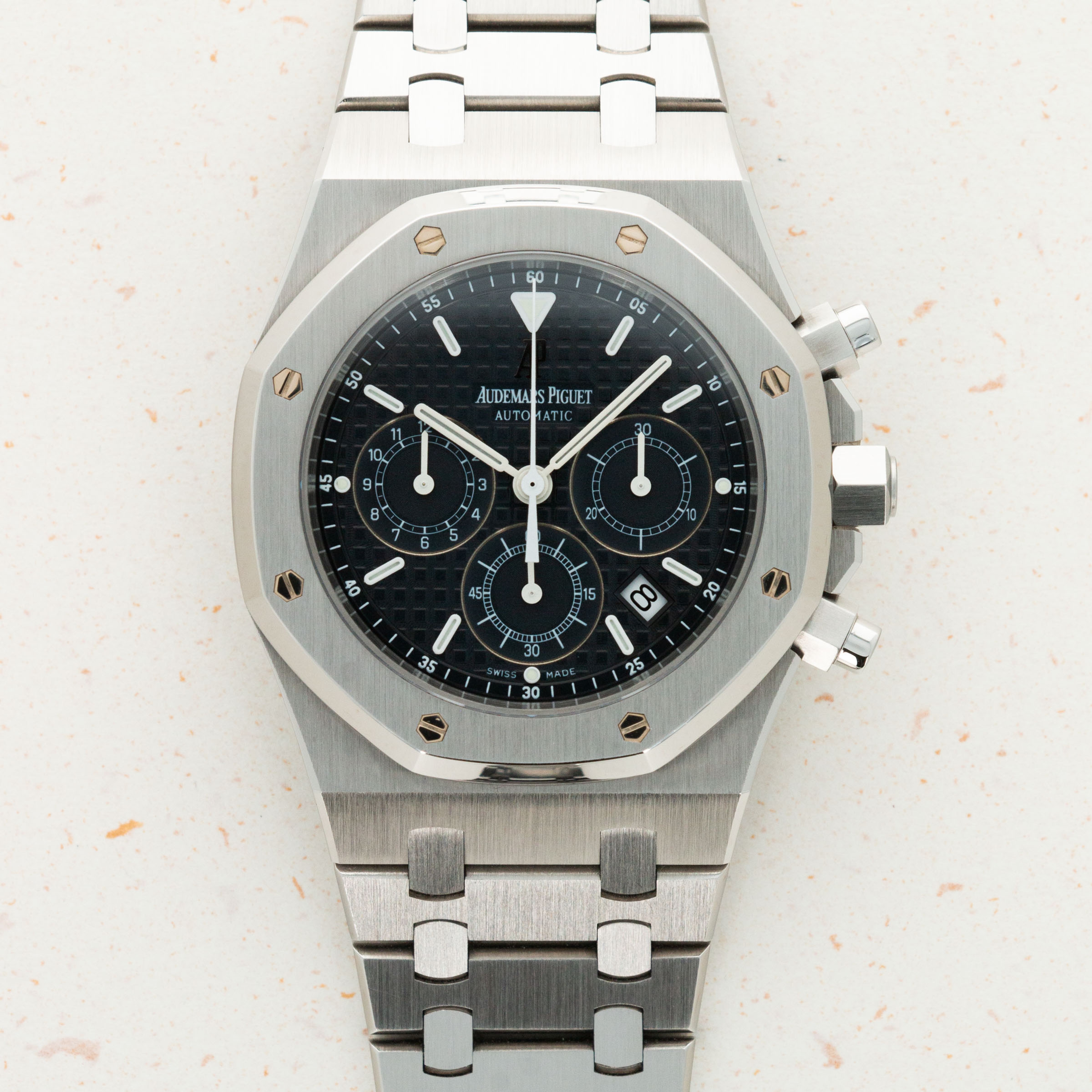 The 25860 ST was launched in 1998, and was the only chronograph to be made in the Royal Oak case (aside from the Emmanuel Gueit designed Offshore chronograph which was released in 1993). Featuring an F. Piguet movement, the 25860 was available in a myriad of color combinations and case materials. Also known as the 'Kasparov', it is christened after and a favorite of, the Chess grand master Garry Kasporov.