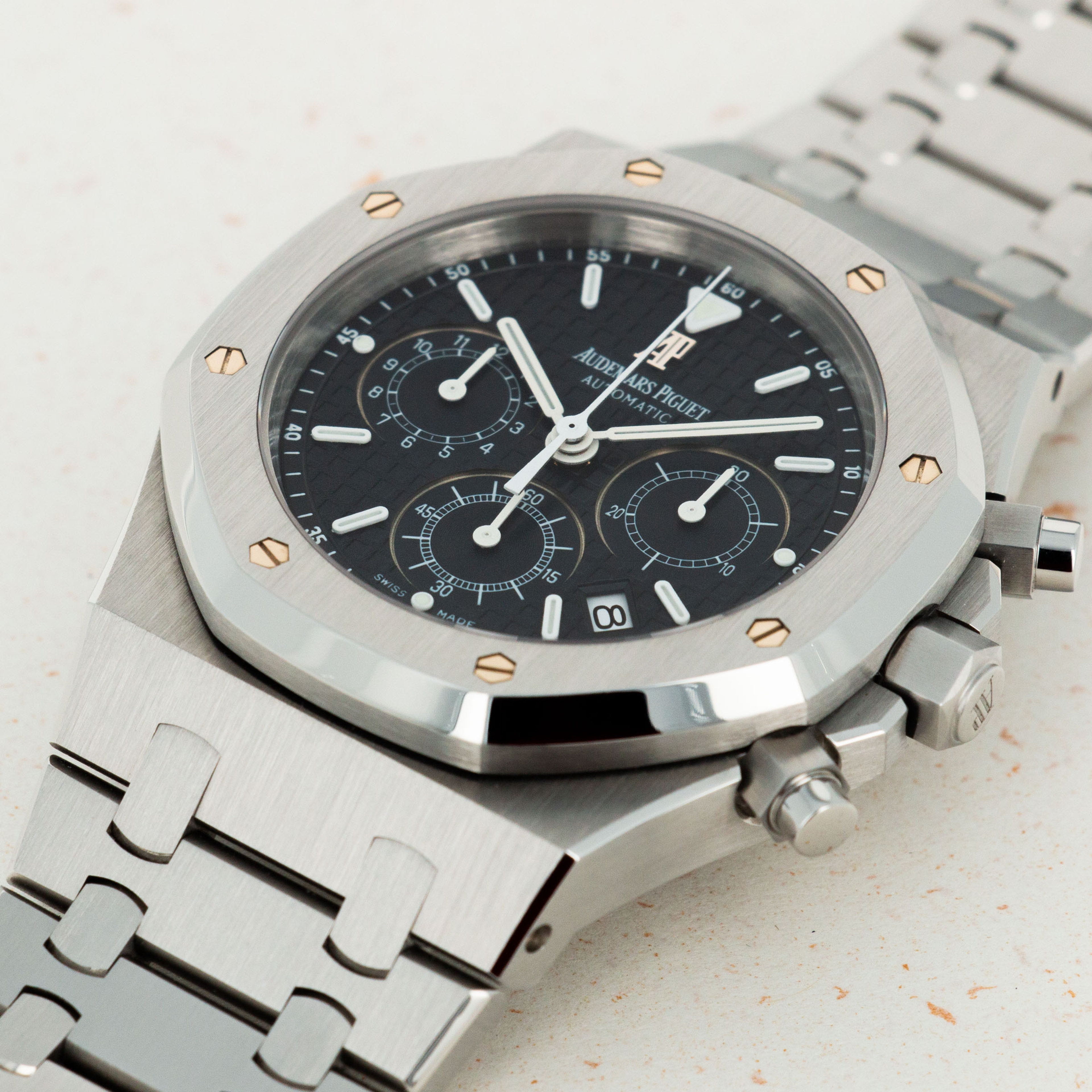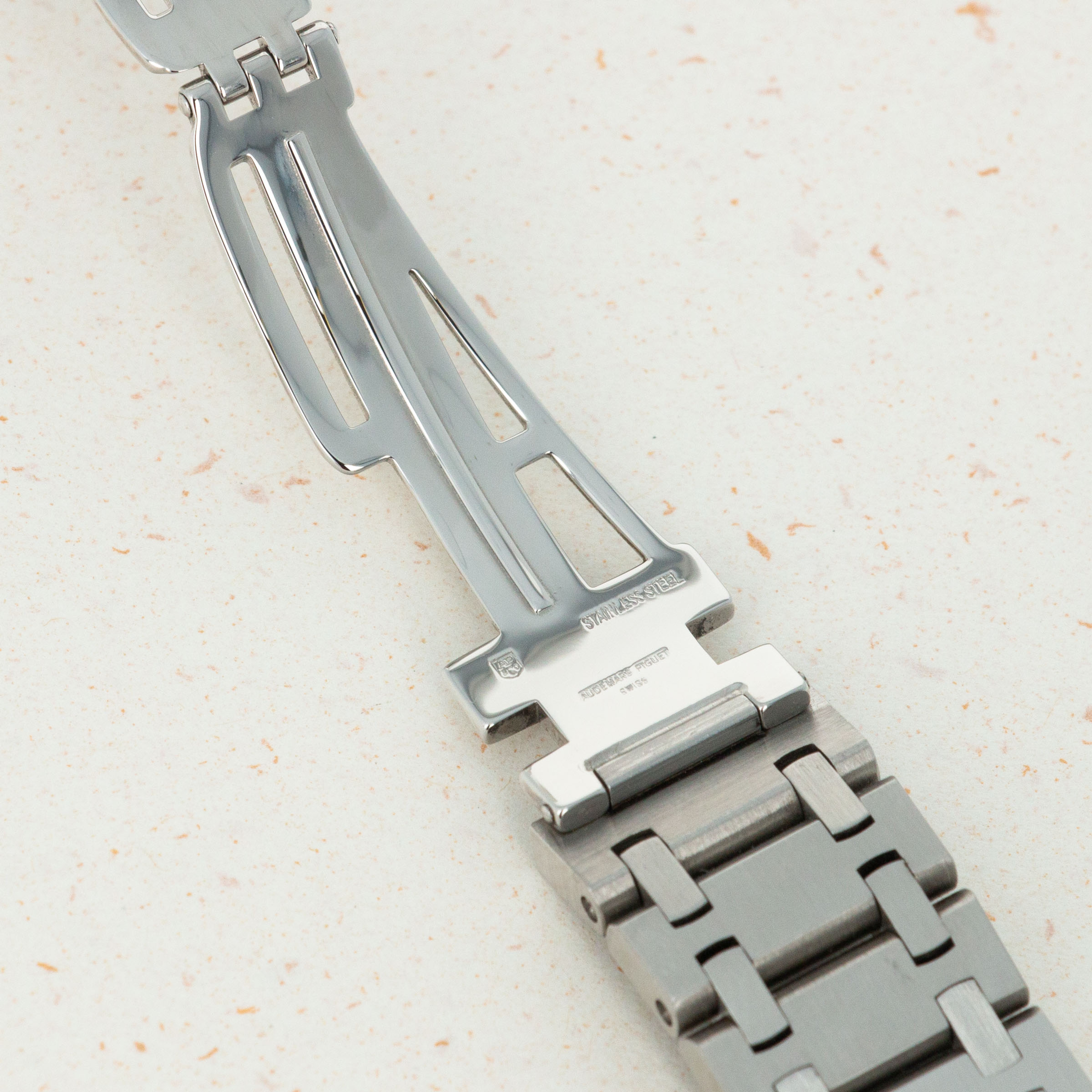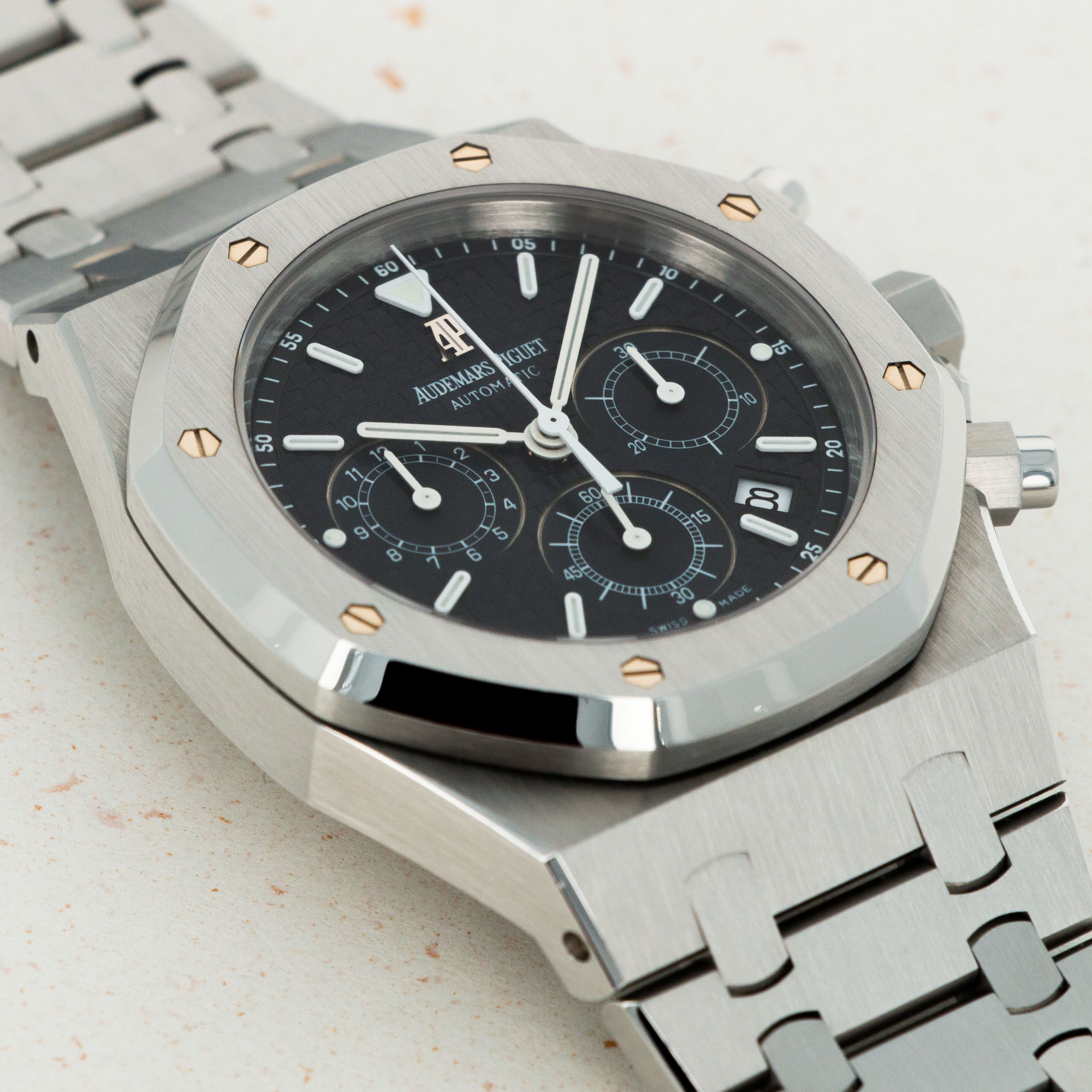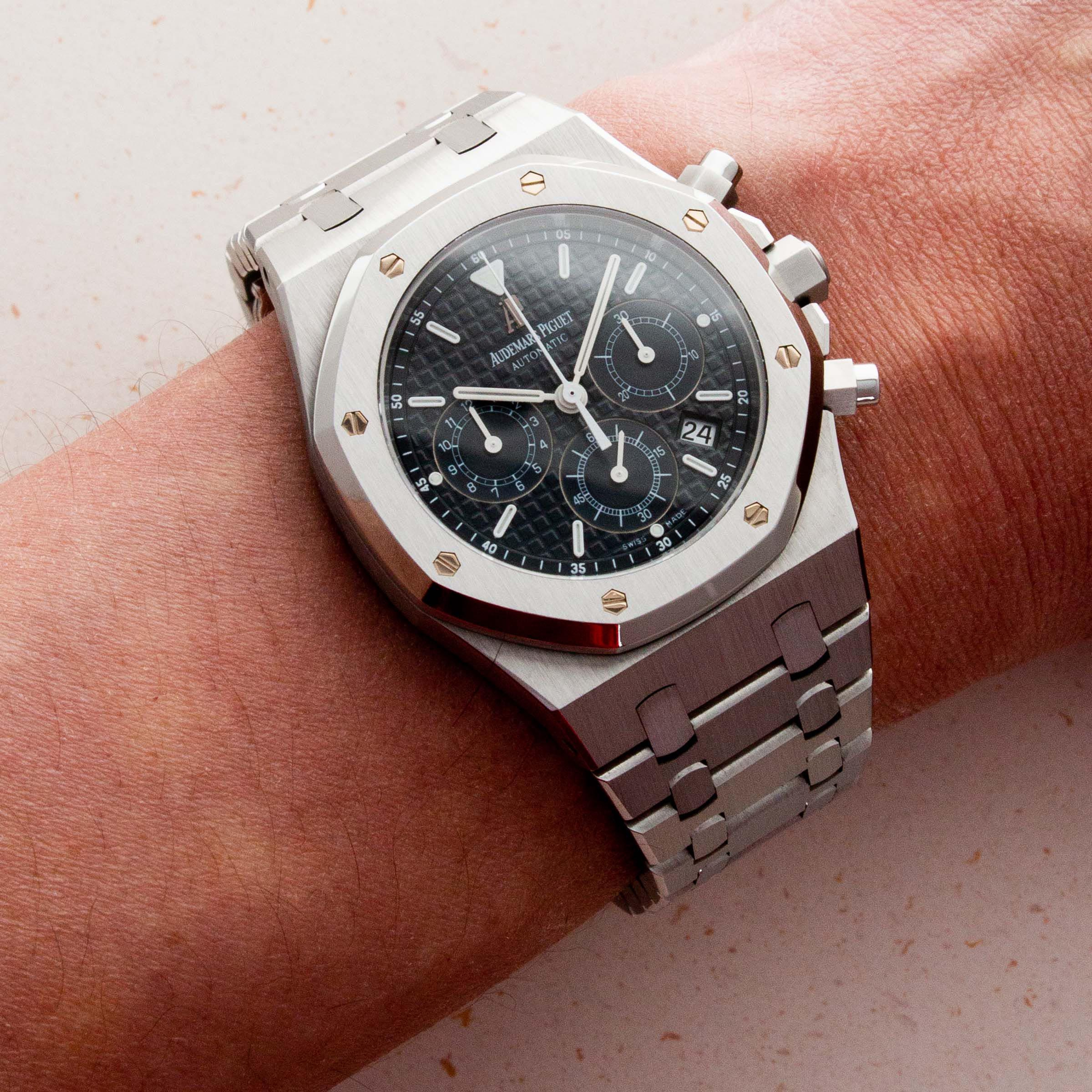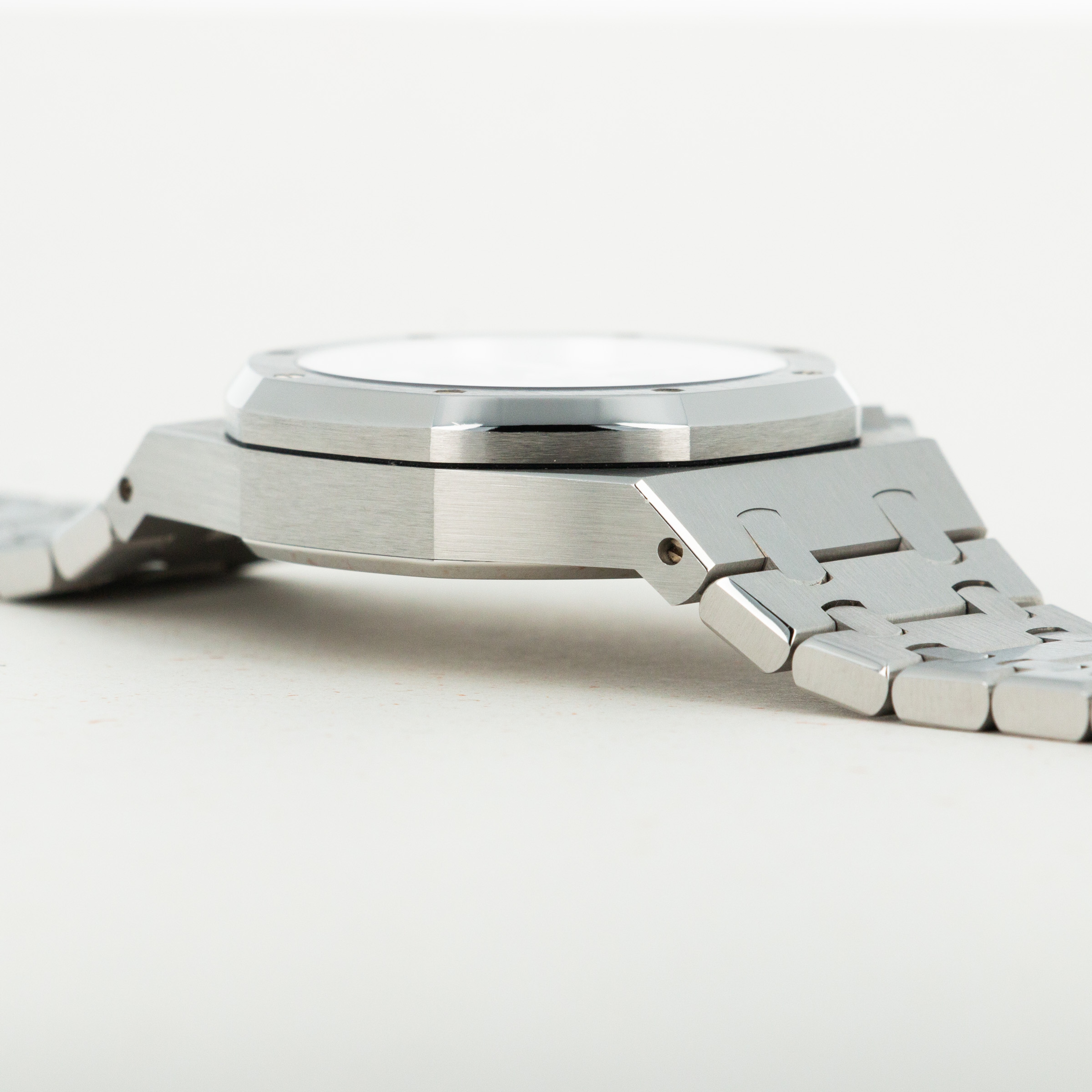 Angular and geometric, the Royal Oak design by Gerald Genta has become a bona fide icon. This one retains all the sharp finishings that Audemars Piguet is known for.