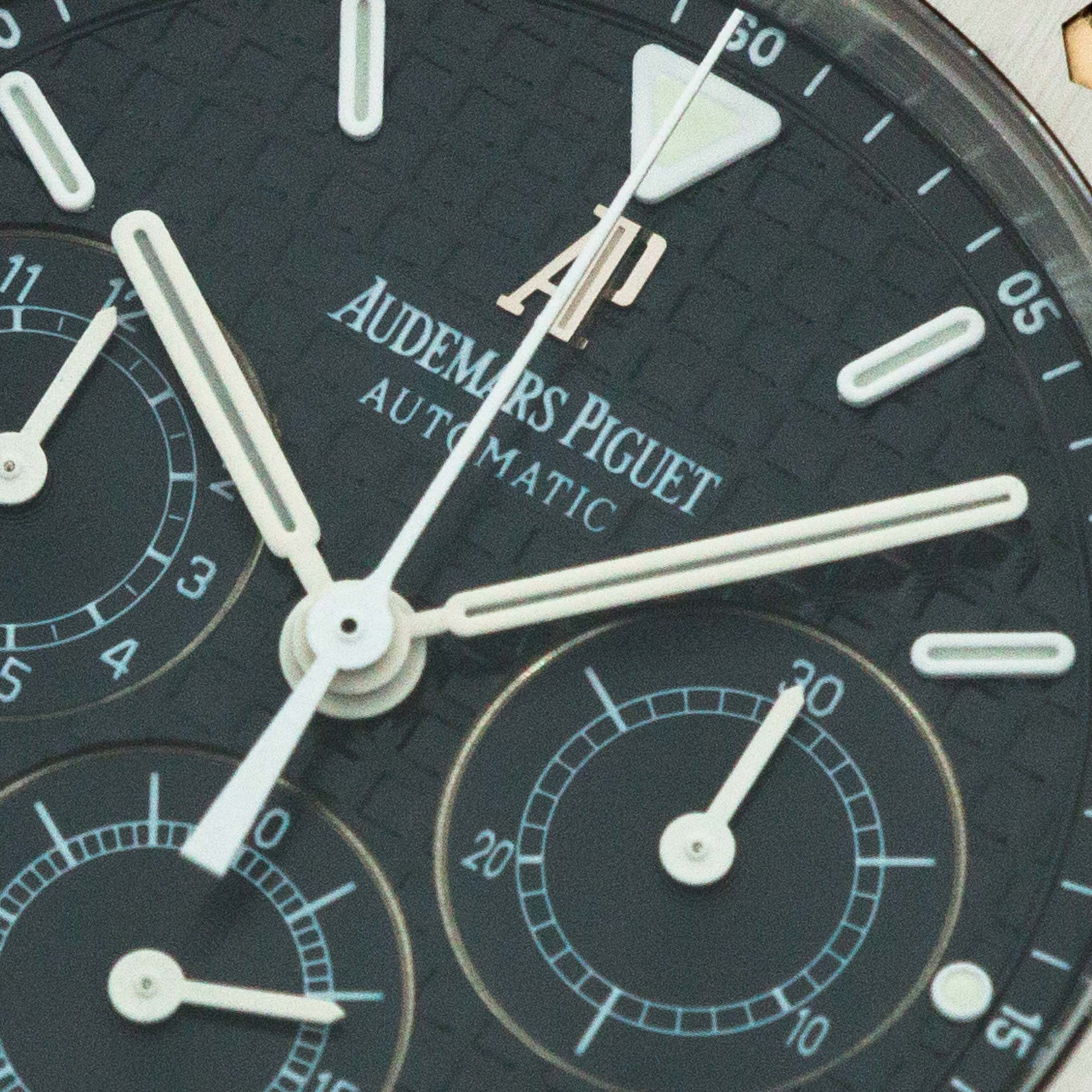 A classic example of the Audemars Piguet tapisserie dial, showcased here in a dark blue.