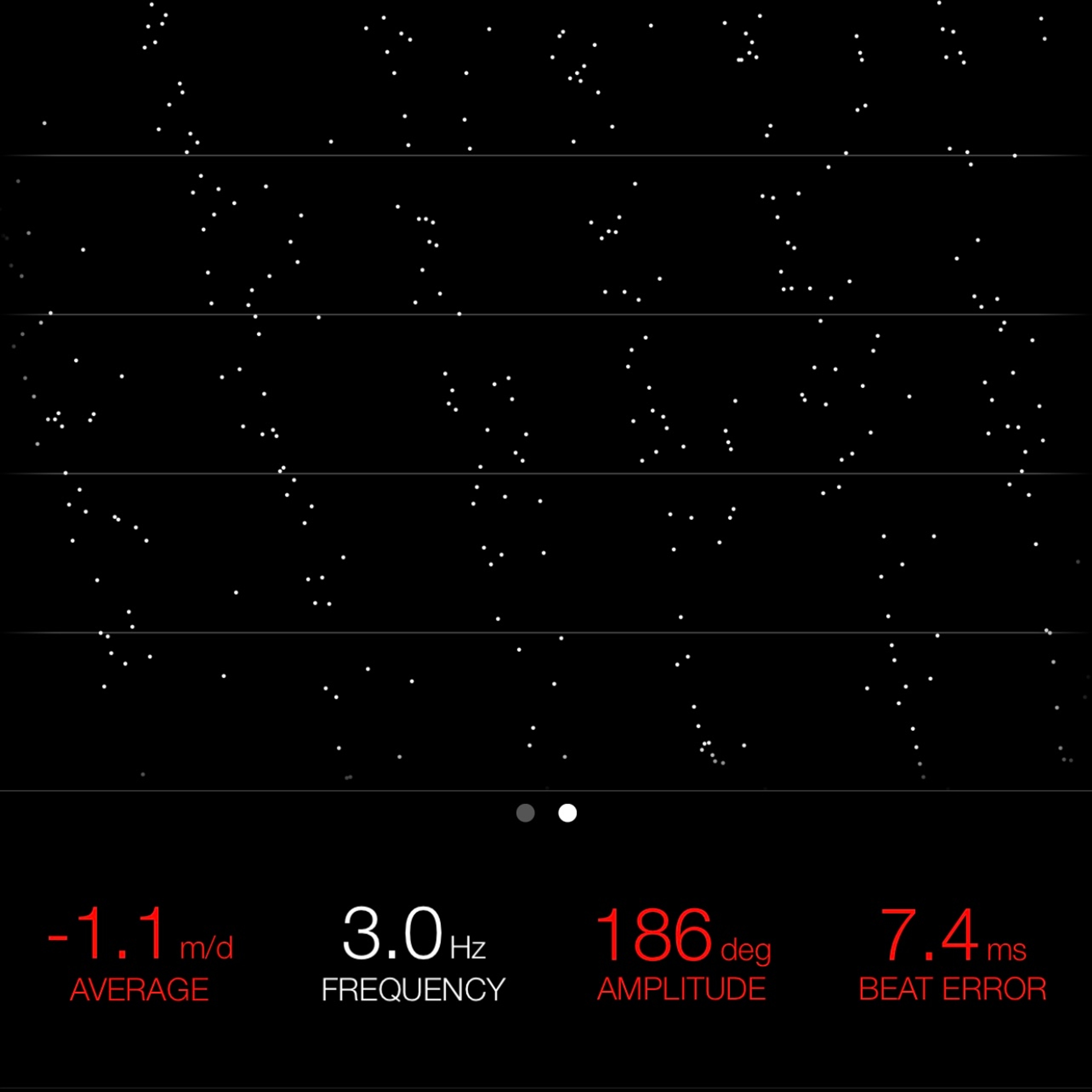 This reading was taken (crown down) with a ONEOF Accuracy Boutique Edition timing machine at time of cataloging. It is provided as a courtesy only, and shall not be construed as a warranty or guarantee of any kind. Please refer to our terms and conditions of sale for more information.