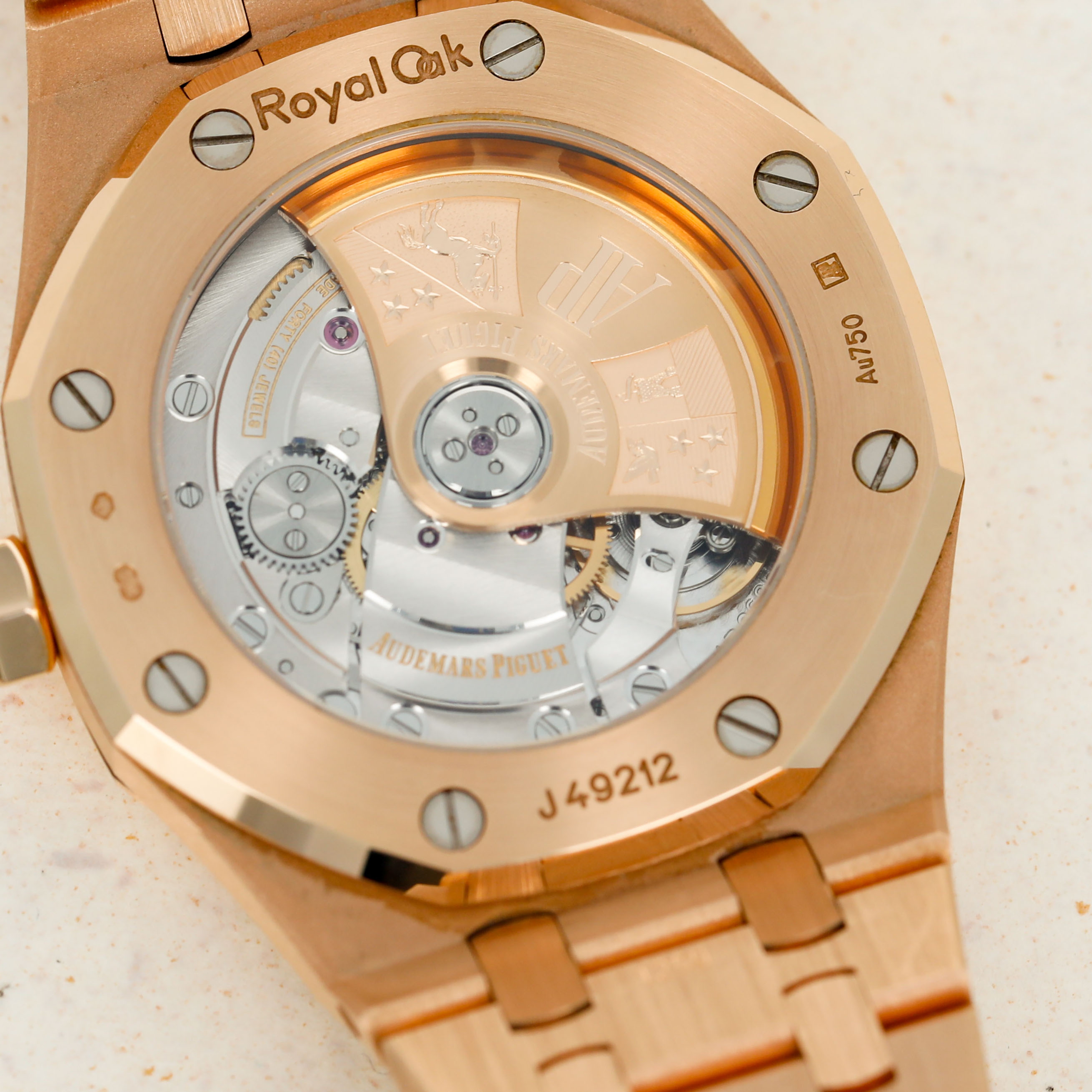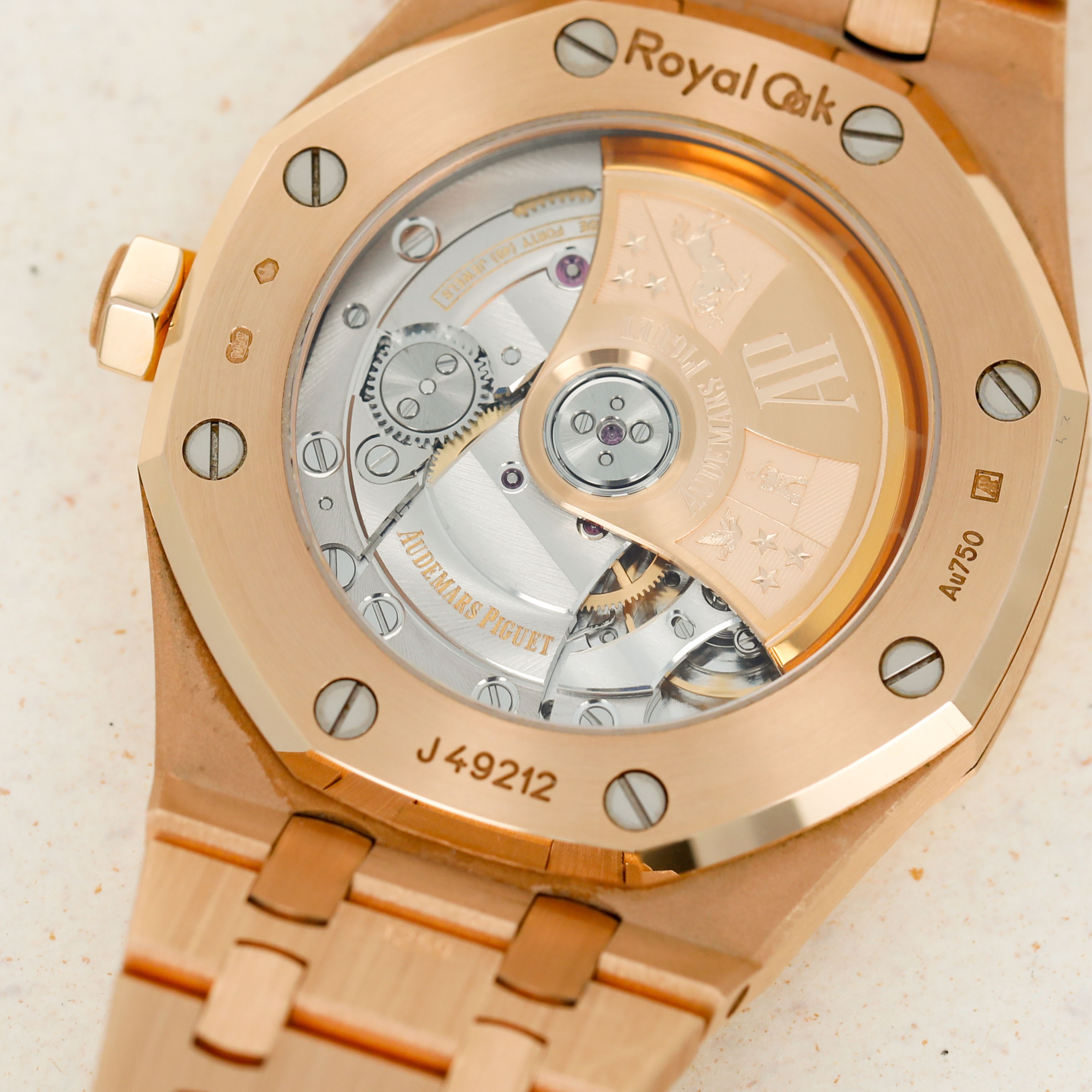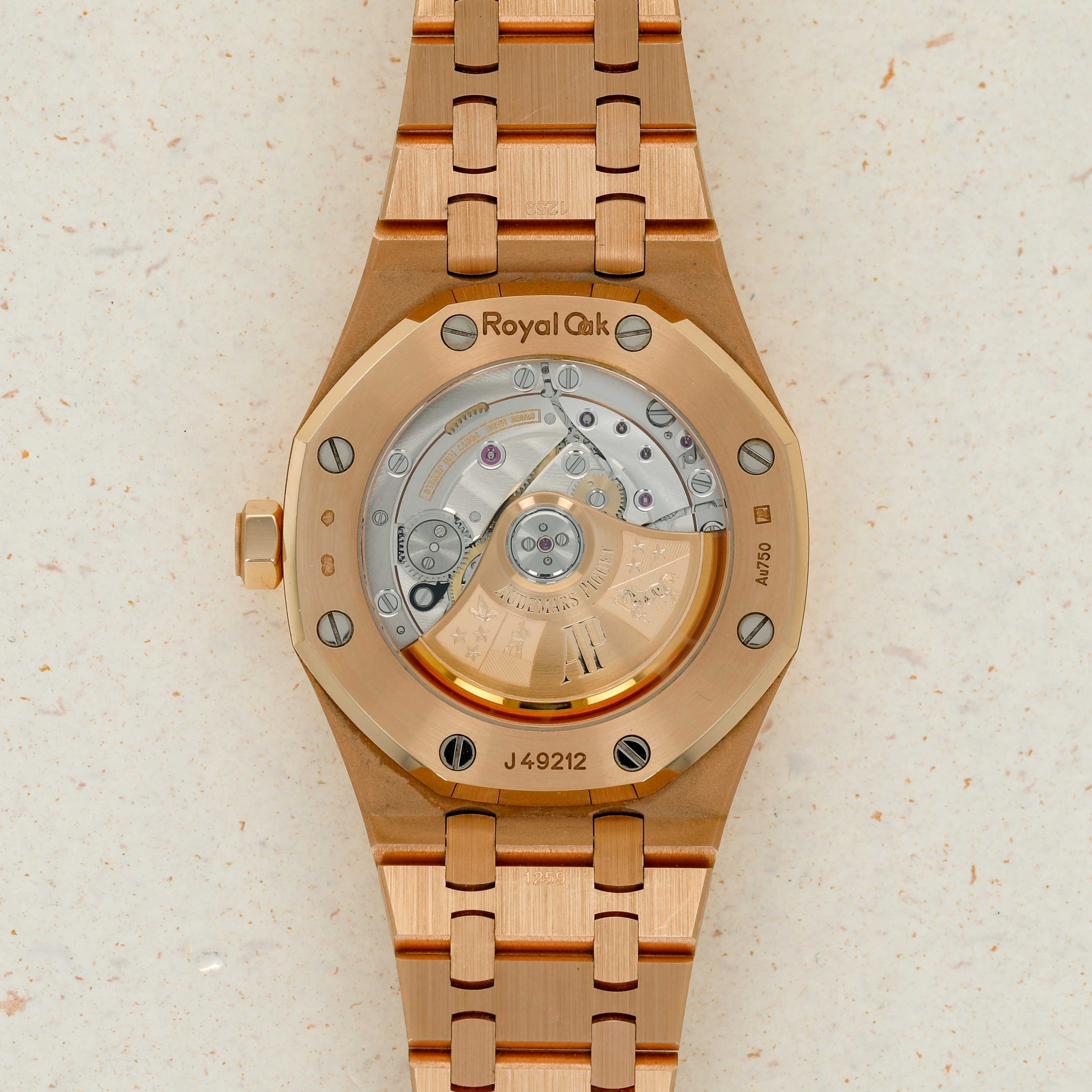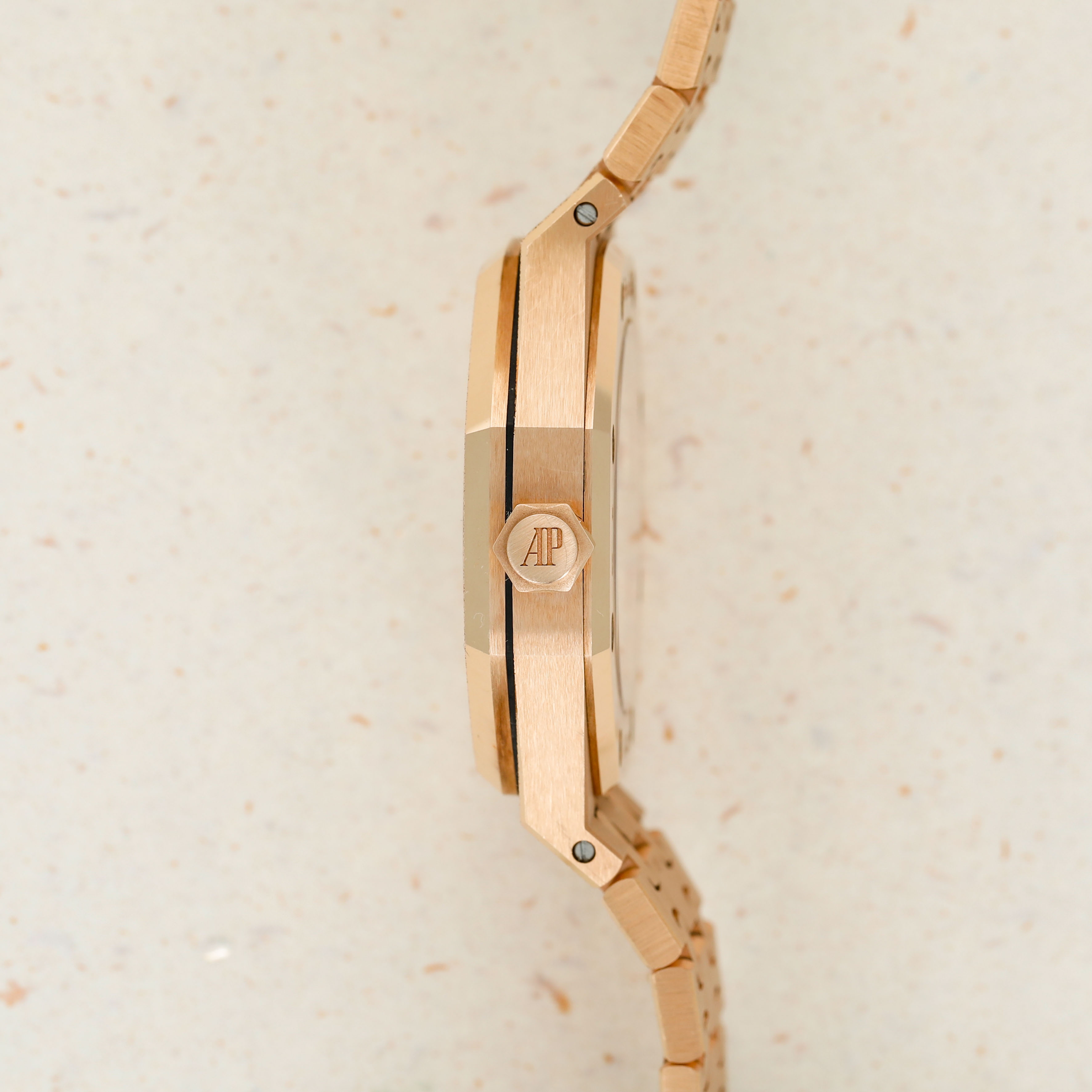 A bright and beautiful watch made all the more special thanks to its unorthodox frosted finish, the ref. 15454OR is a timepiece that combines the Royal Oak's iconic design with an avant-garde aesthetic that speaks to how the Royal Oak came about in the first place, by challenging boundaries and finding out where that takes you.
