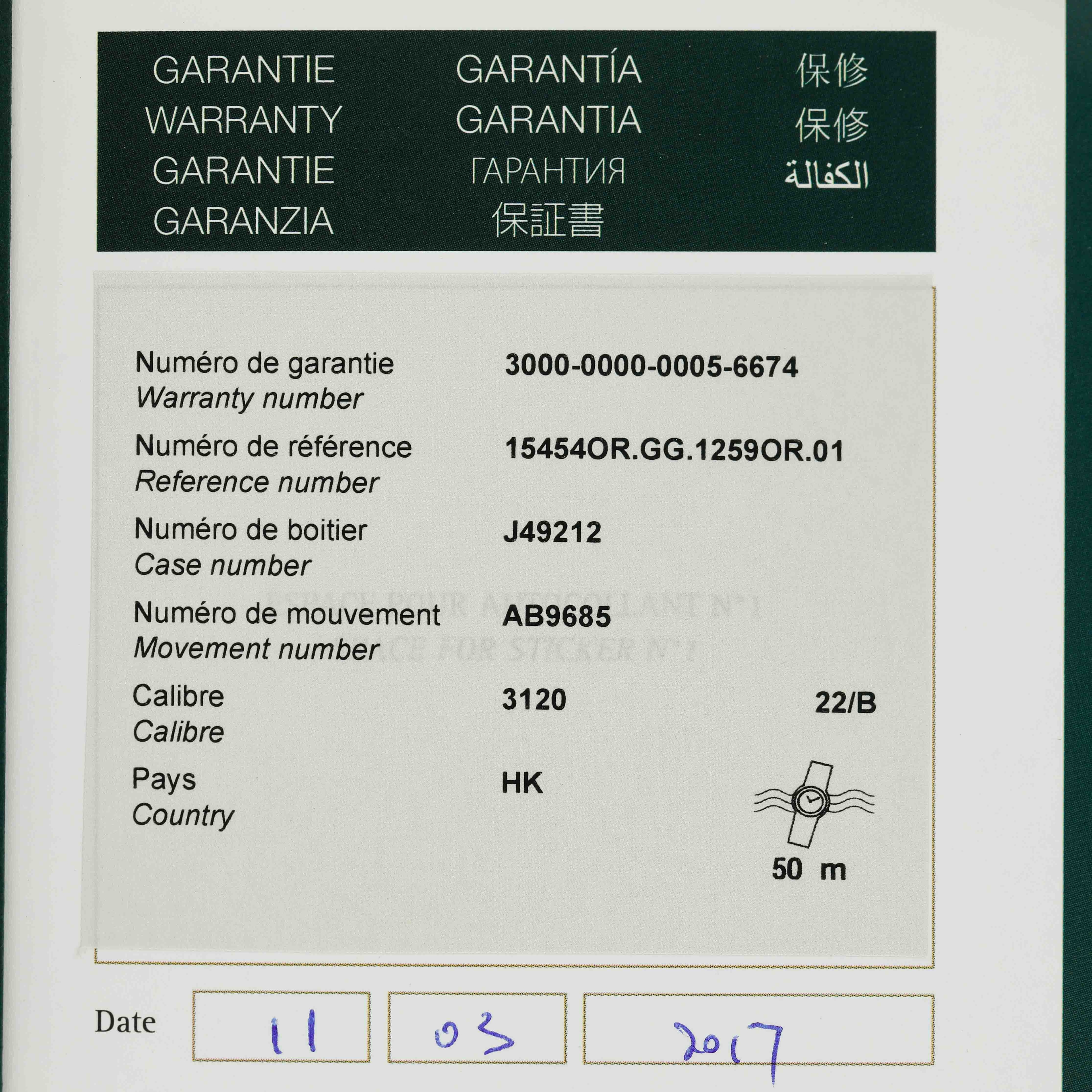 This reading was taken (crown down) with a ONEOF Accuracy Boutique Edition timing machine at time of cataloging. It is provided as a courtesy only, and shall not be construed as a warranty or guarantee of any kind. Please refer to our terms and conditions of sale for more information.