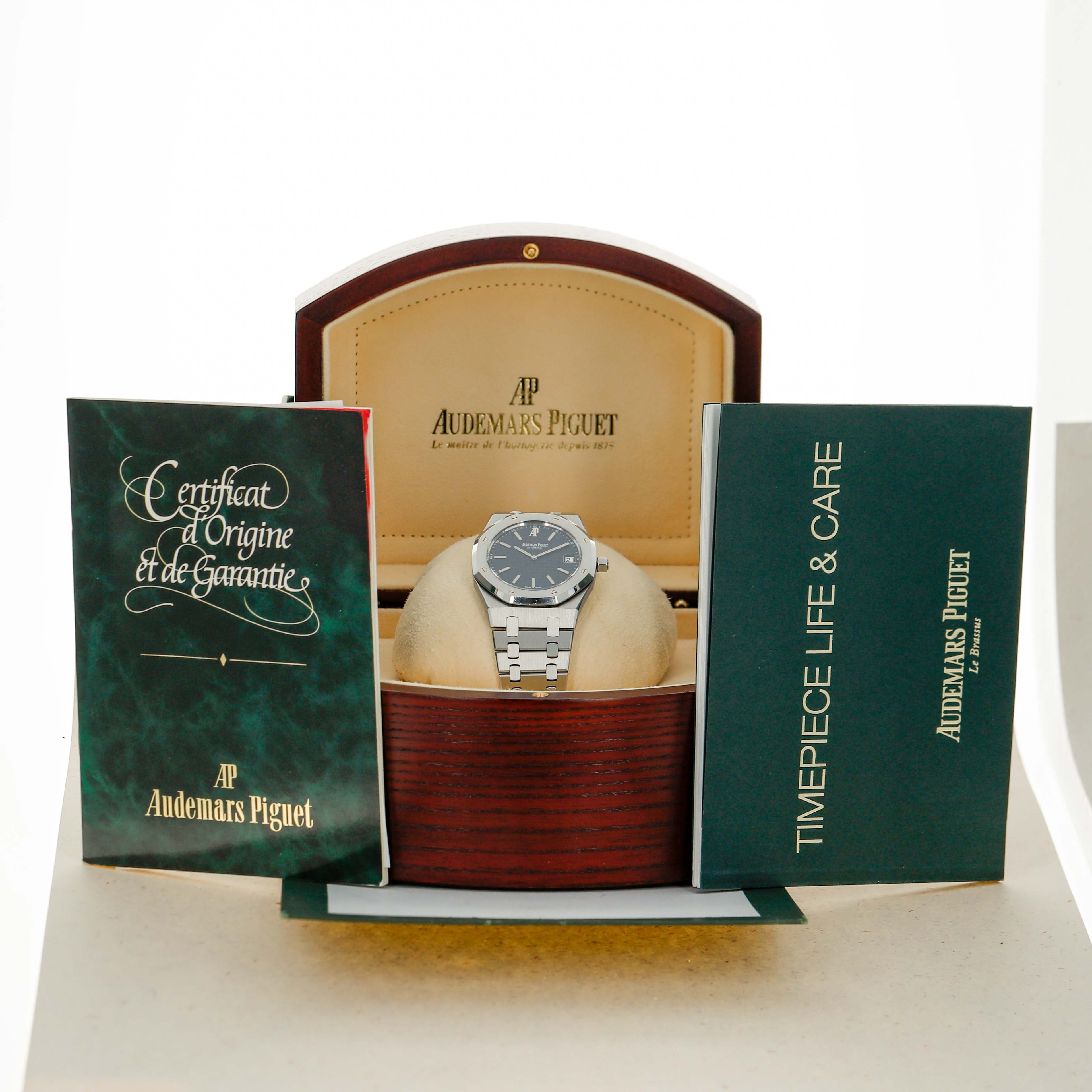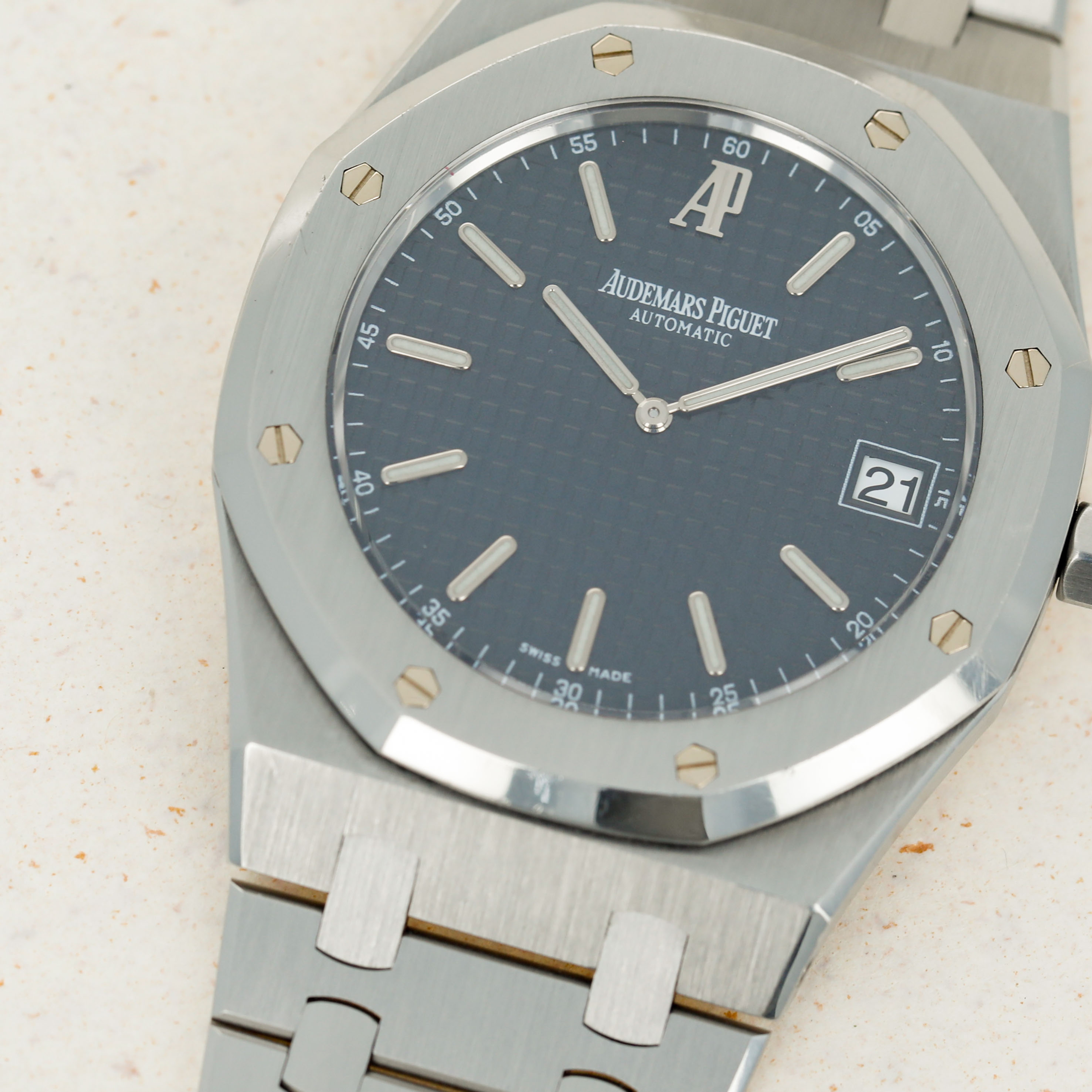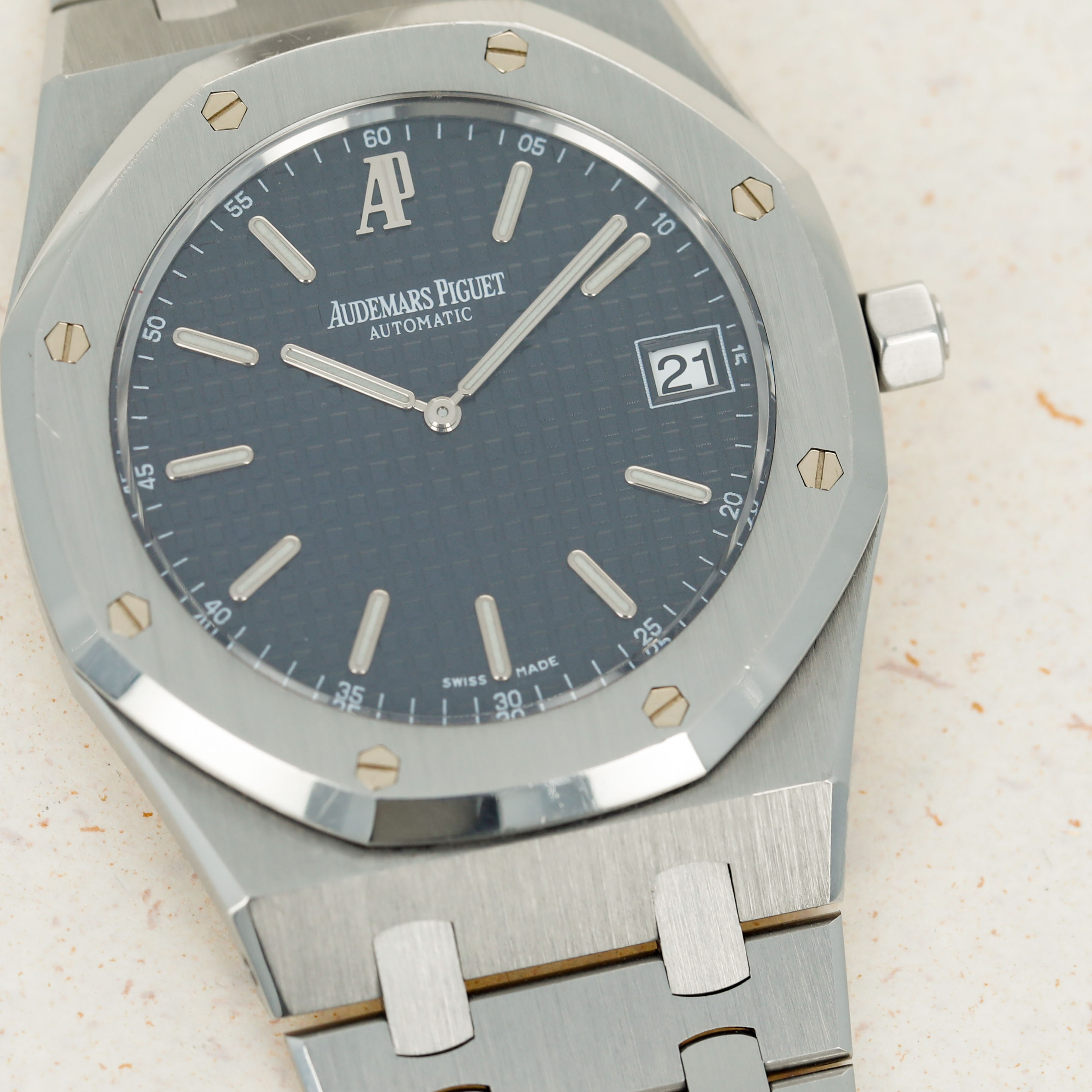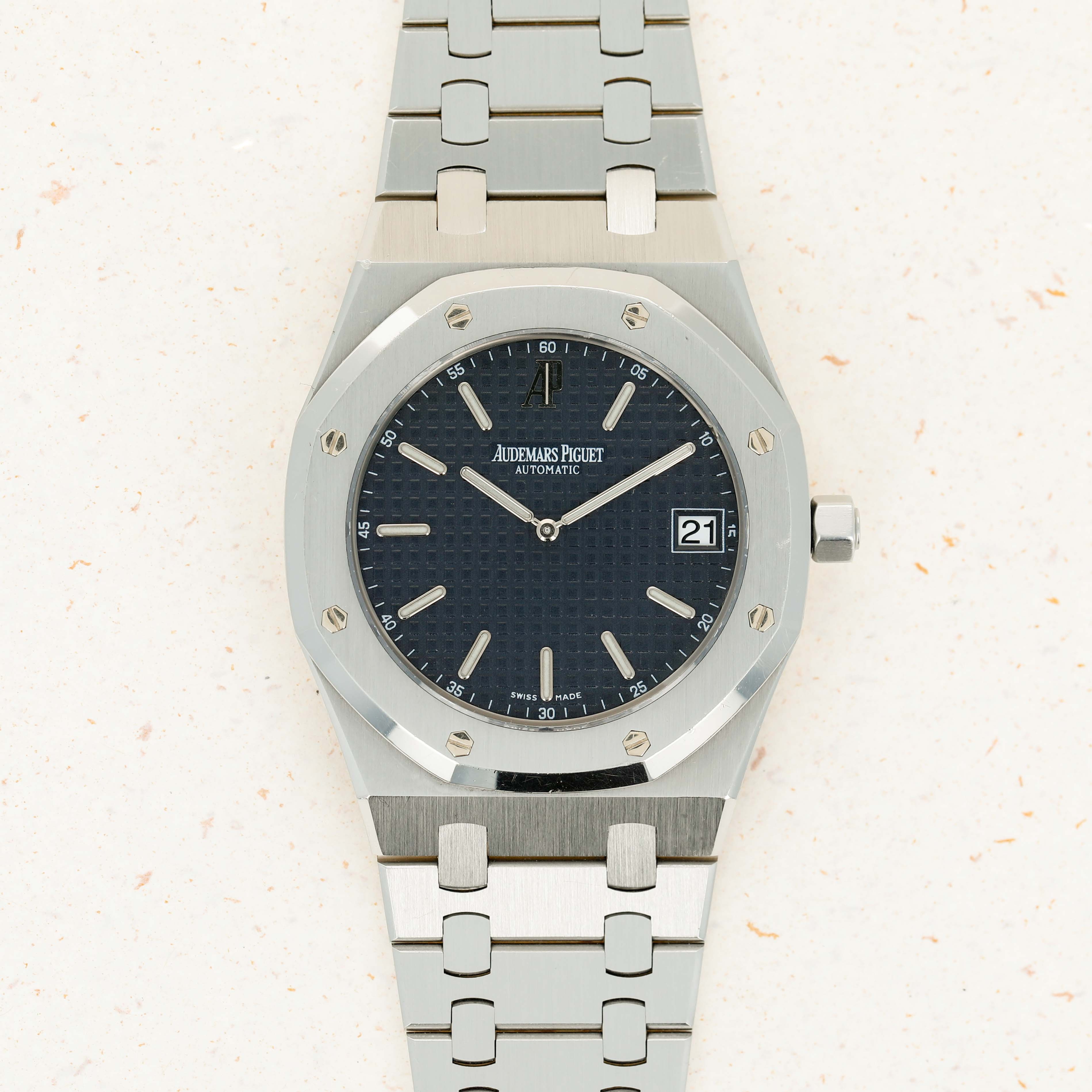 Boasting the Royal Oak's signature blue-black dial with its 'Petite Tapisserie' dial, this example features the Royal Oak's typical design language.
