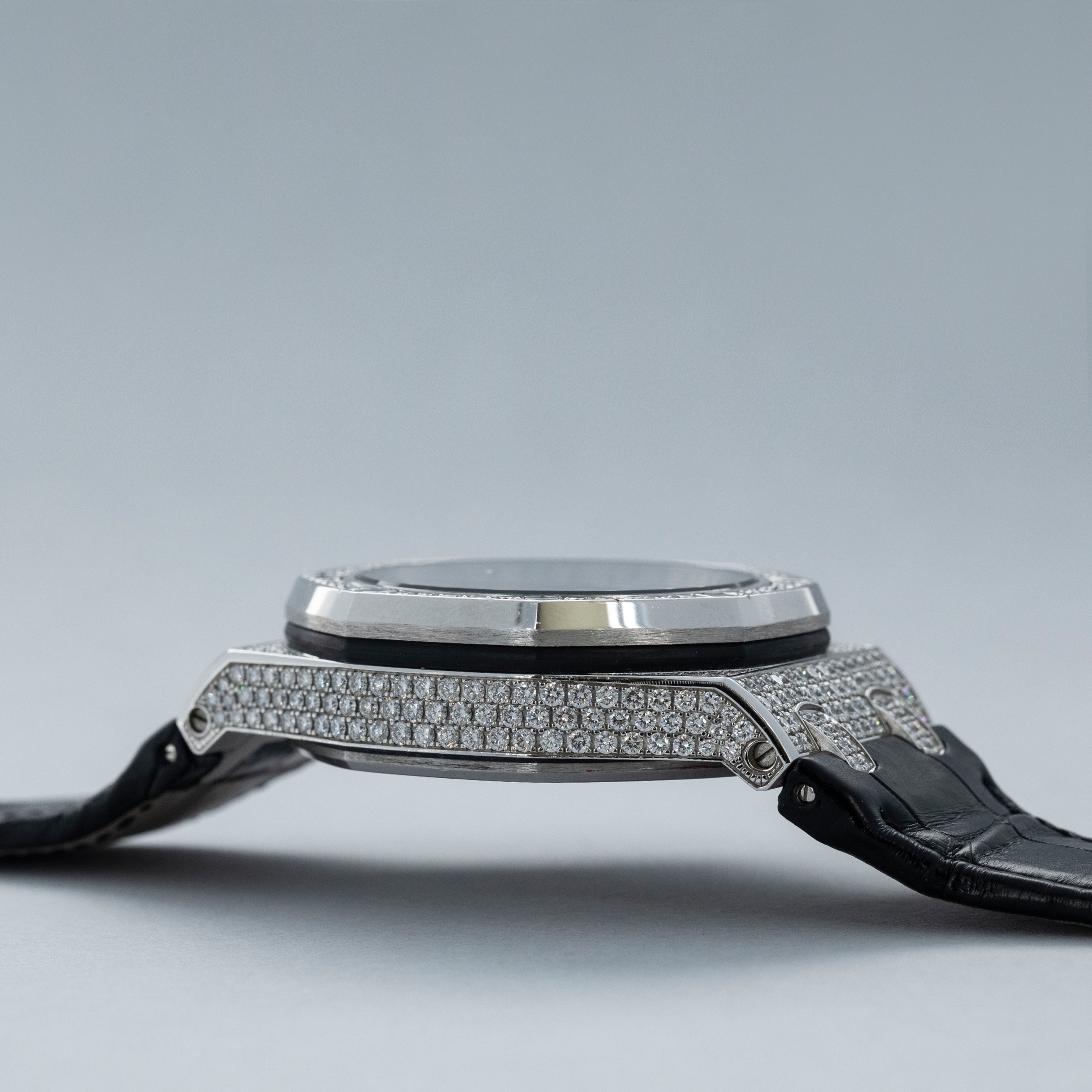 Imposing in its construction and yet artisanal in its execution, the 18kt white gold diamond-set ref. 26067BC speaks to collectors who want the Royal Oak Offshore's rugged utility with a more luxurious style of watchmaking than the Offshore is typically known for.