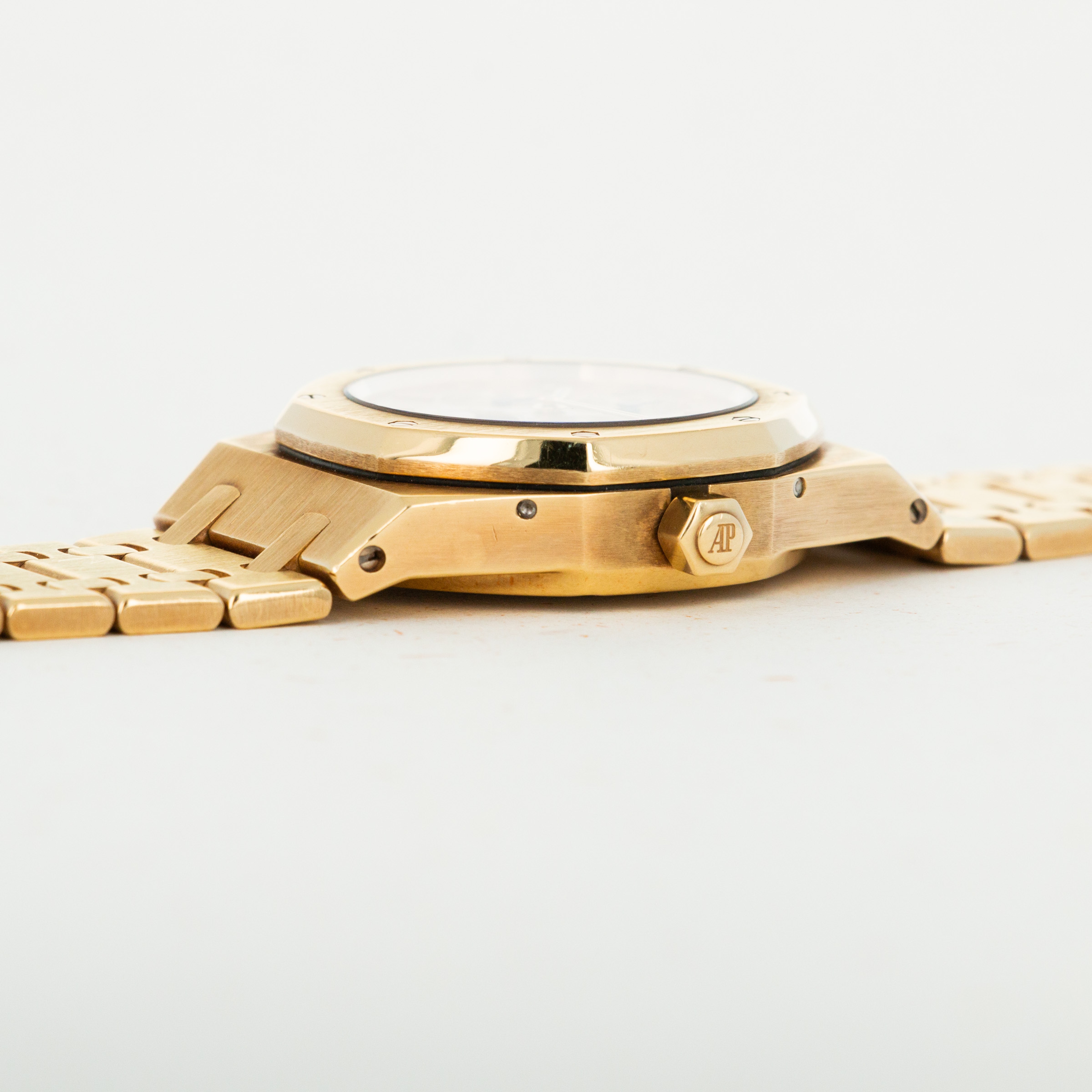 A favorite amongst AP connoisseurs, the 25800 is an interesting watch, notably for its diminutive 33mm size. This "baby" AP was produced in extremely limited numbers, and is seldom seen in any configuration, let alone 18k gold.