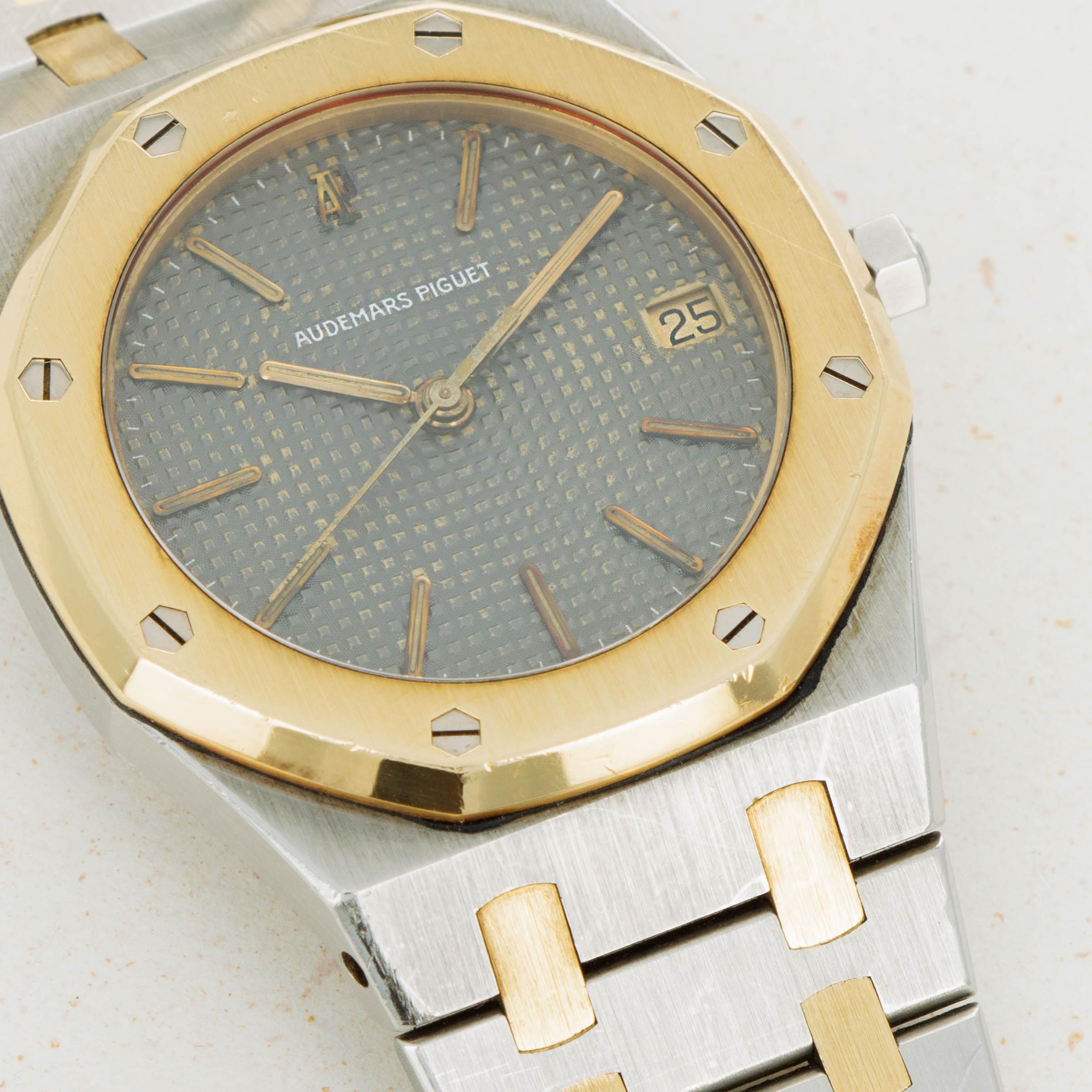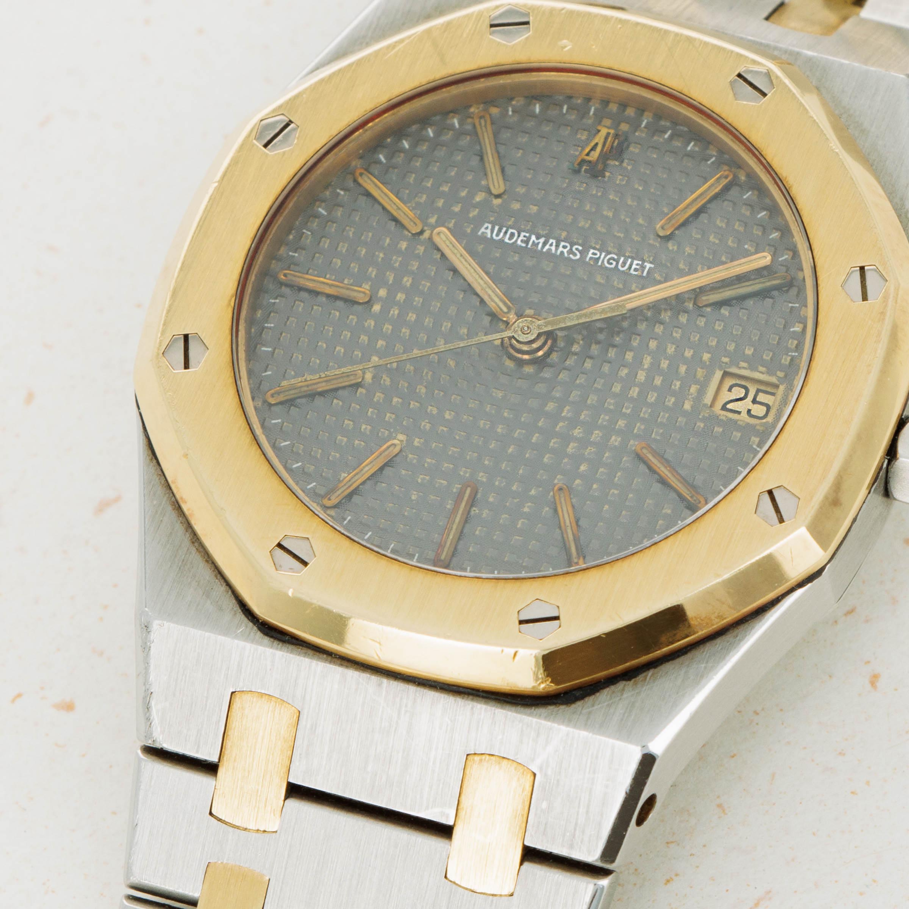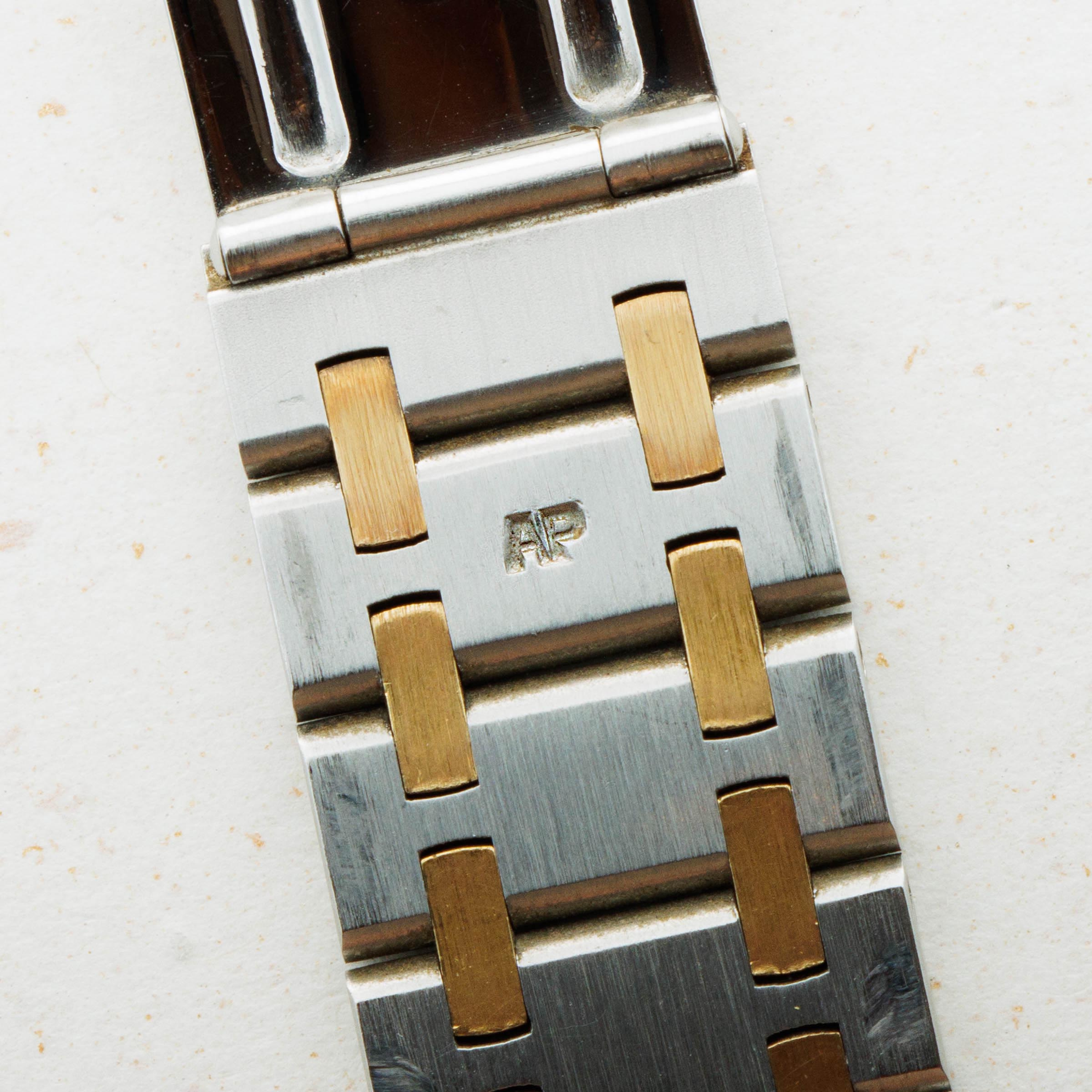 Watch is in very good overall condition Bezel has some scratches and marks on the edge but appears to retain its original finish. Case has minor scratches and marks on the edge. Dial exhibits minor oxidation on the applied AP logo and hour markers, as well as the tapisserie finish. Bracelet has 23 links, 9o of which are removable. There is minor stretch evident.