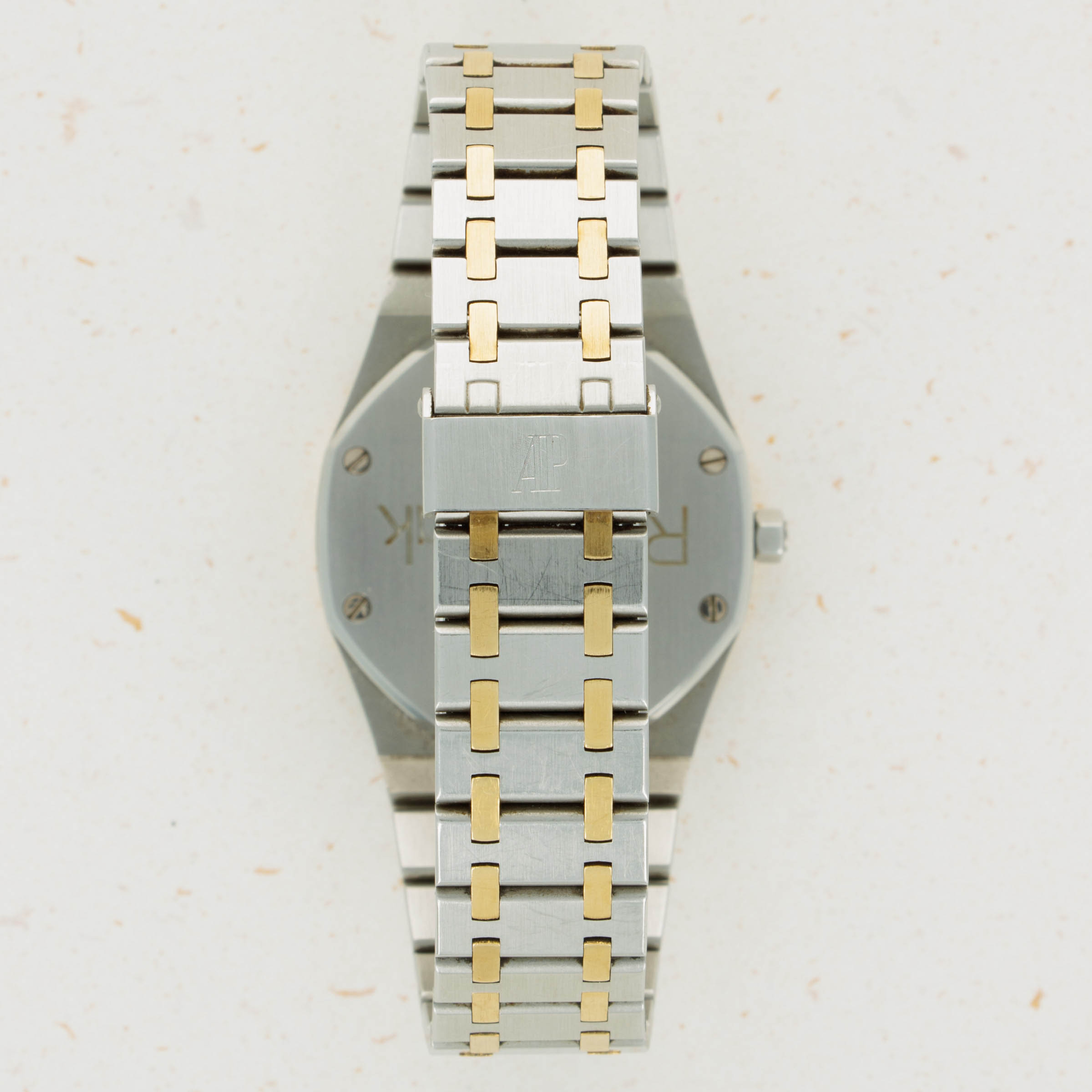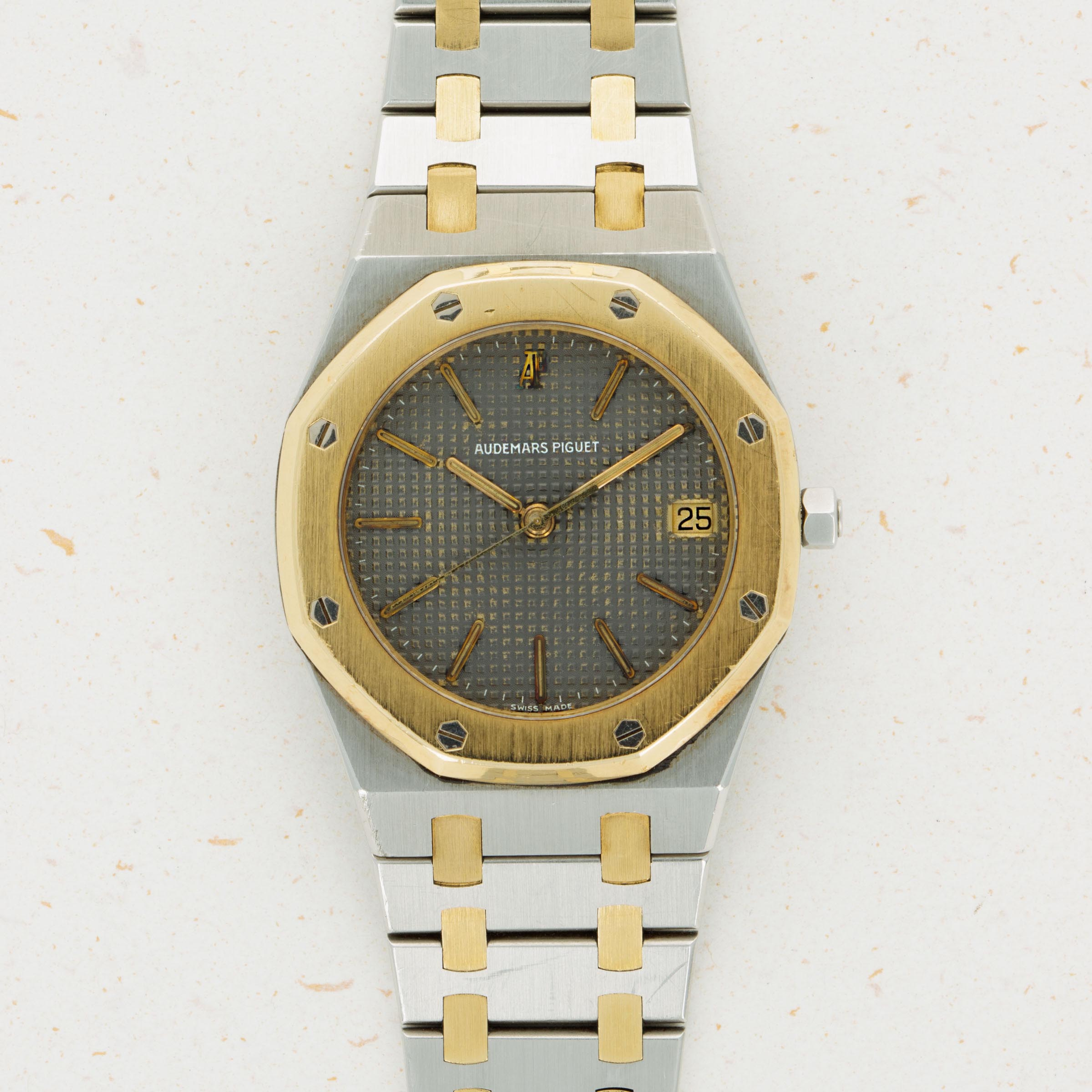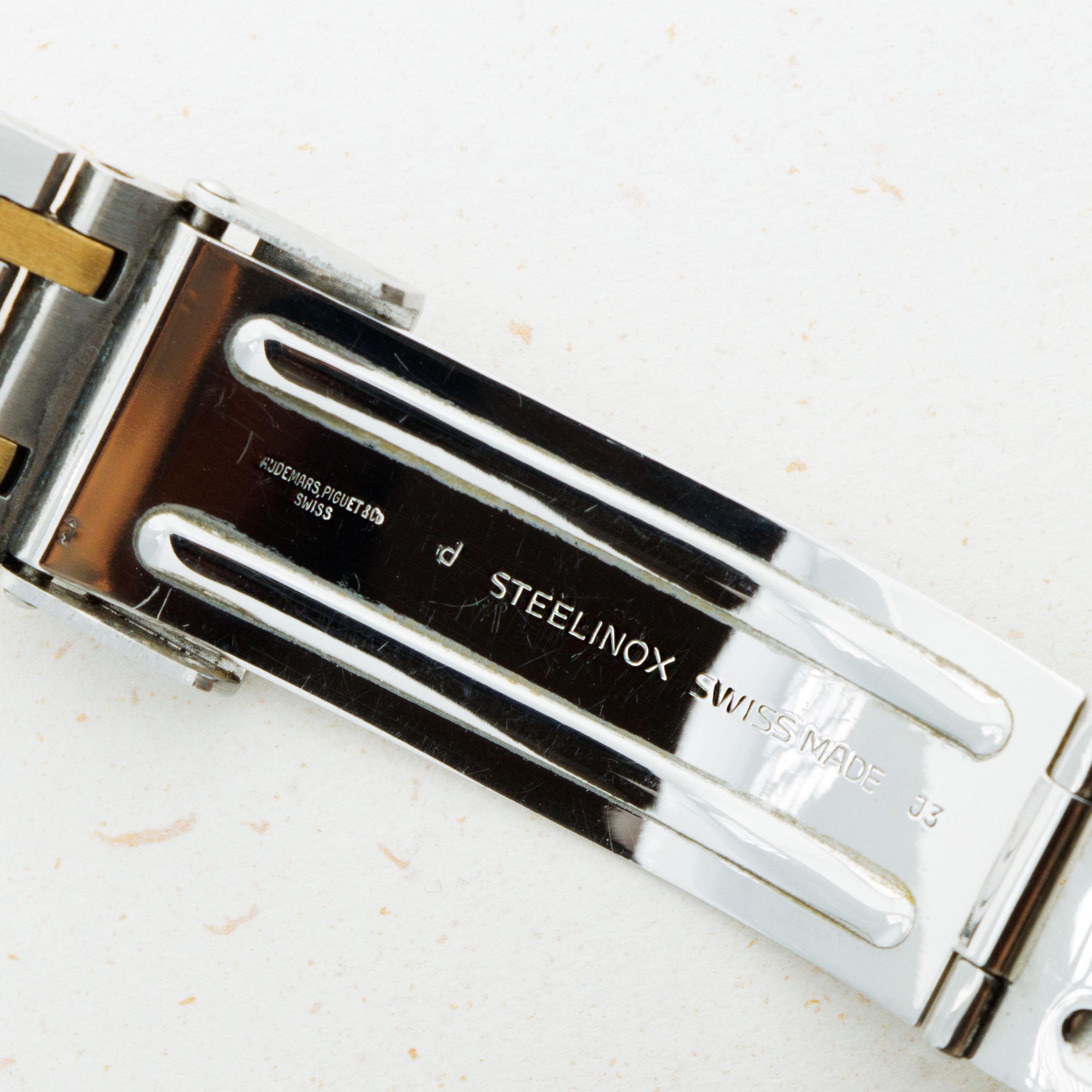 Watch is in very good overall condition Bezel has some scratches and marks on the edge but appears to retain its original finish. Case has minor scratches and marks on the edge. Dial exhibits minor oxidation on the applied AP logo and hour markers, as well as the tapisserie finish. Bracelet has 23 links, 9o of which are removable. There is minor stretch evident.