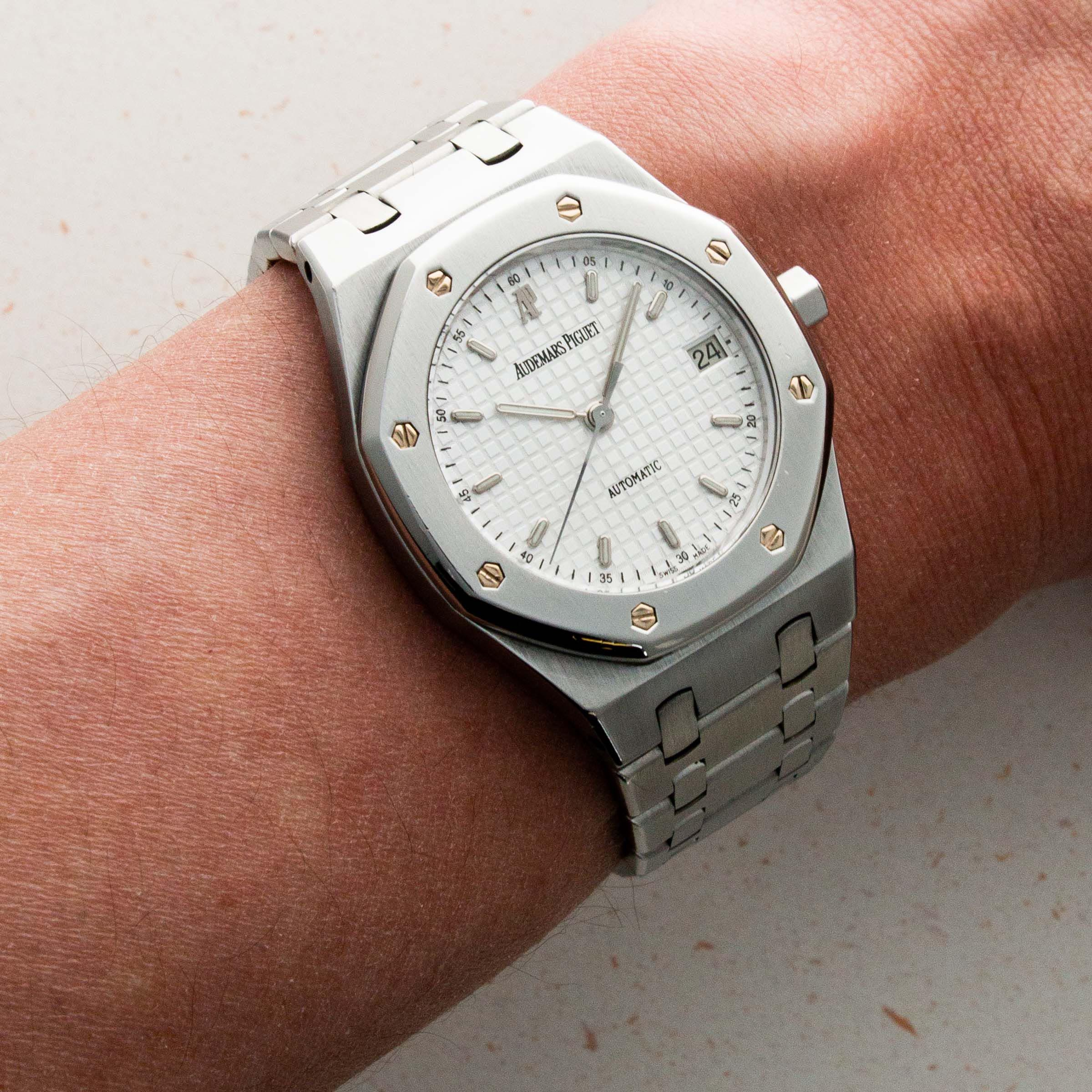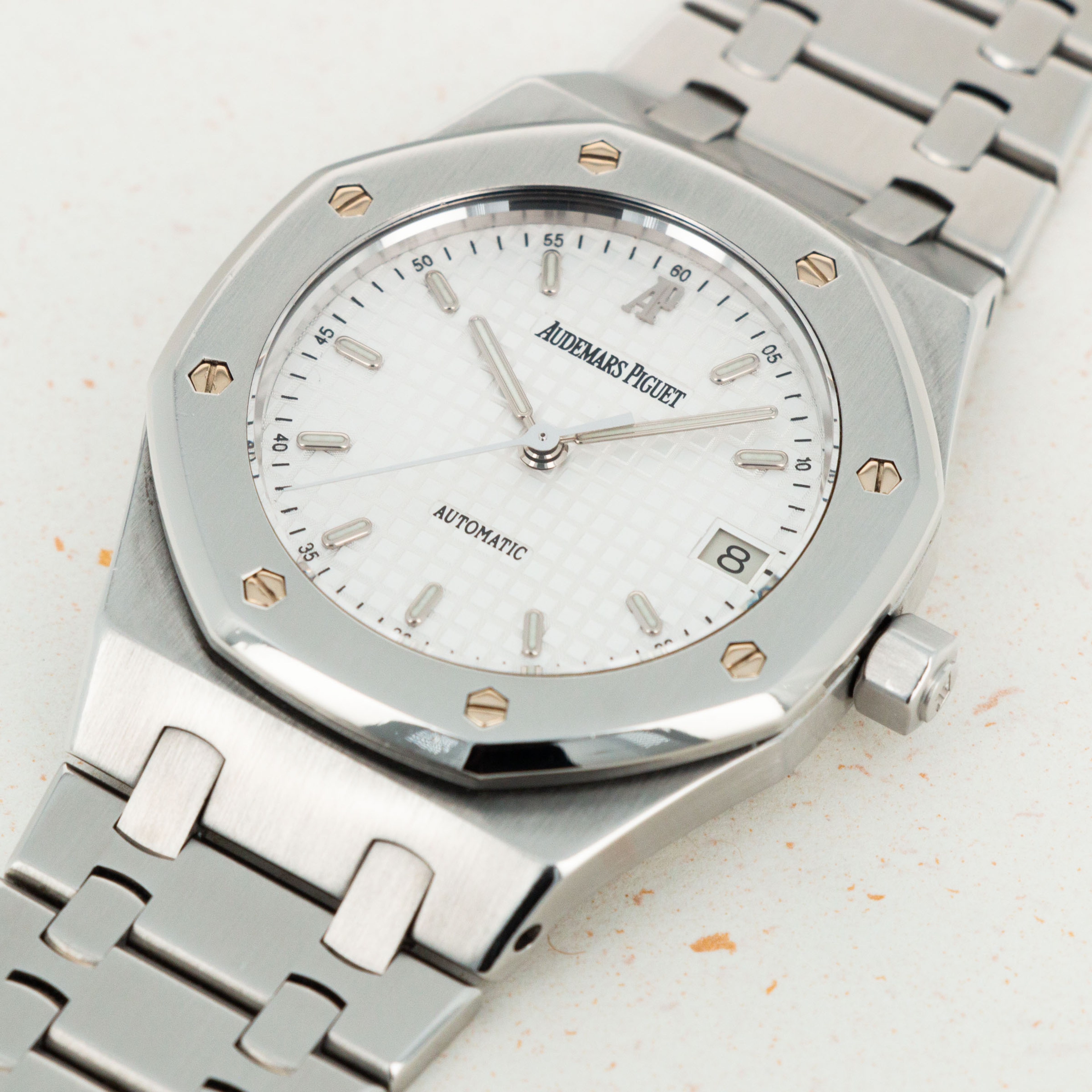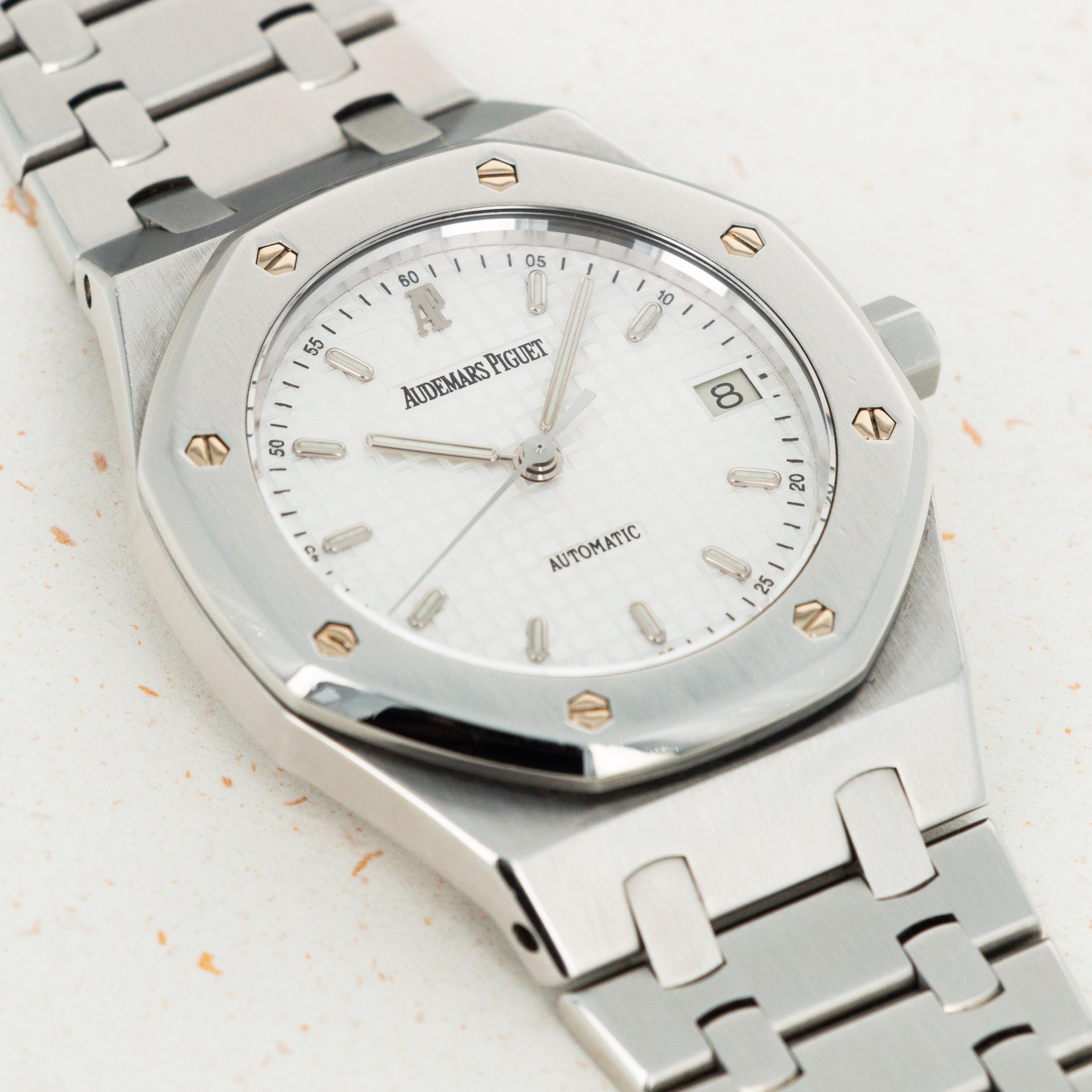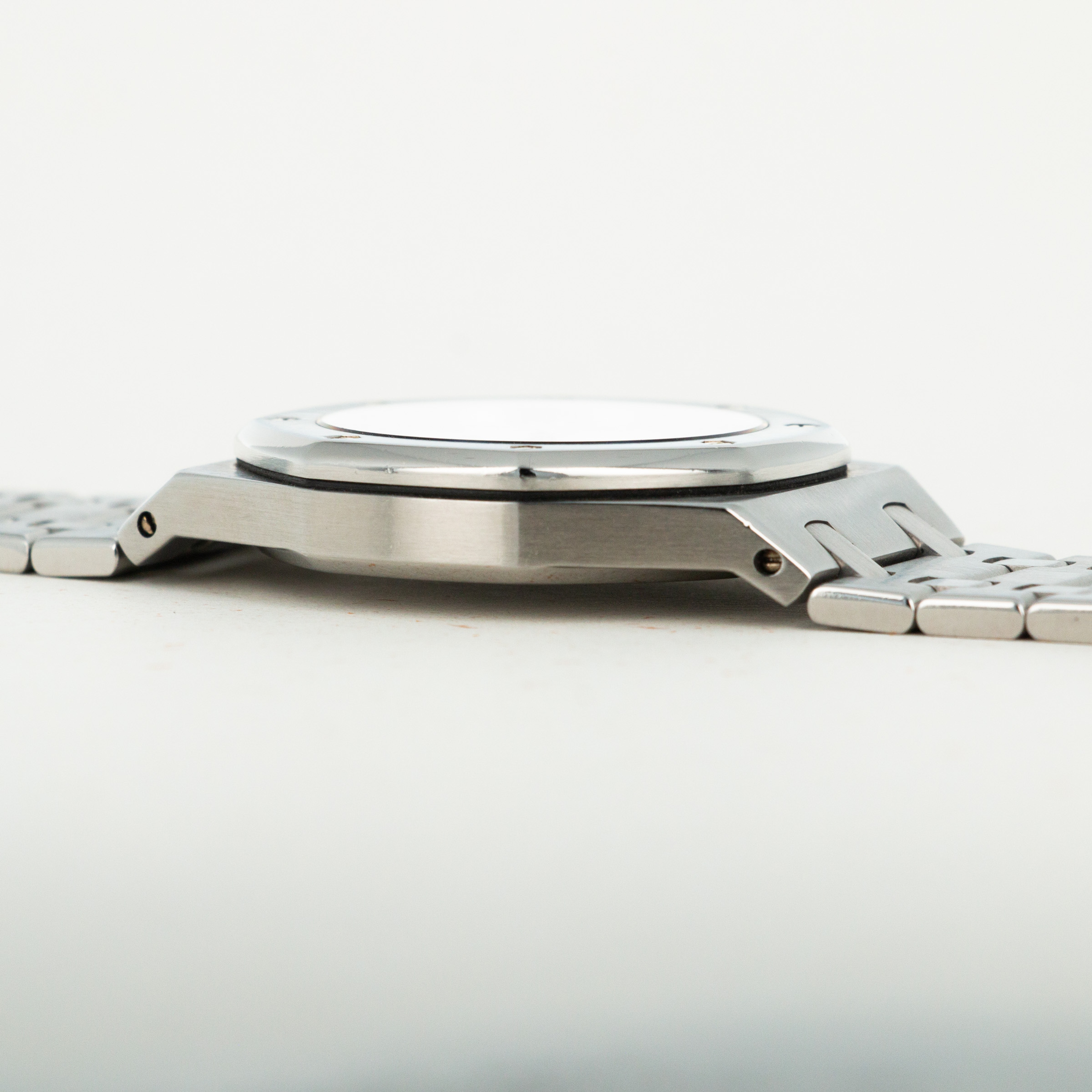 I have always been a huge enthusiast of the mid-sized Royal Oaks, as they are not only exceptionally well priced, but also elegantly proportioned. This example features the white dial, which undeniably gives it a modern twist. This particular variation has grown exponentially in my appreciation, as I feel it would also for both modern and vintage collectors alike. The overall condition of the watch implies that a great deal of care was taken in the handling of the piece, and was perhaps only occasionally worn by its previous owners.
