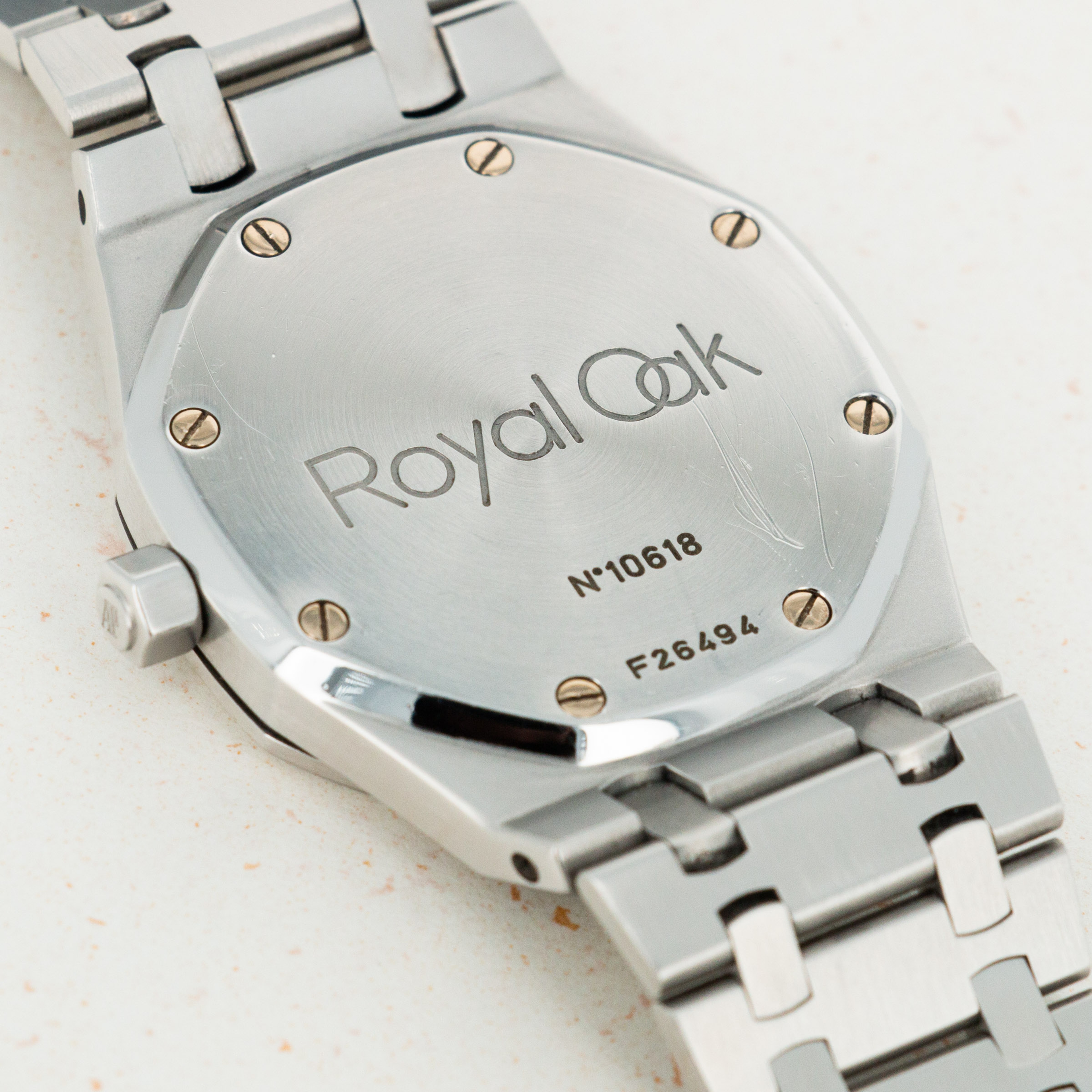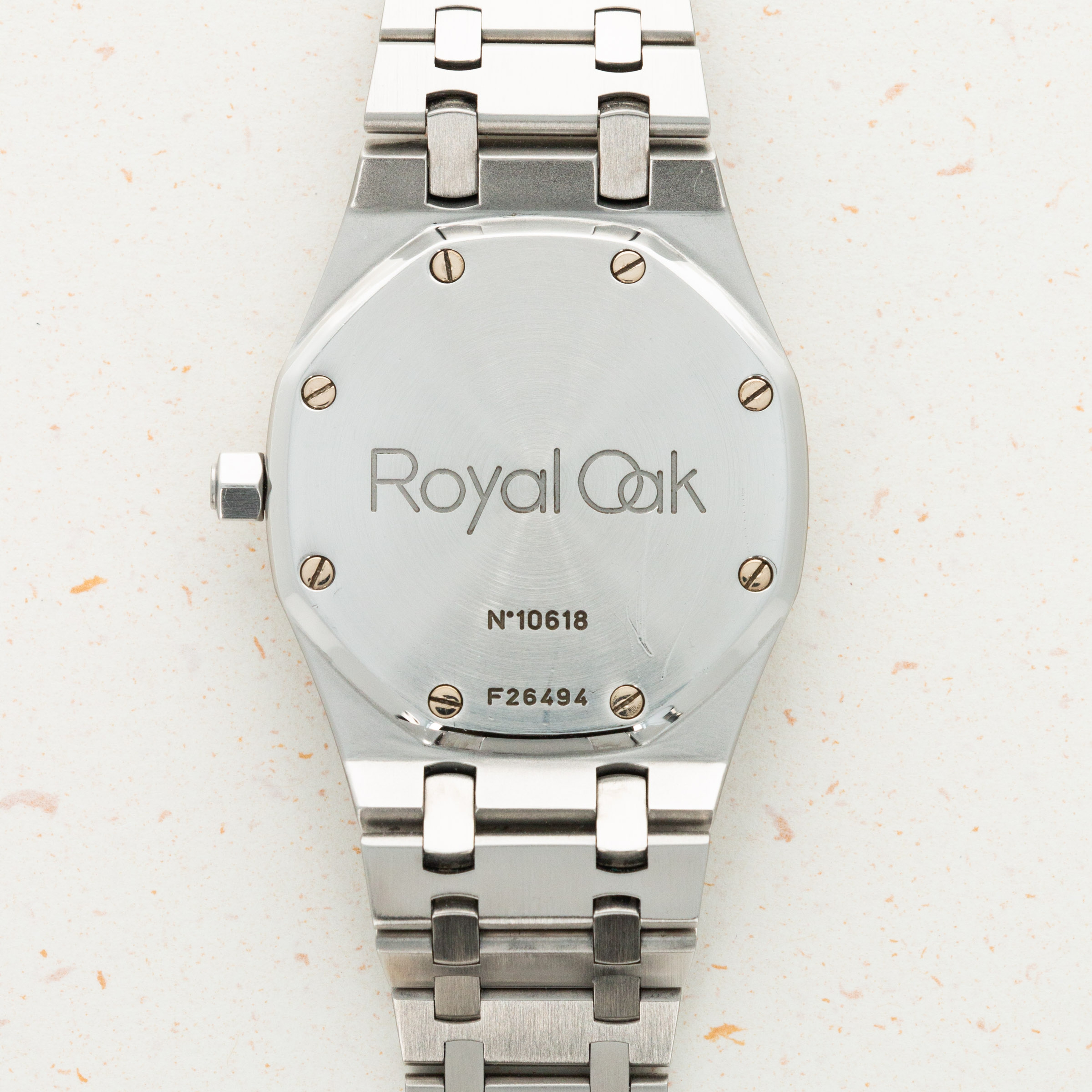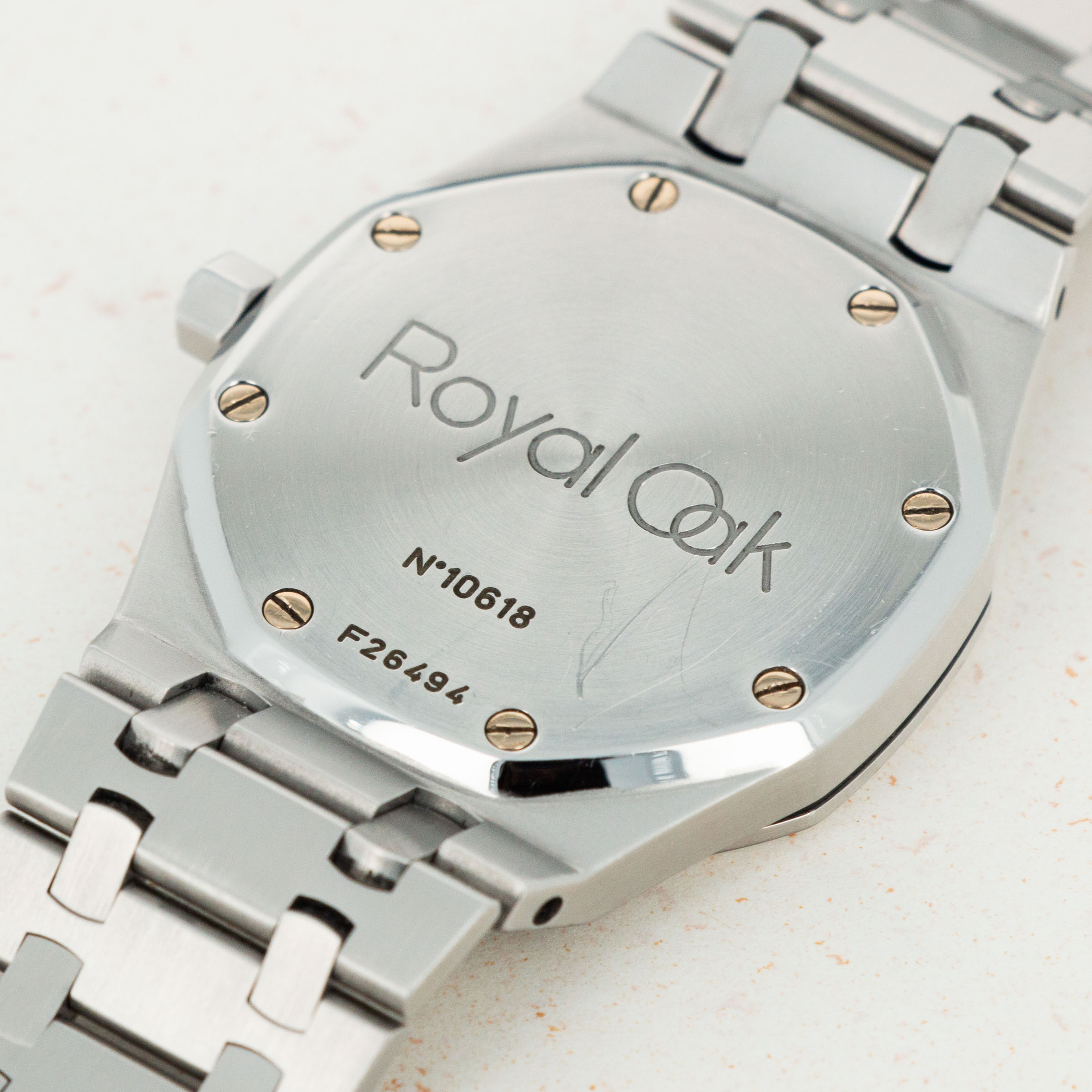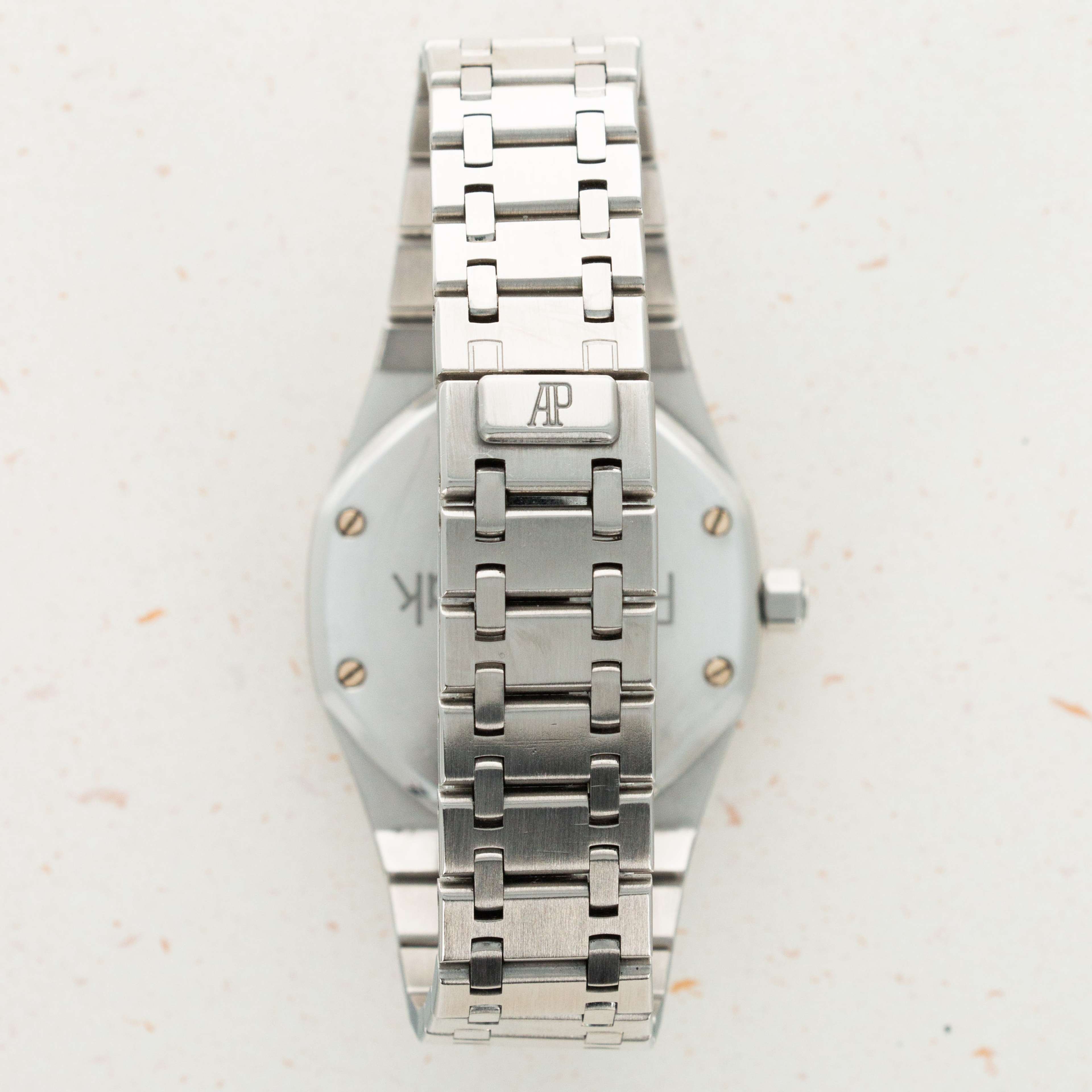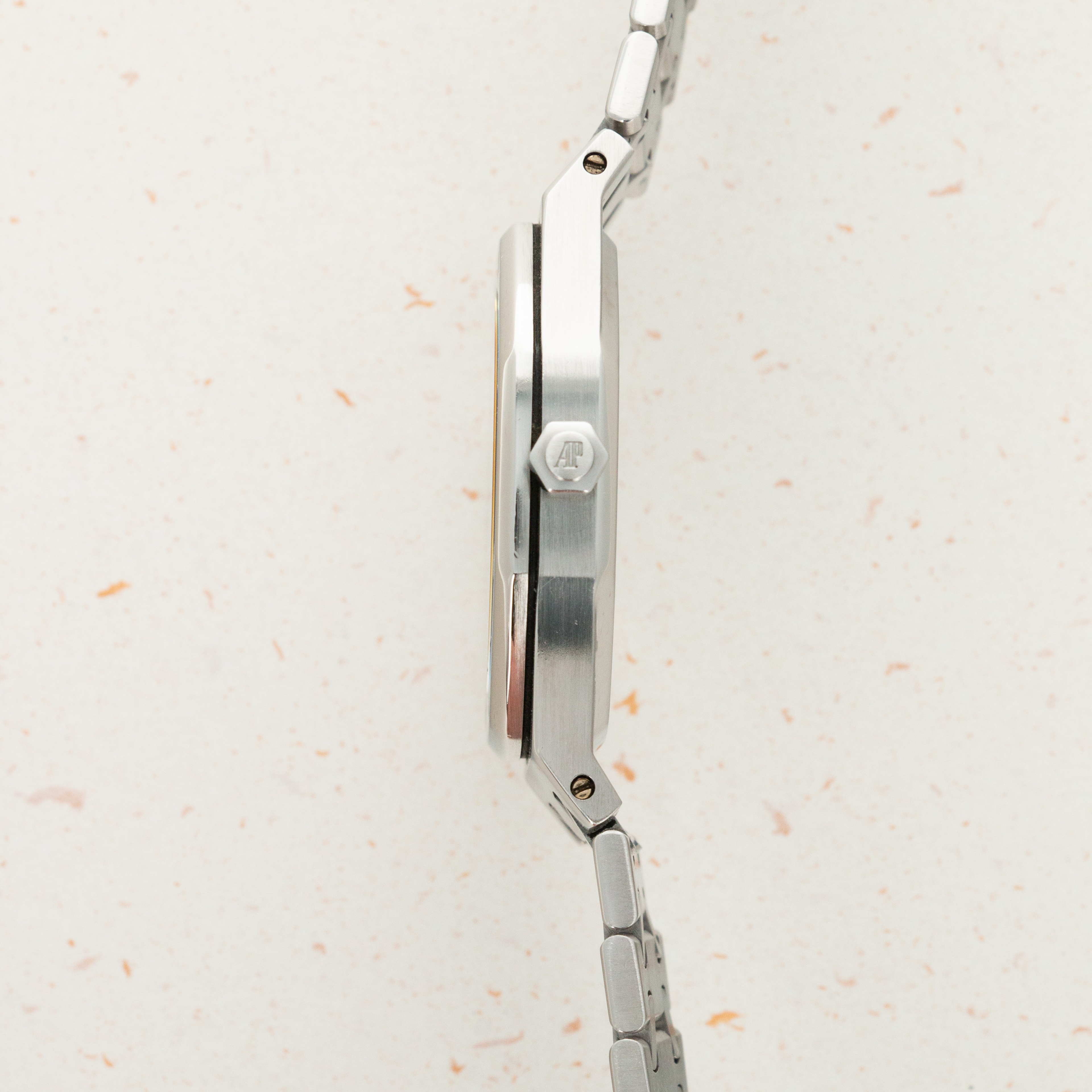 Belonging to the Third Series, this particular dial features a shorter hour marker, recessed Audemars Piguet signature, and an enlarged tapisserie.