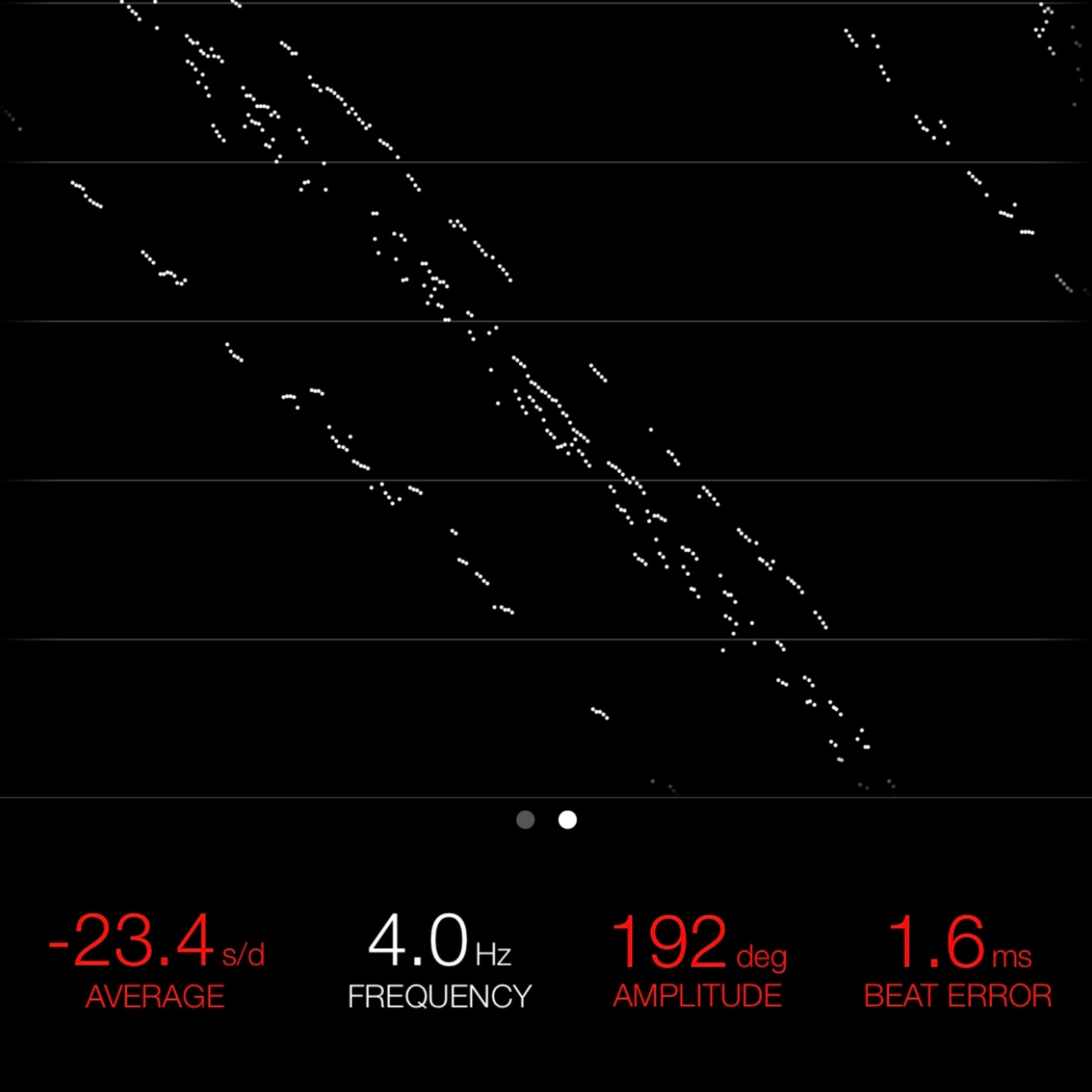 This reading was taken (crown down) with a ONEOF Accuracy Boutique Edition timing machine at time of cataloging. It is provided as a courtesy only, and shall not be construed as a warranty or guarantee of any kind. Please refer to our terms and conditions of sale for more information.