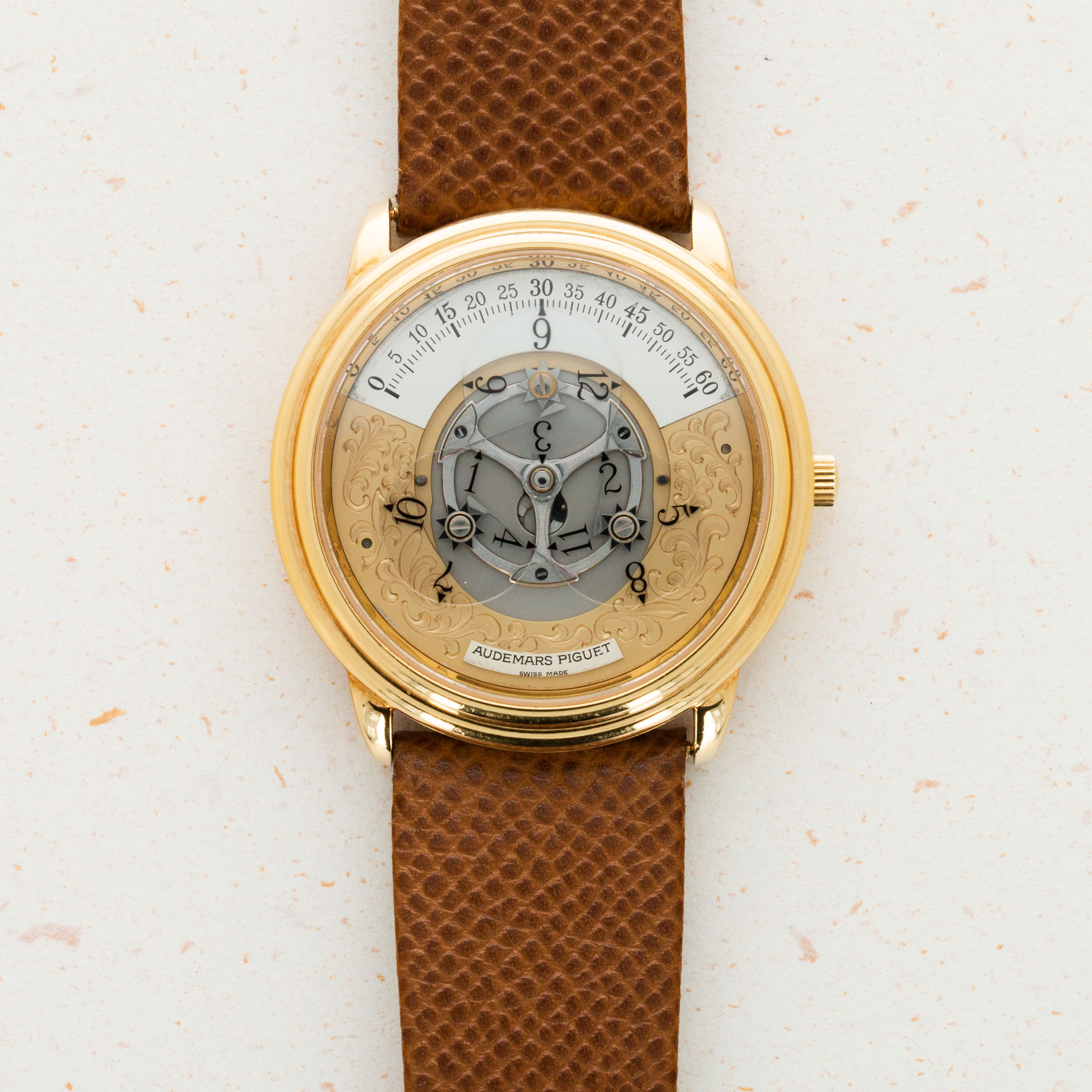 In 1991, Audemars Piguet released the "Star Wheel", a watch that displays time via three sapphire disks. The minutes are displayed on a separate linear track in the upper portion of the dial. Produced solely in precious metals and in extremely limited quantities, the Star Wheel has served as inspiration to the likes of Urwerk, amongst other independent watchmakers.