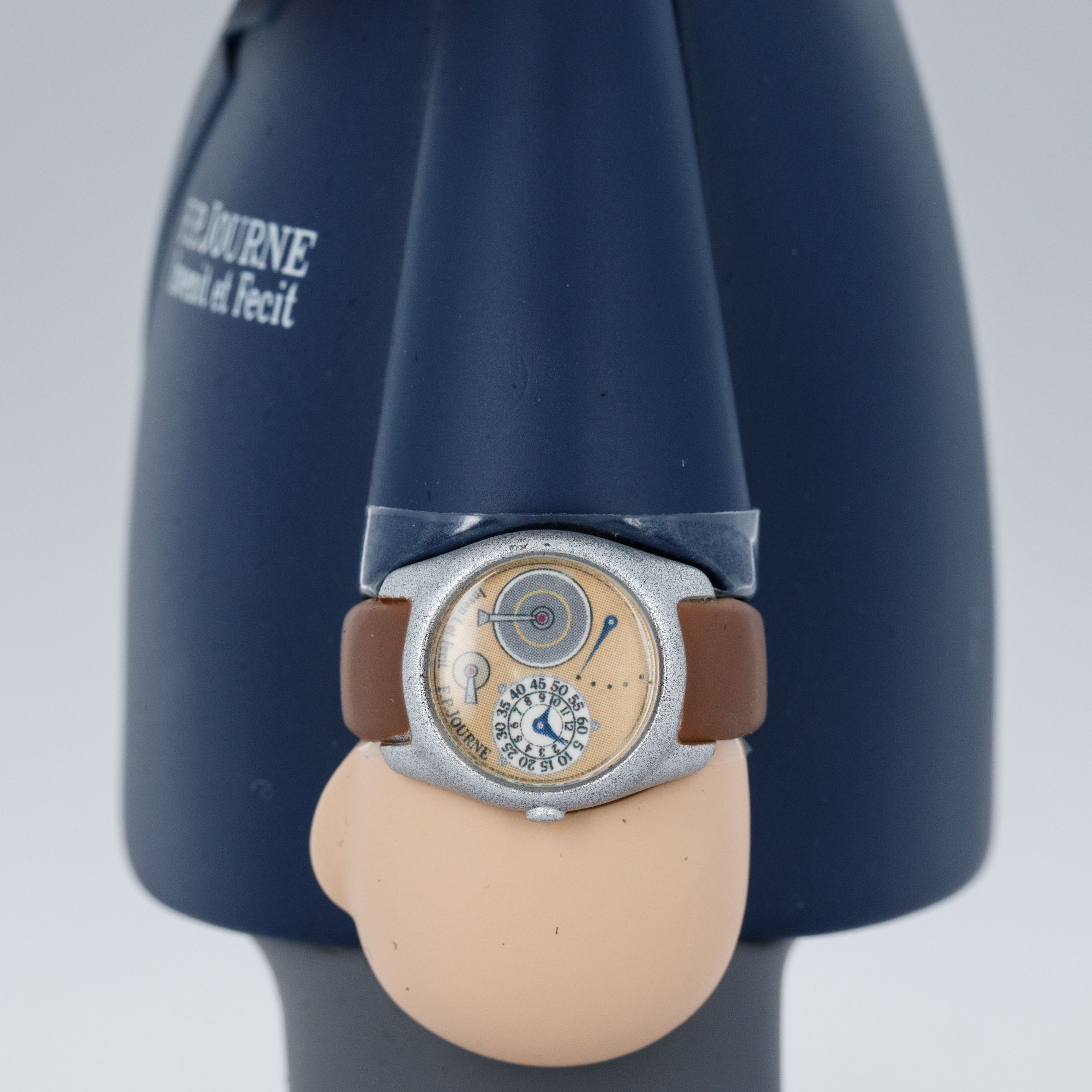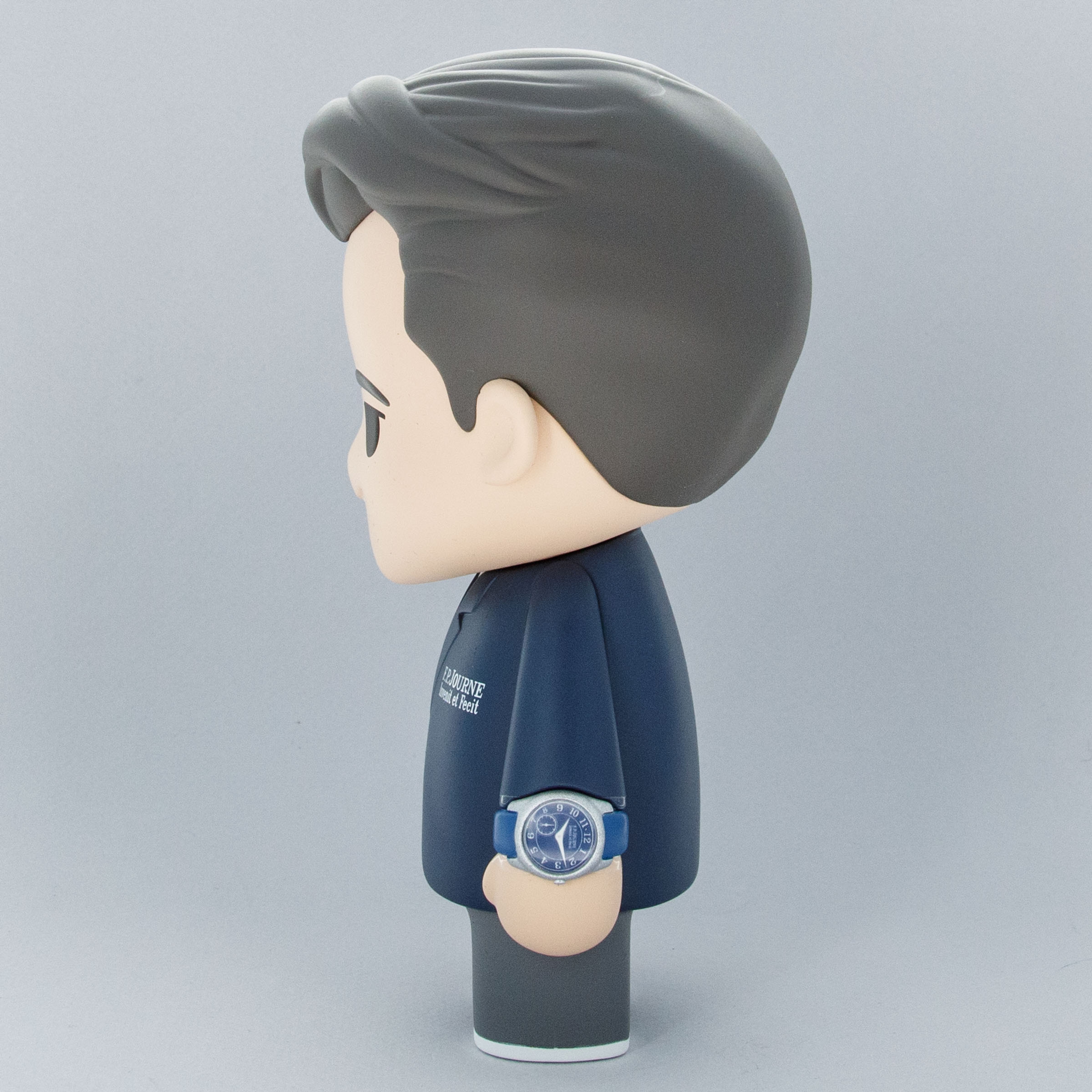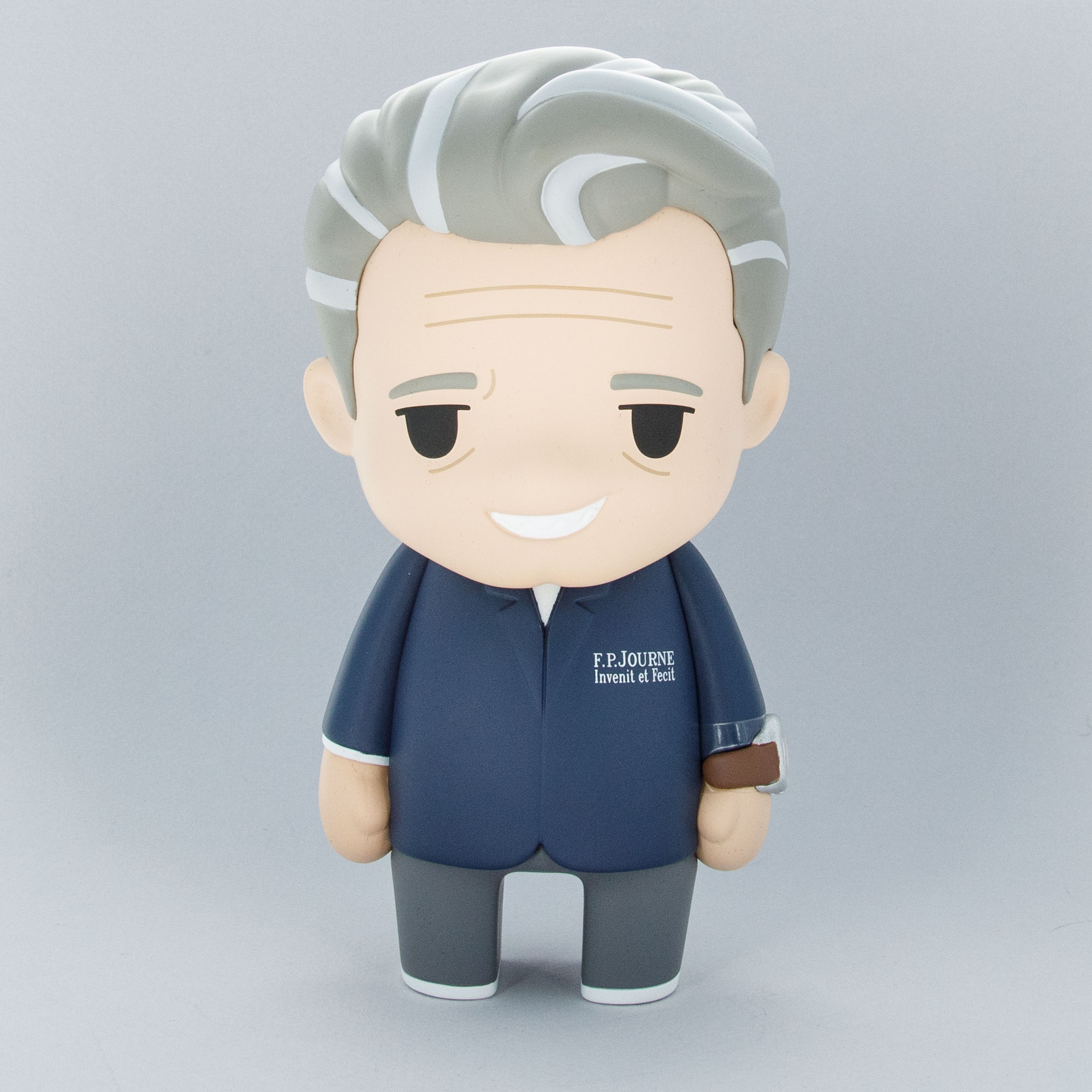 Depicting Francois Paul Journe's journey to create one of watchmaking's most revered independent brands, the figurines set comes with two depictions of watchmaker, one from his youth and one showing him today - both dressed in a navy watchmaker's coat.