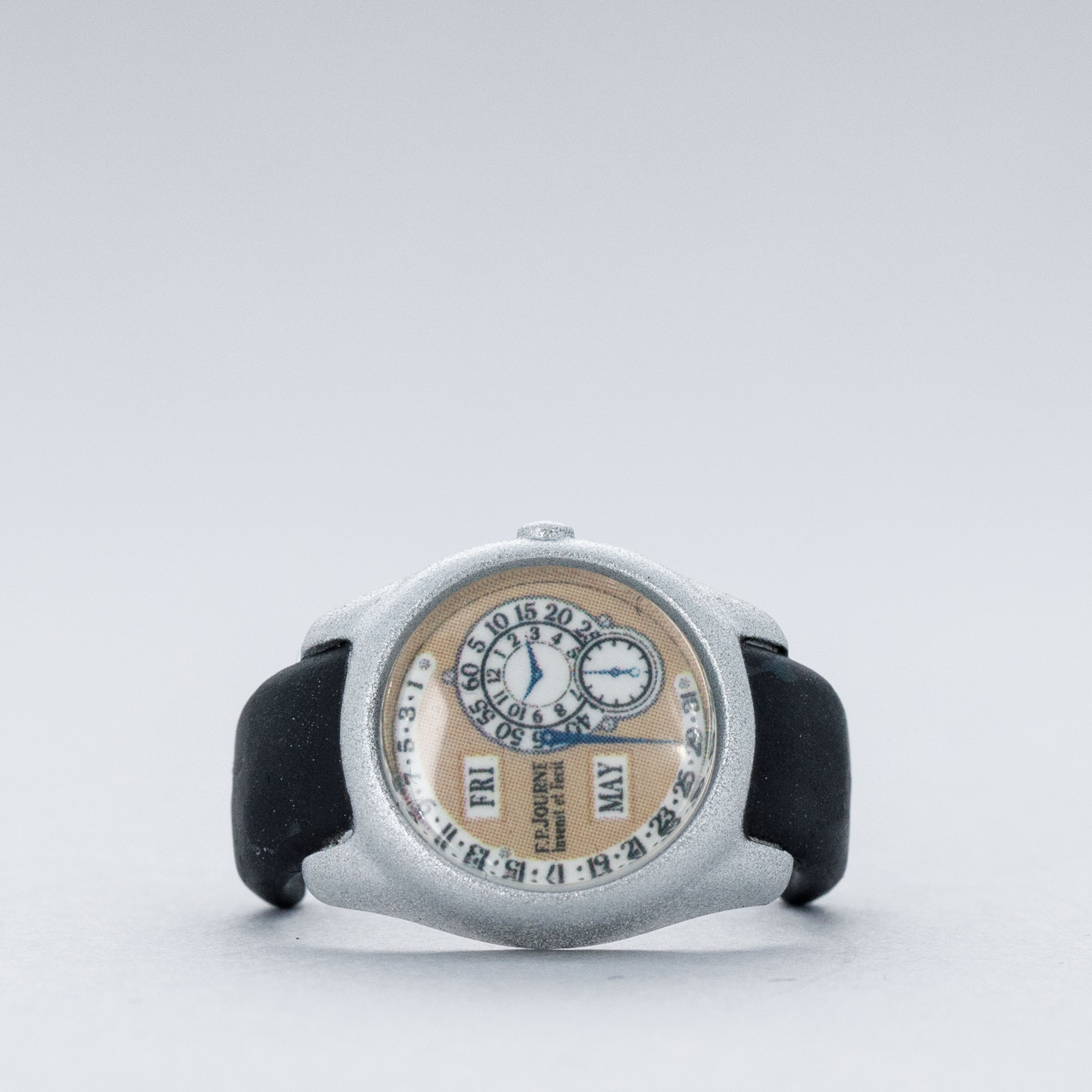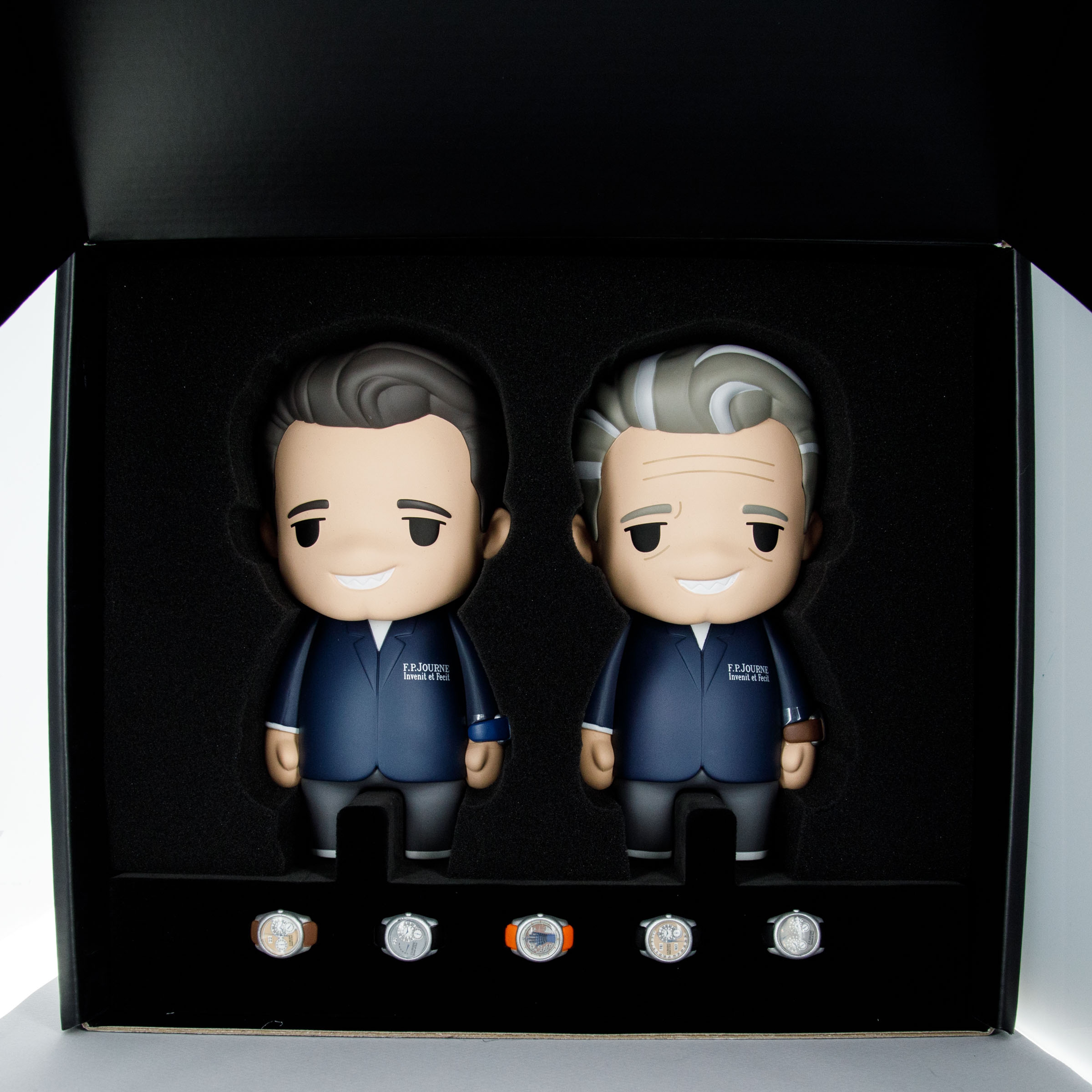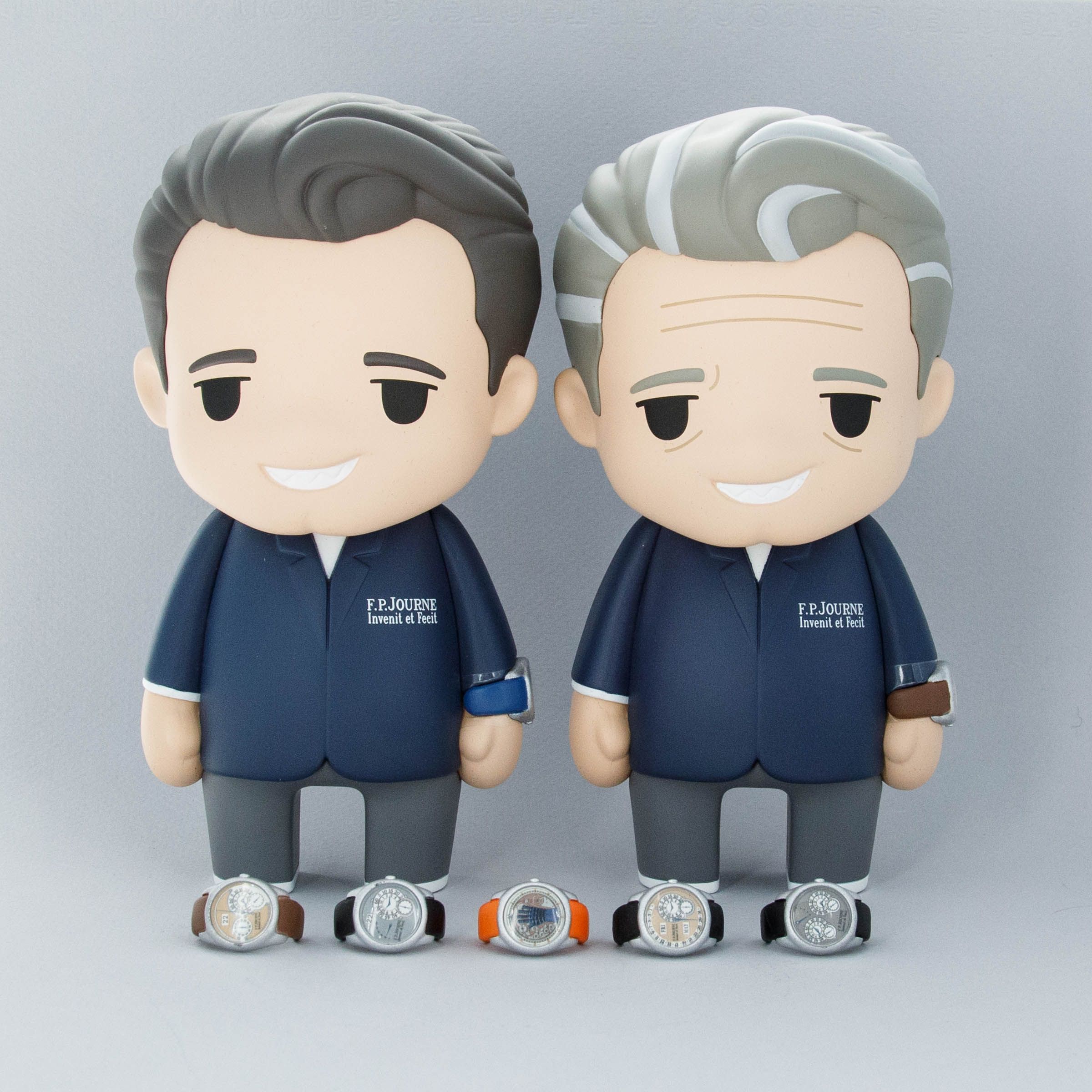 Both compatible with each of the seven watches included in the figurine set, each figurine can be styled with one of F.P. Journe's most famous watches.
